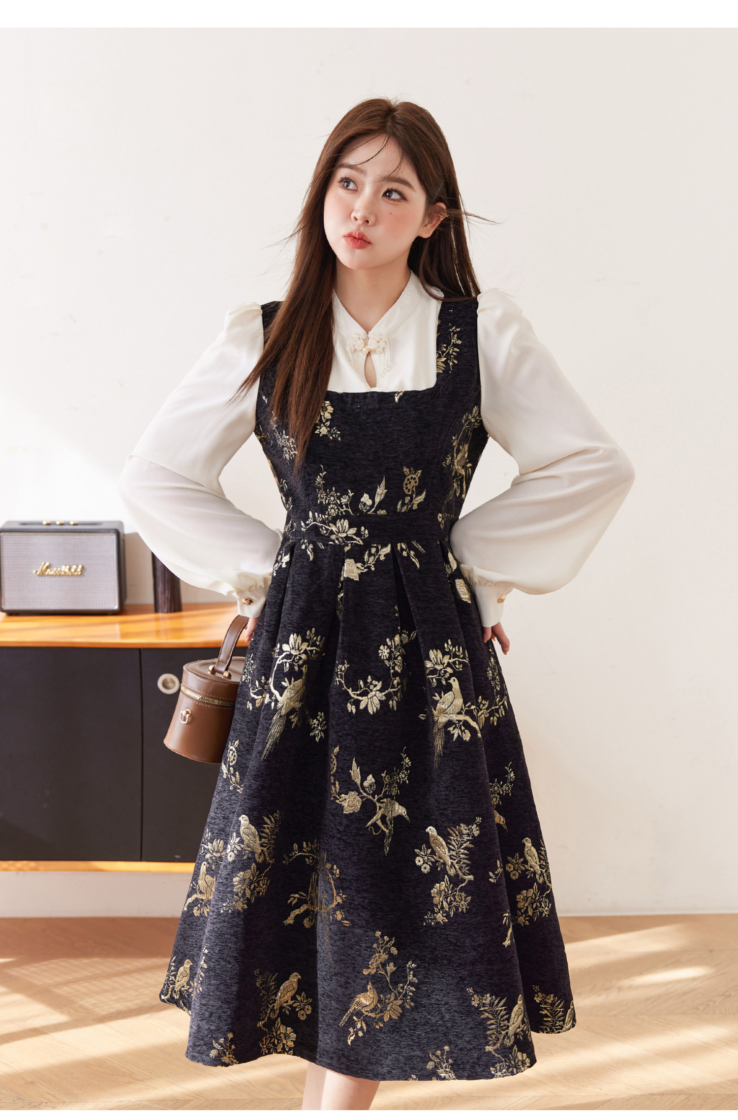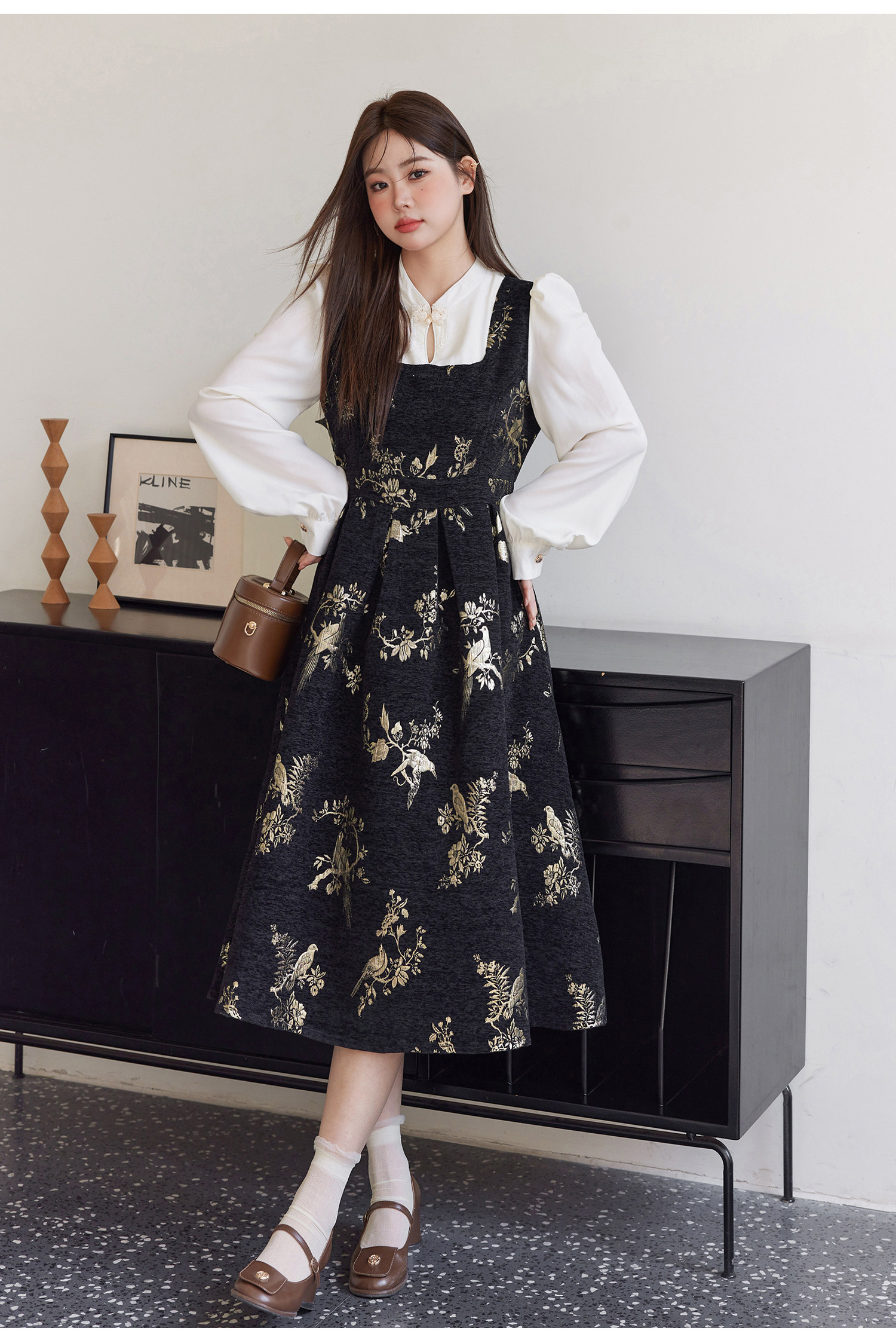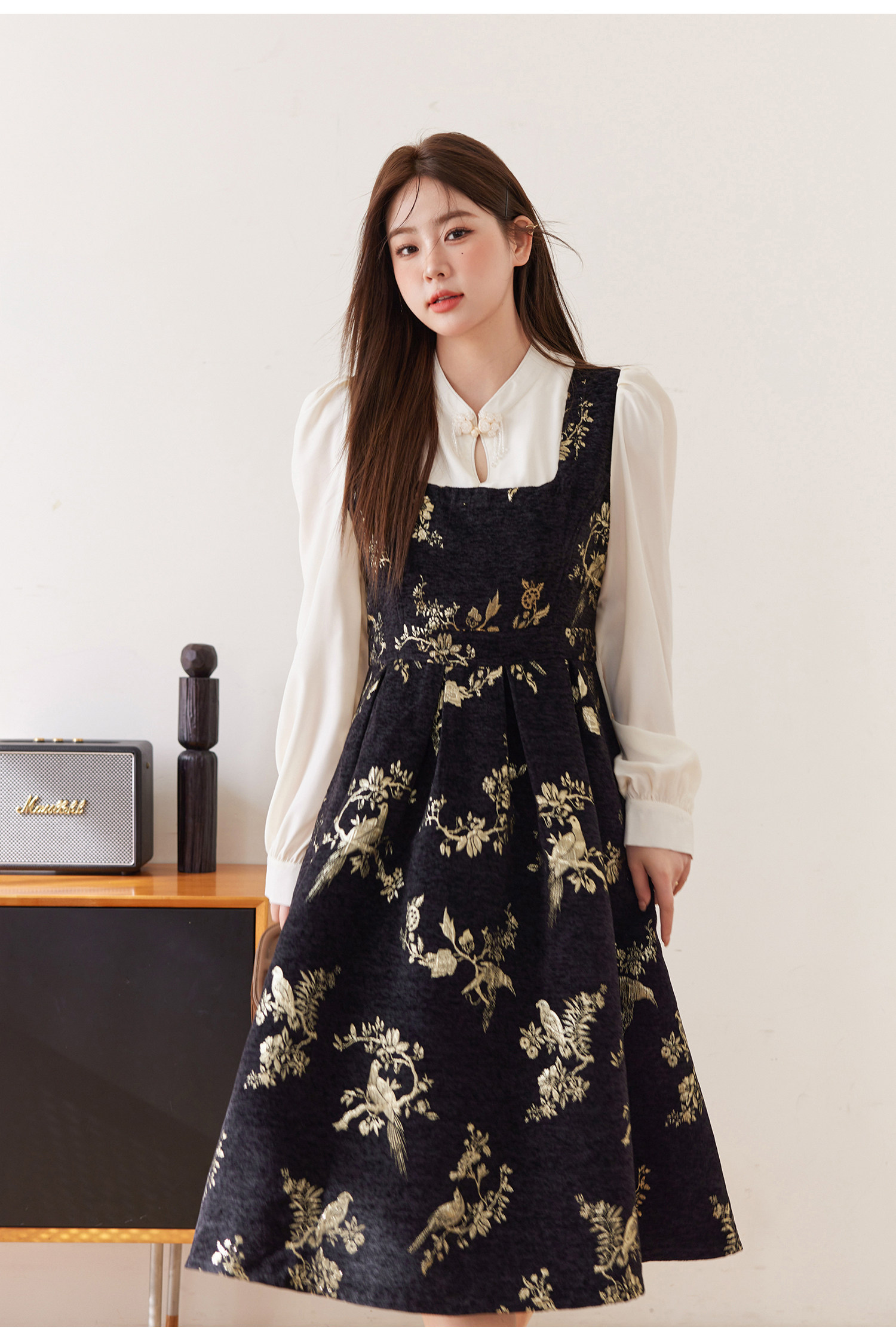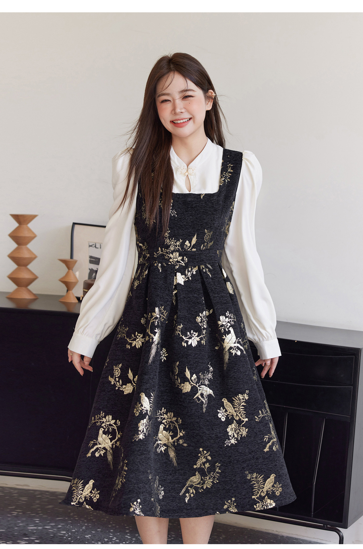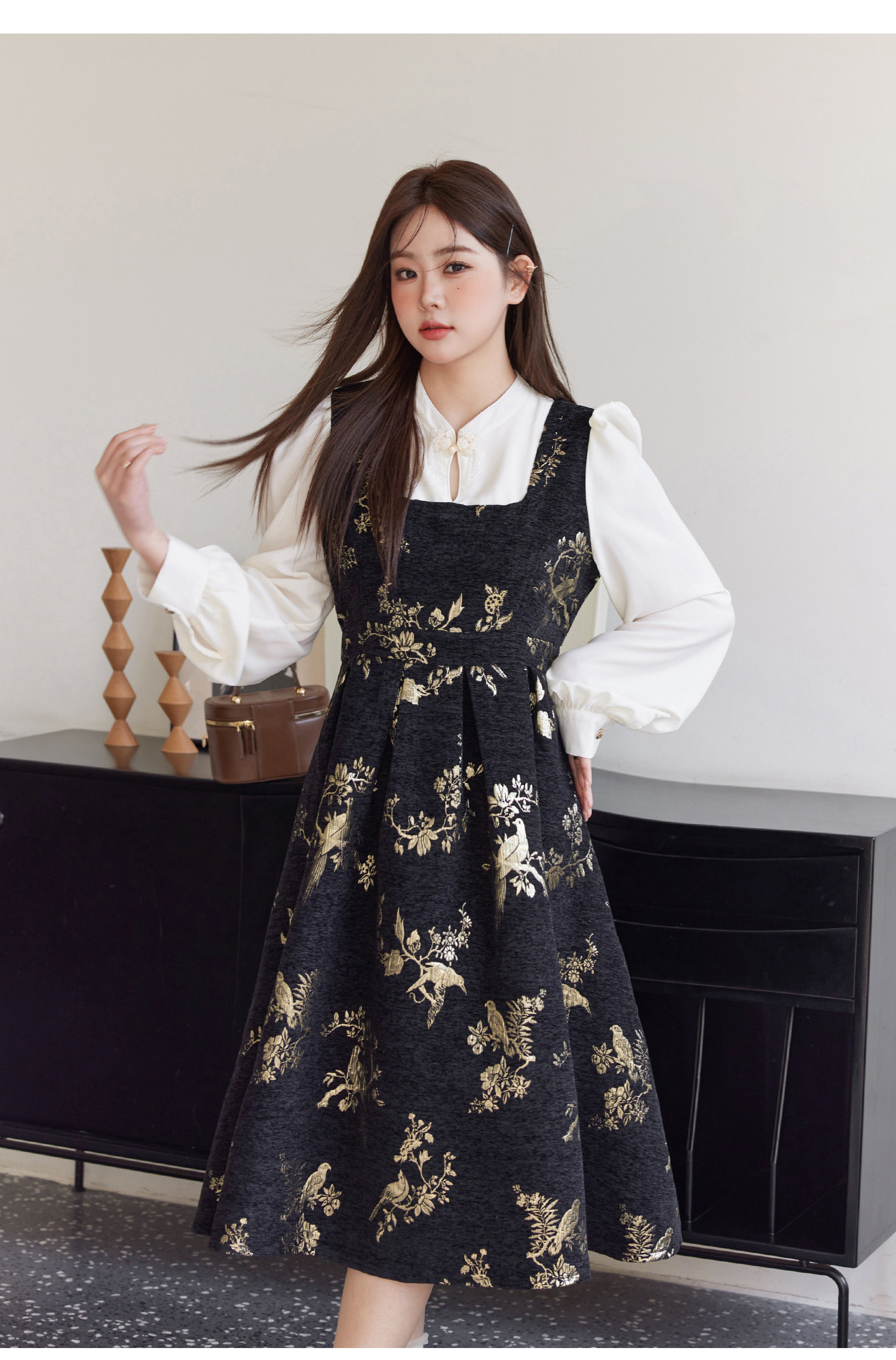 ASAYA5416 – Midnight Gold Tapestry Dress ✨🖤