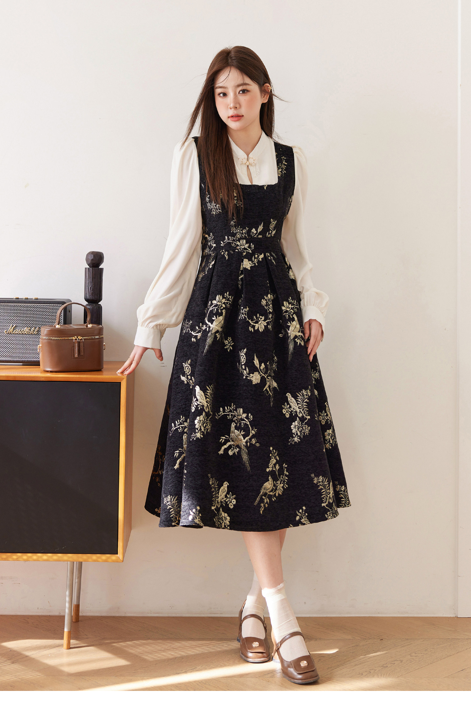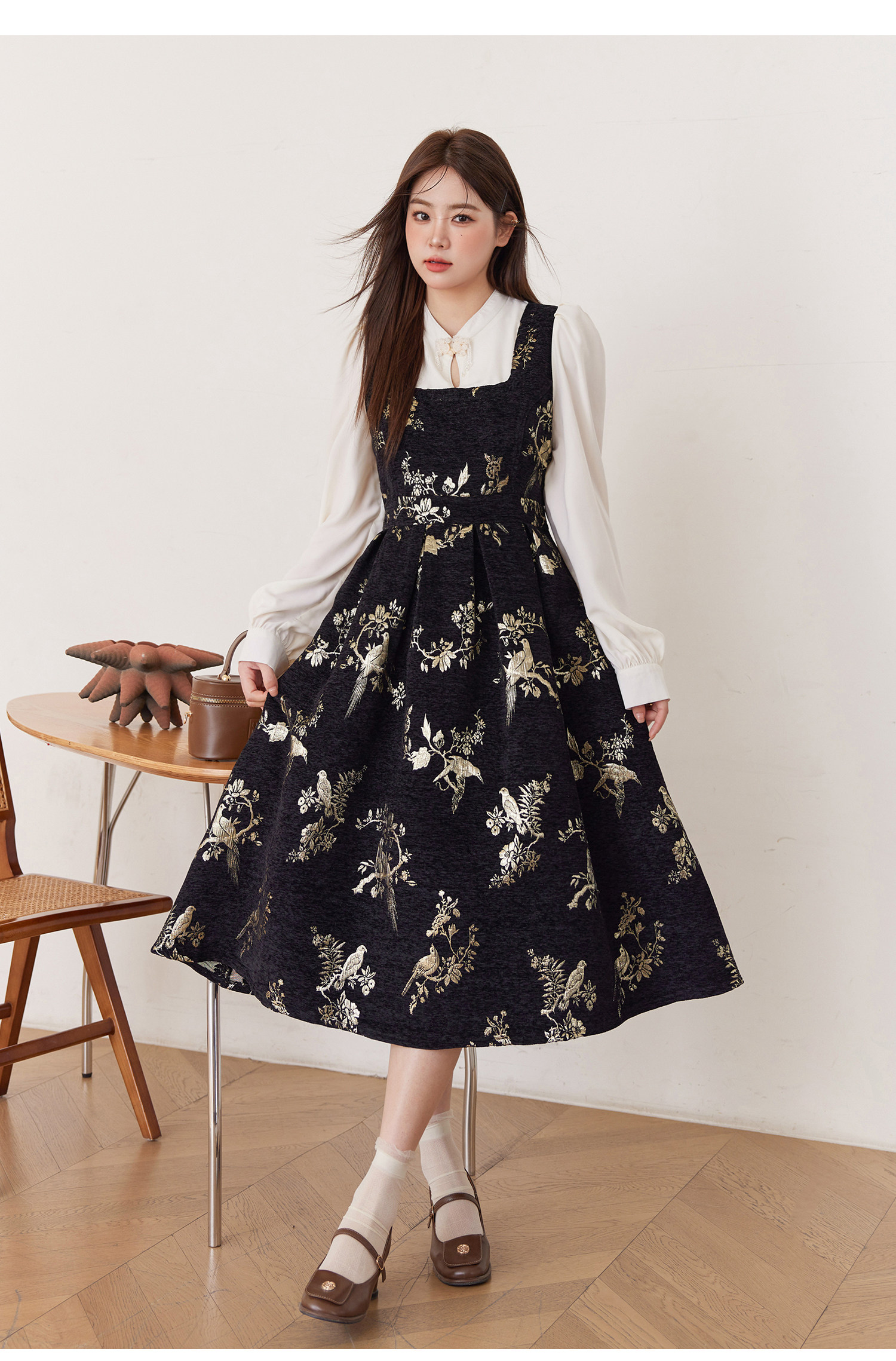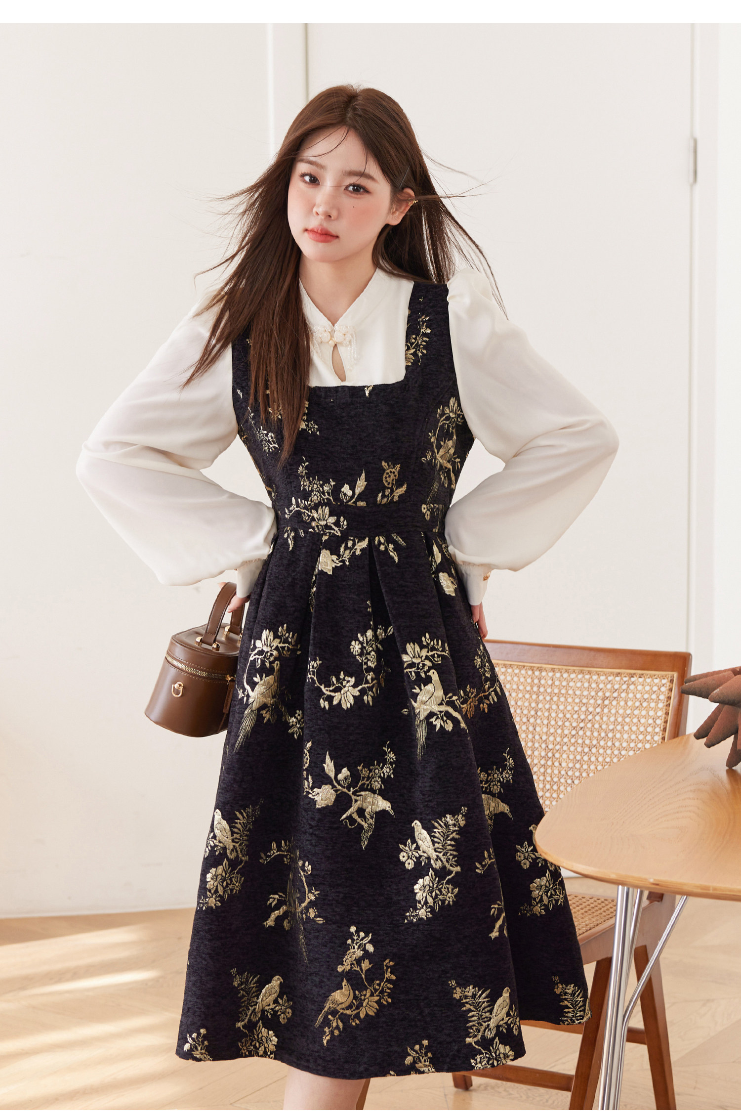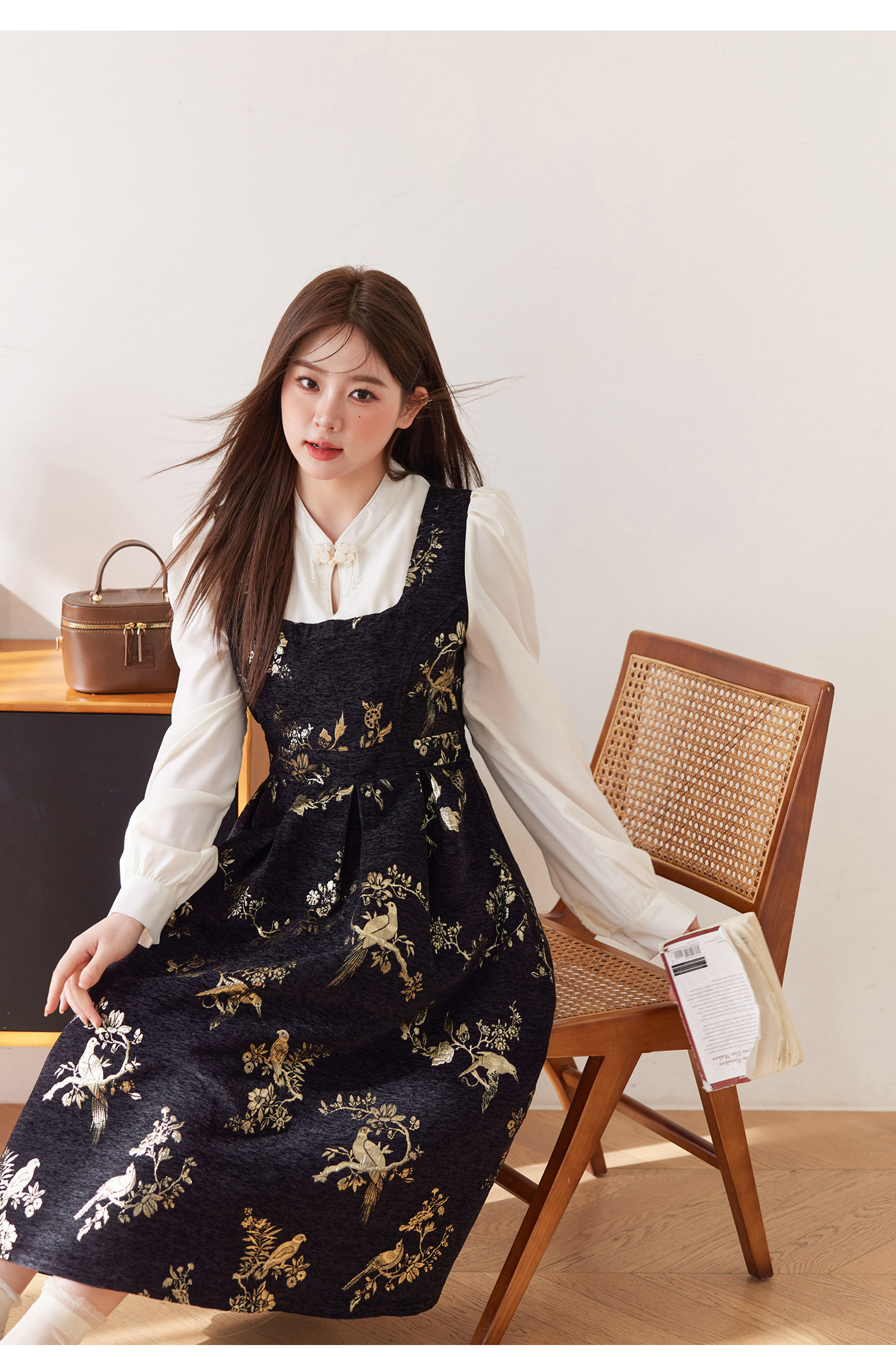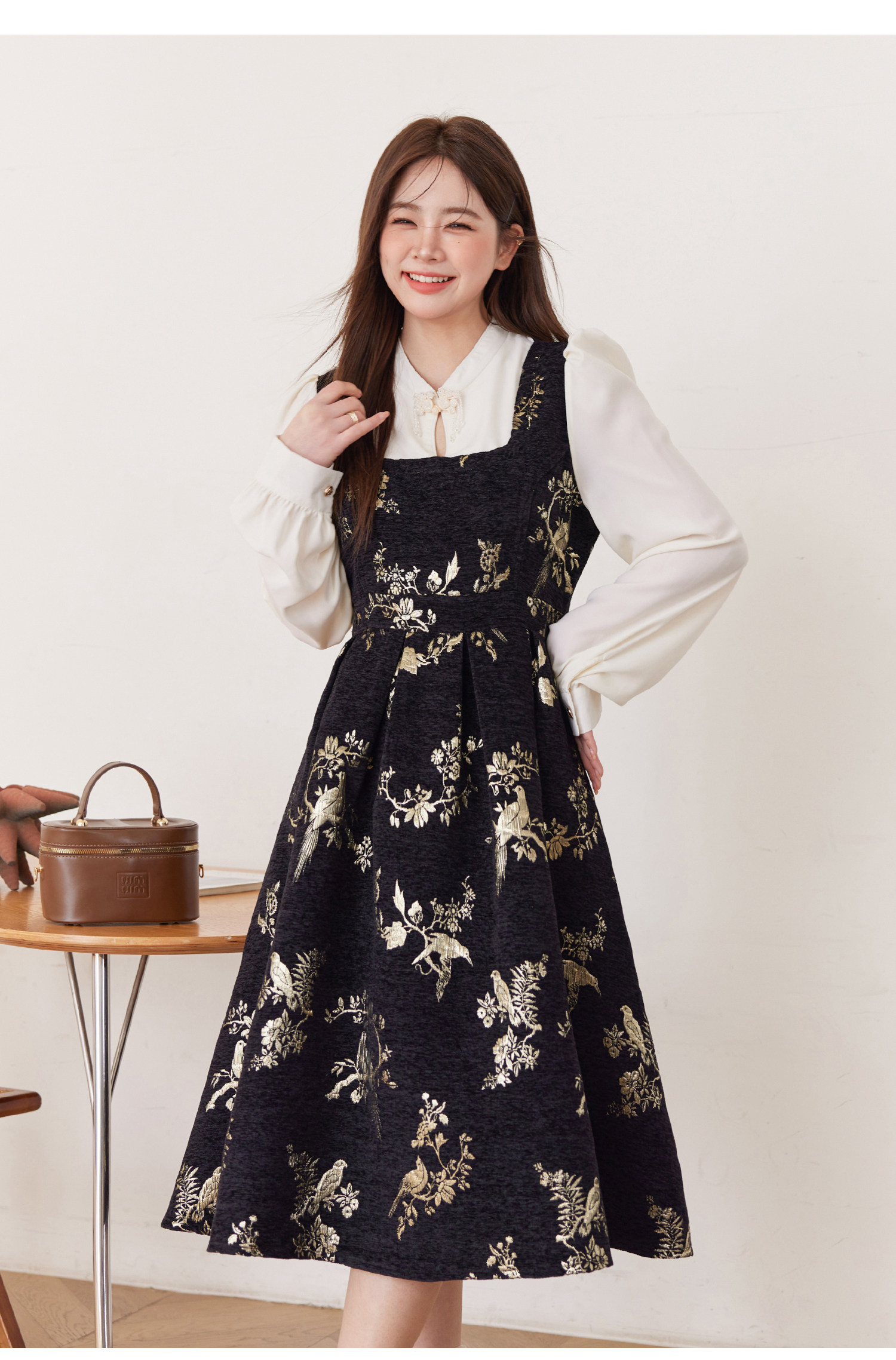 ASAYA5416 – Midnight Gold Tapestry Dress ✨🖤