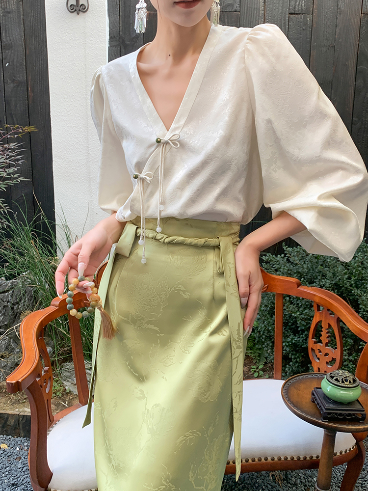 ASAYA3452 Light Green Chinese Style High Waist Skirt