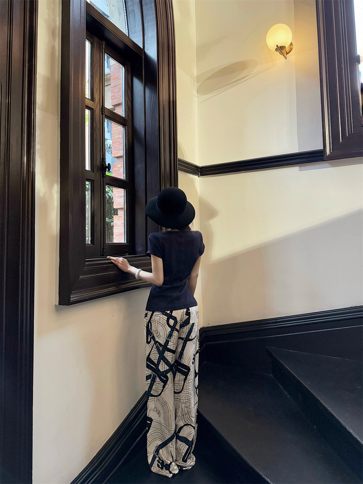 经典中腰西裤裁剪 直筒型较宽裤腿 穿上很有松弛感