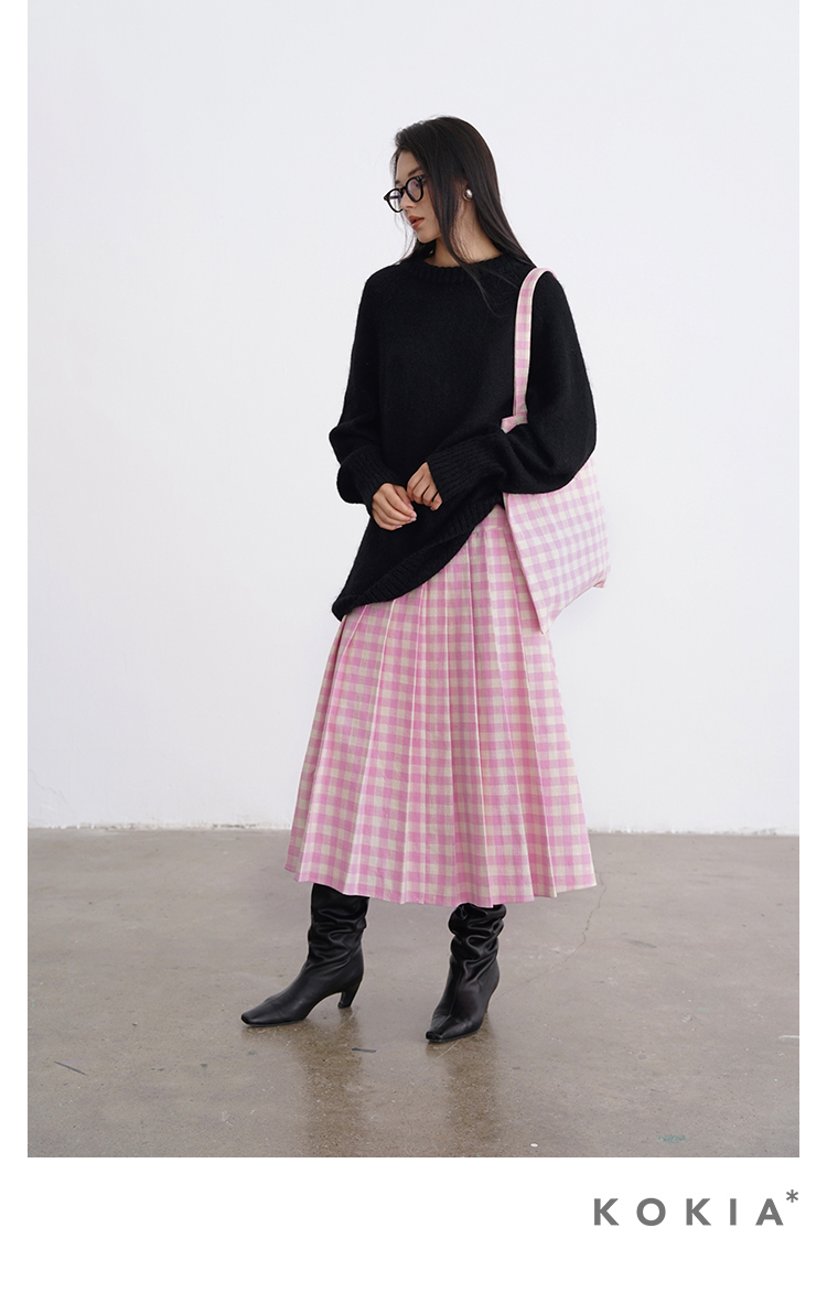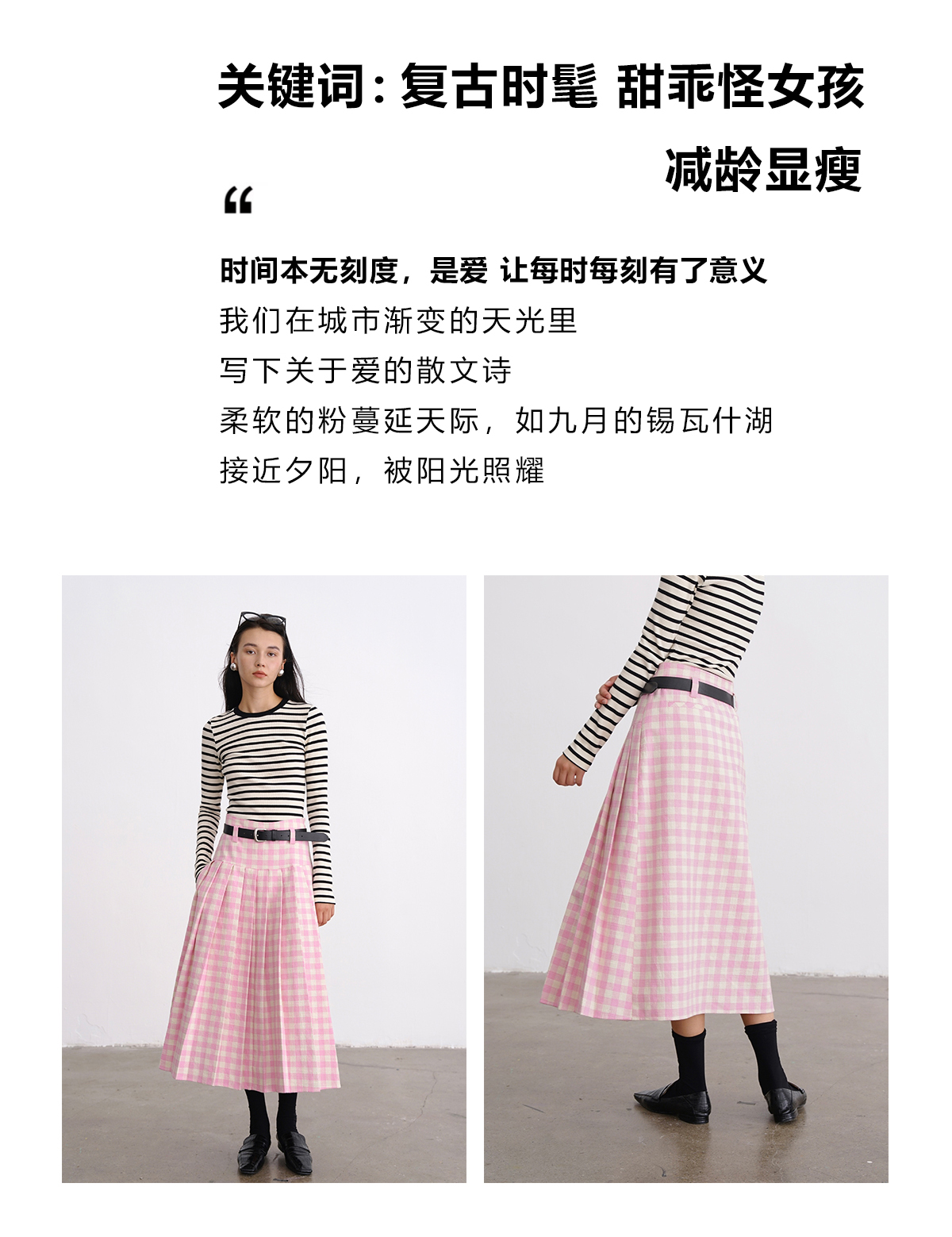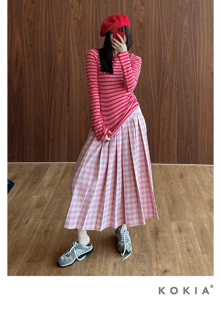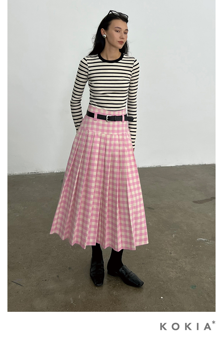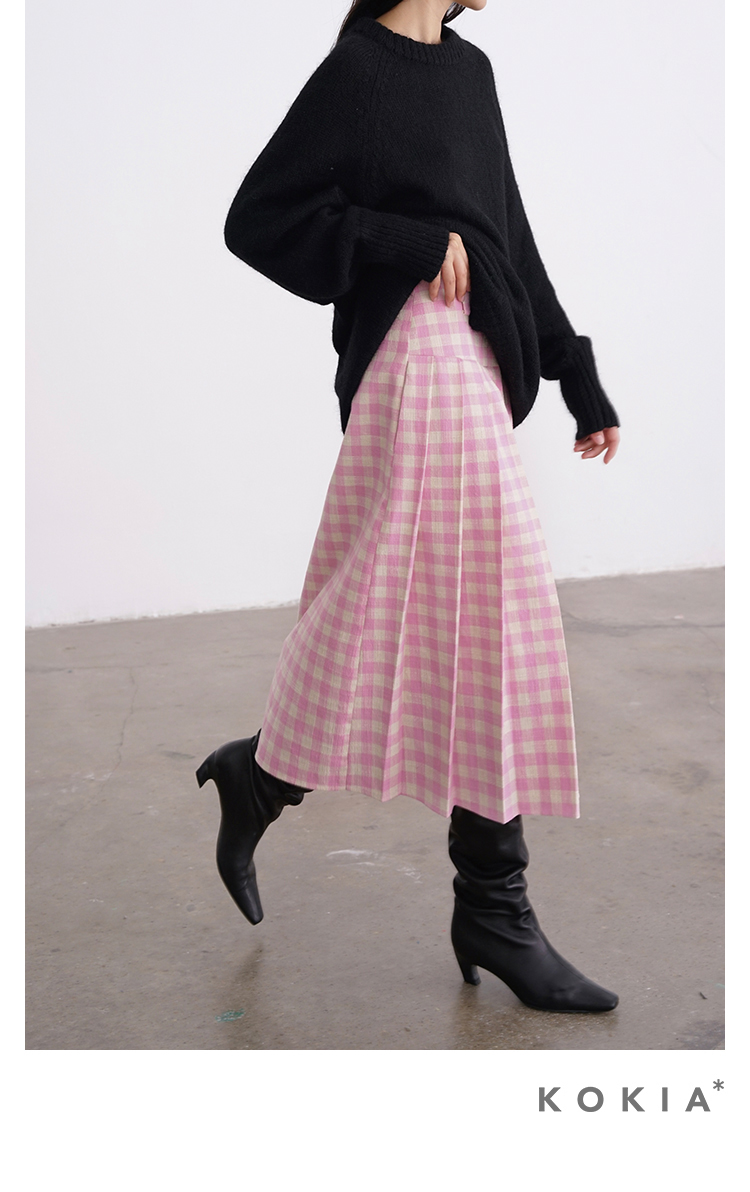 ASAYA3202 Spring and autumn pink with crotch pleated wide hem A-line long umbrella skirt