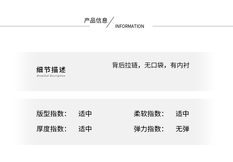 | Style Details | Zipper style, side split |