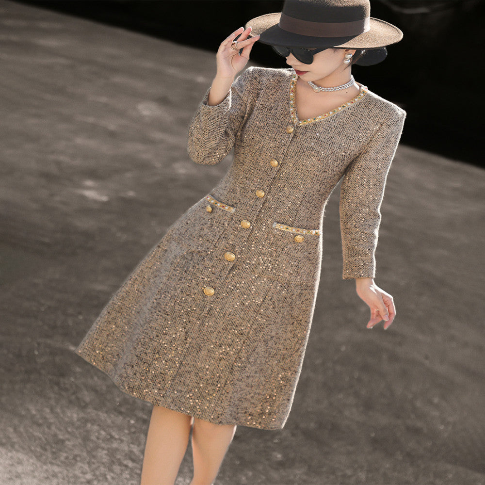 ASAYA3890 Elegant Beaded Tweed Dress