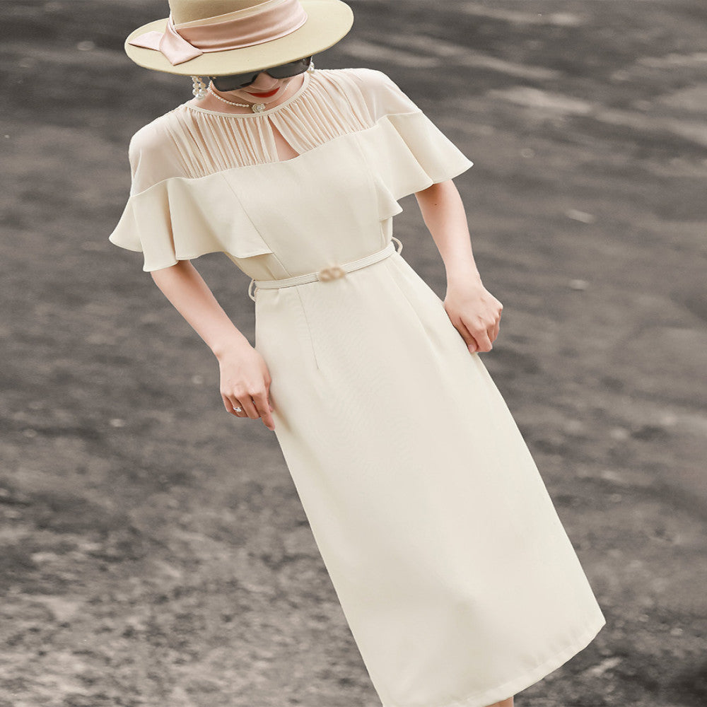 ASAYA3434 Summer new temperament high-end lotus leaf sleeve splicing lace-up slimming hip-wrapped dress for women