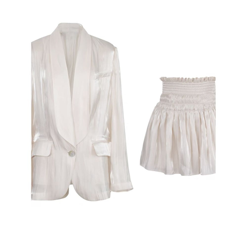 Asaya575 - Light luxury autumn new style flowing light and colorful water and light sensation goddess three piece set green fruit collar suit high waist wide leg pants skirt pants