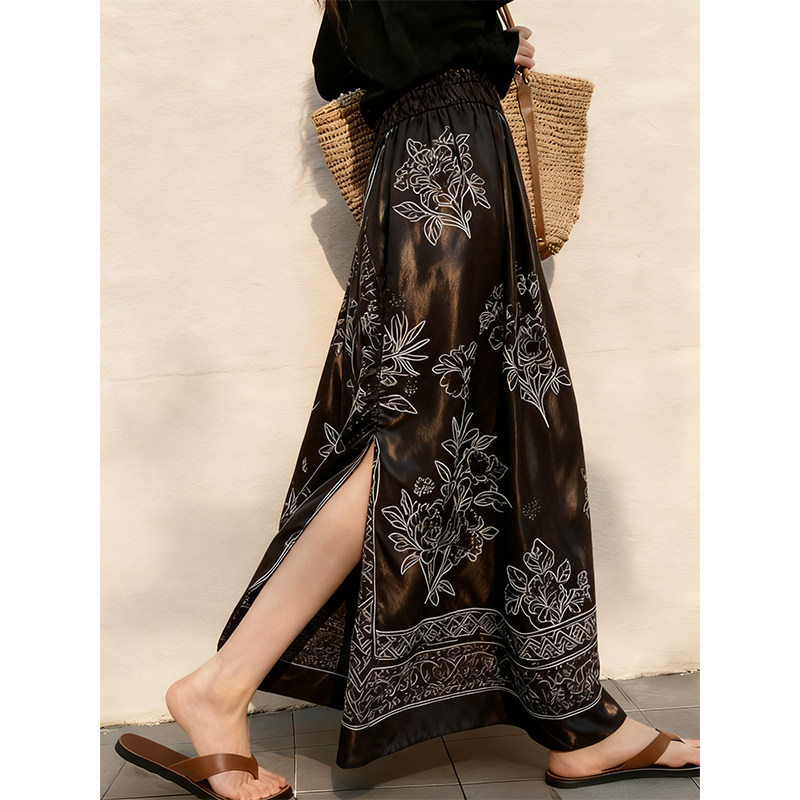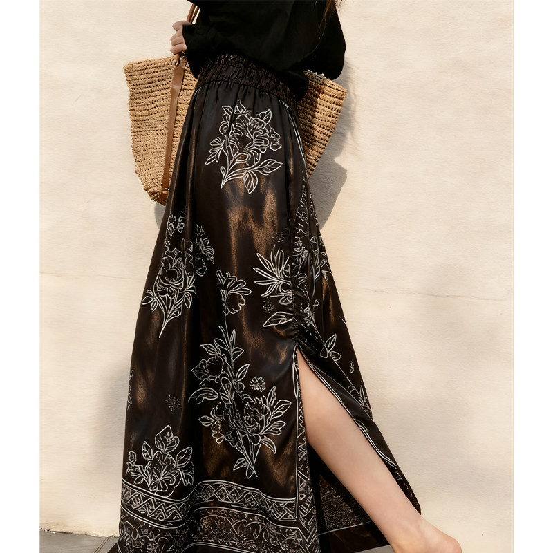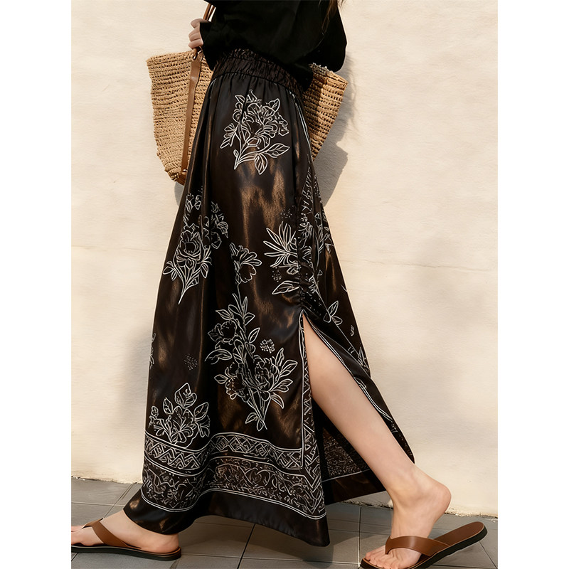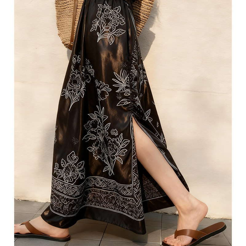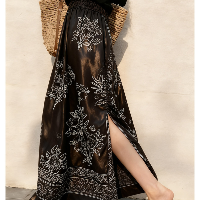 ASAYA5492 – Noir Botanica Satin Skirt 🌿🖤