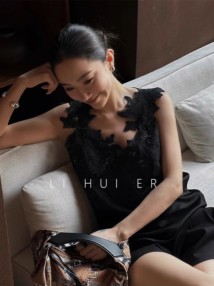 ASAYA5062 – Lace Bloom Silk Top 🌸🖤