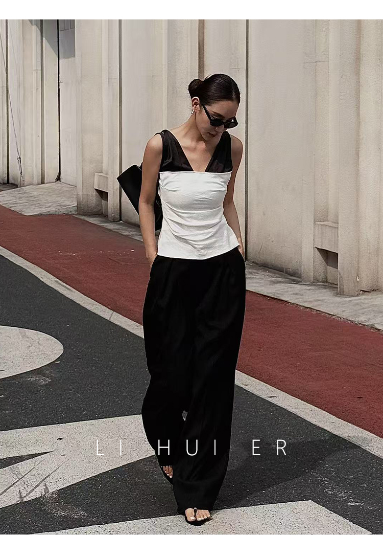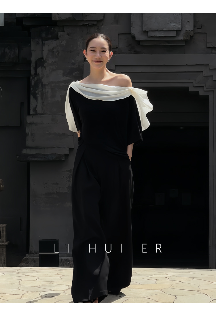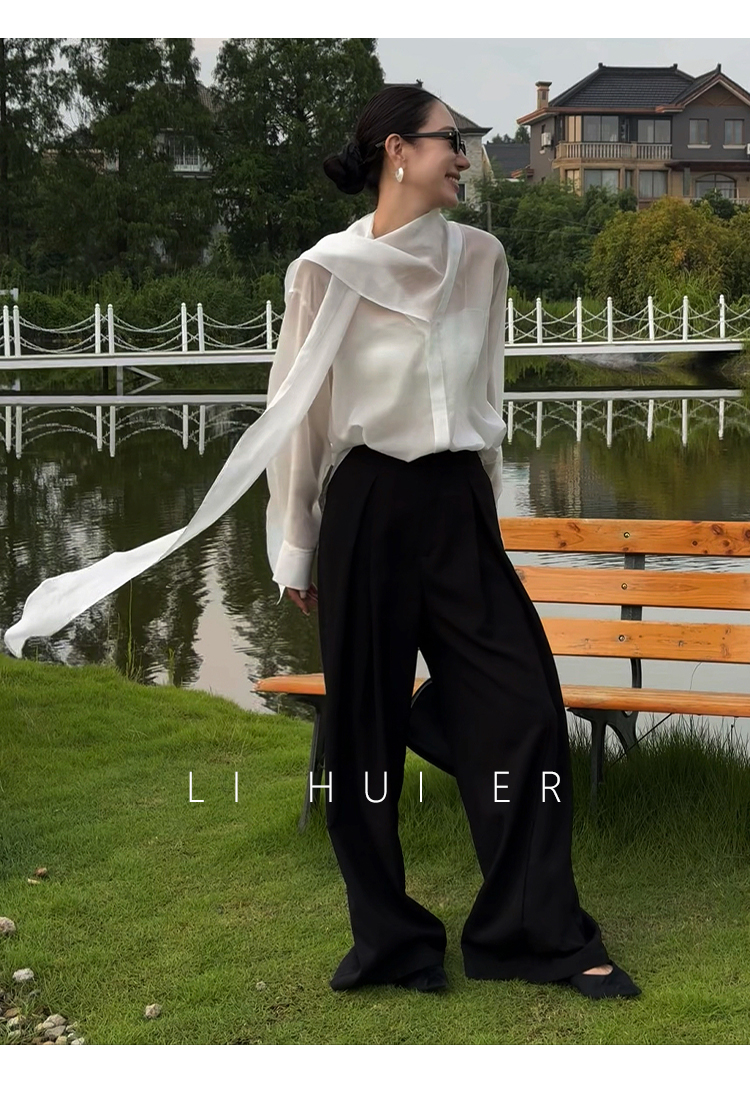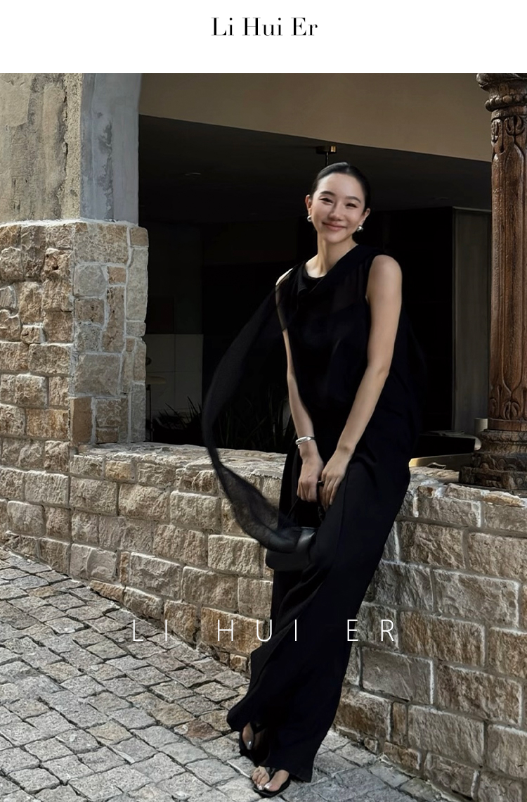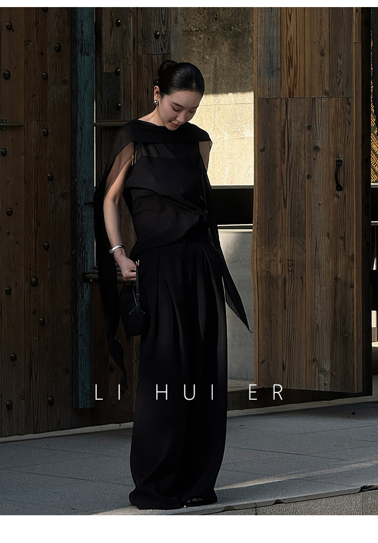 ASAYA5060 – Noir Draped Chiffon Pants⚫🌙