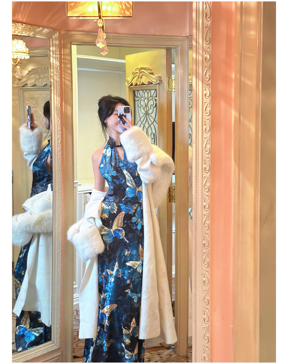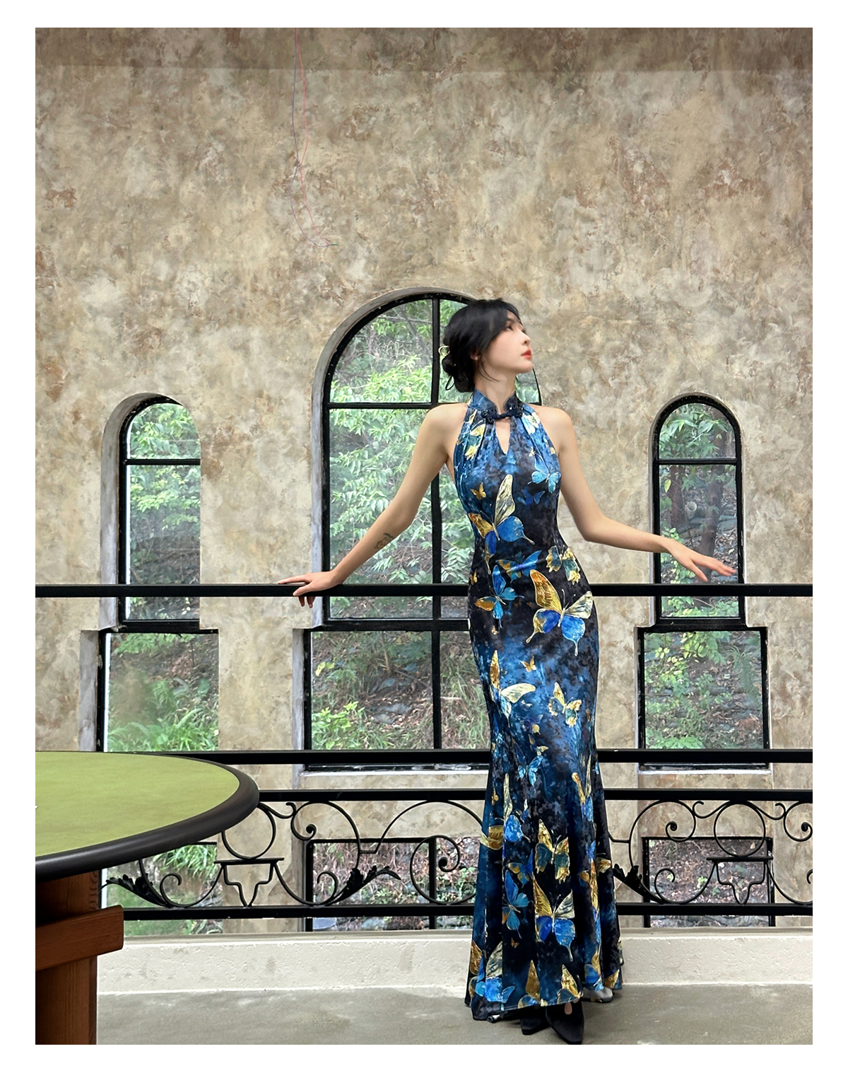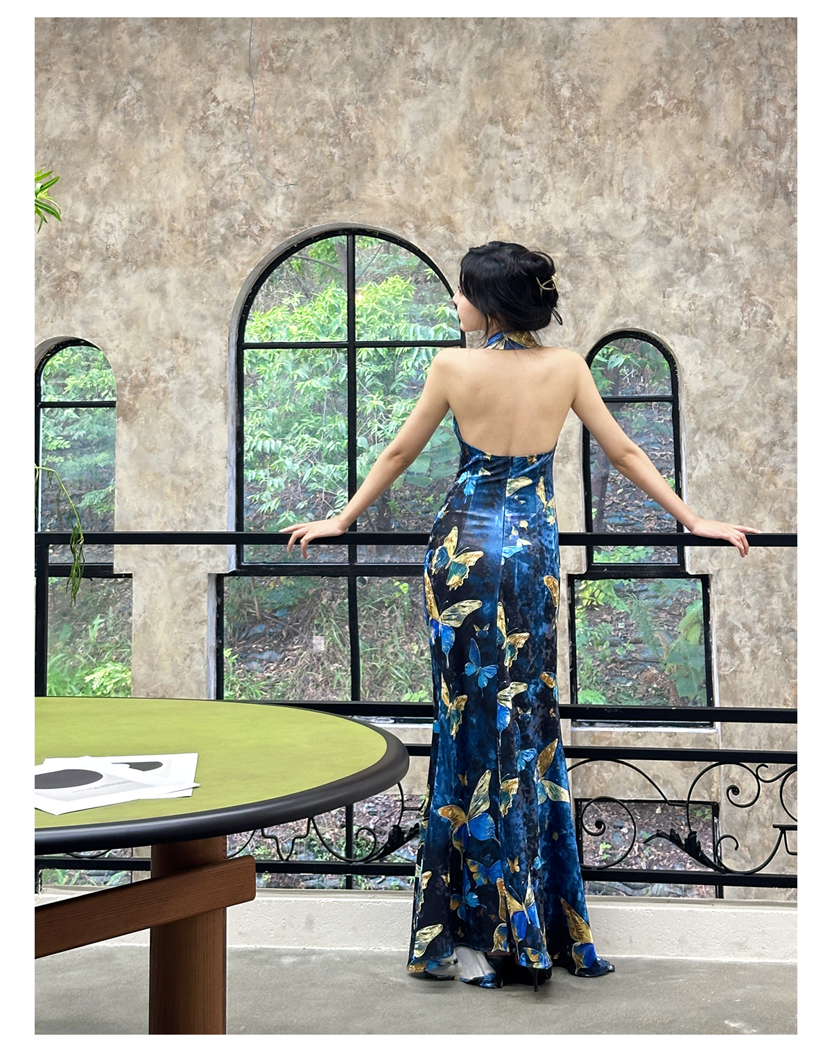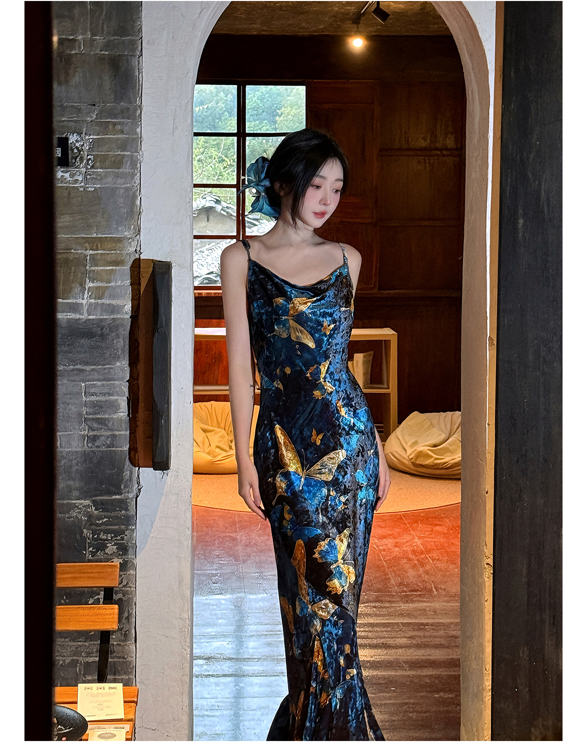 | Color classification | Blue Cheongsam Skirt (backless version) # Blue Cheongsam Skirt (backless version) Blue Swinging Collar Strap |