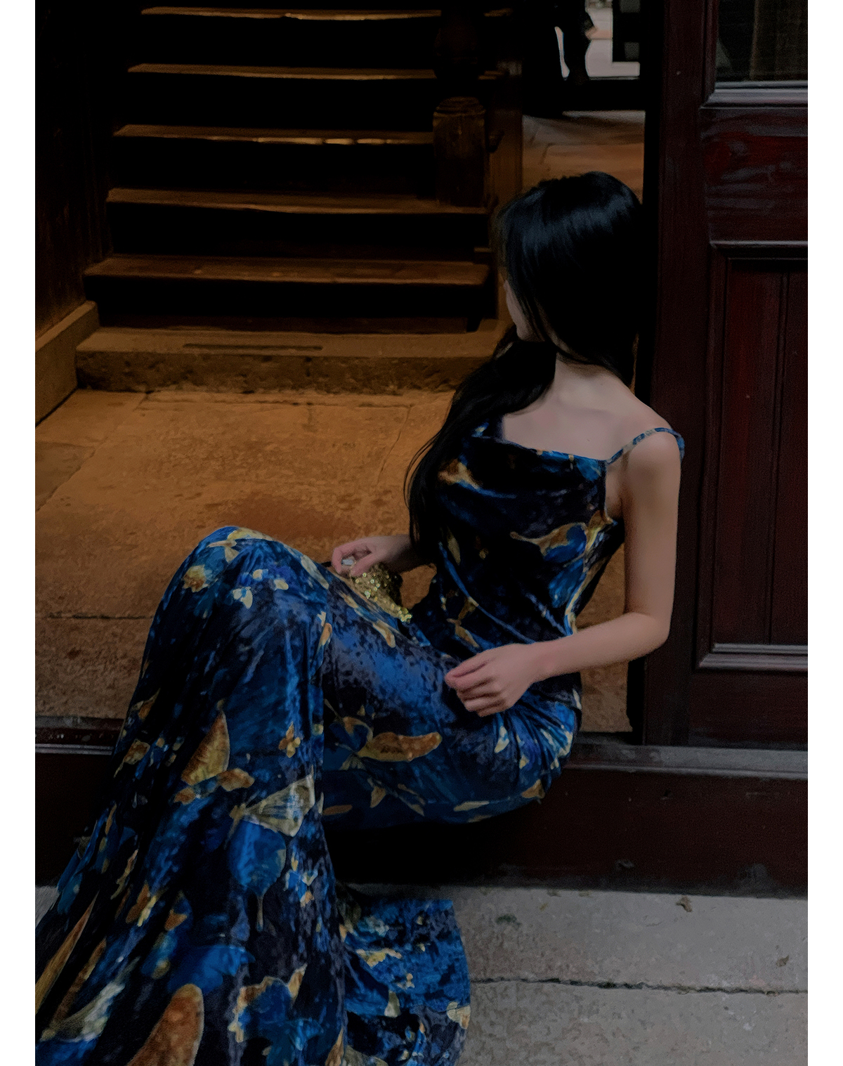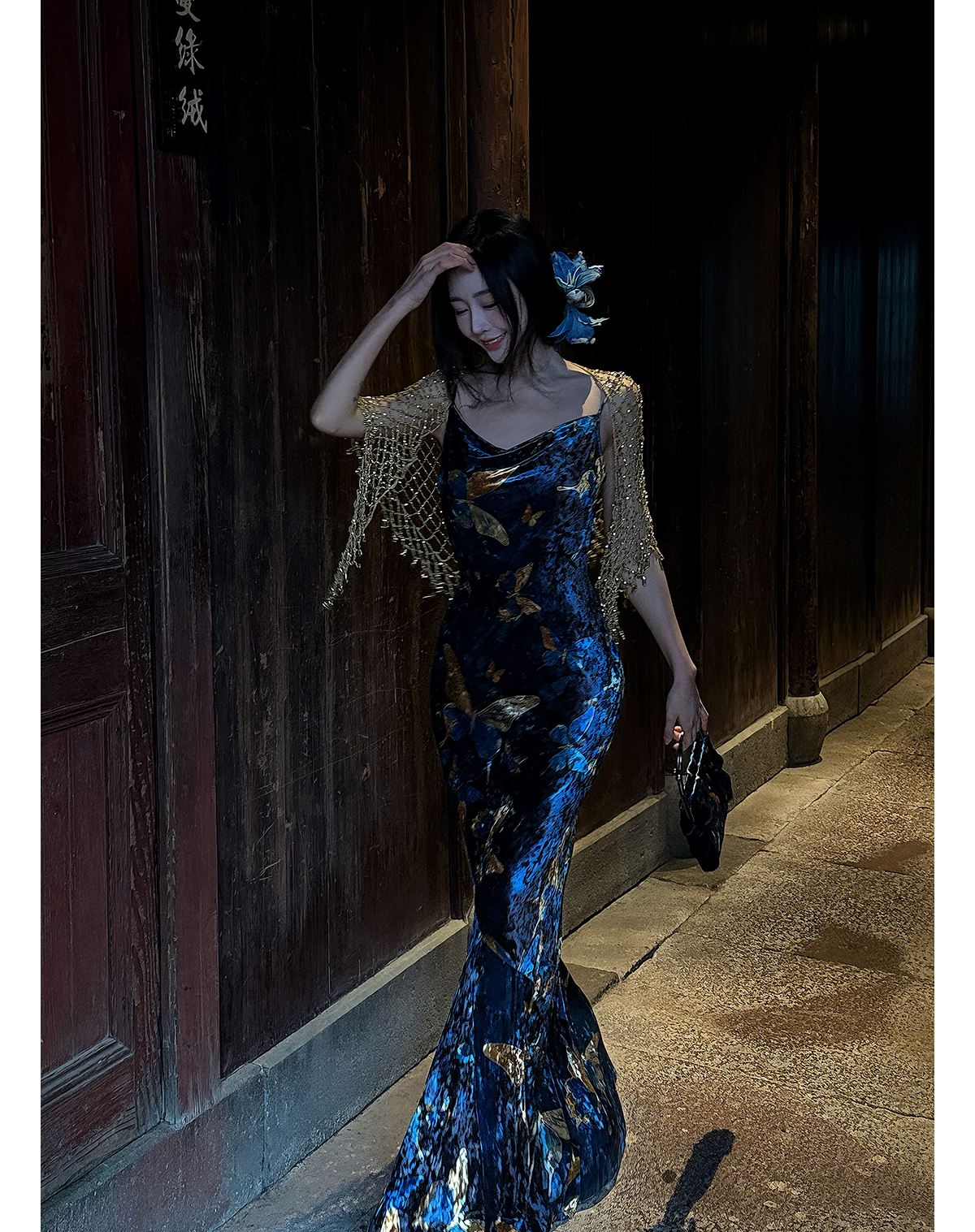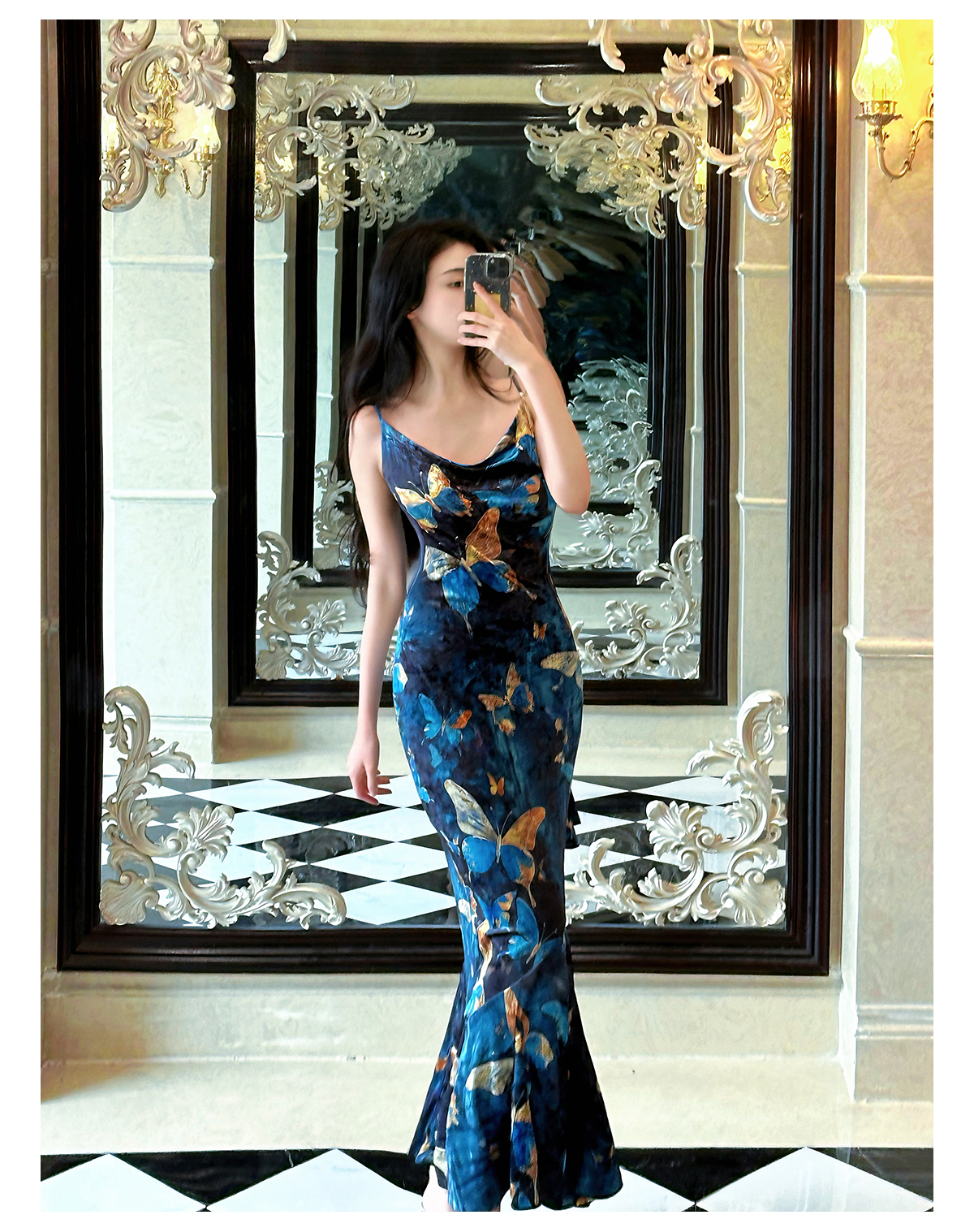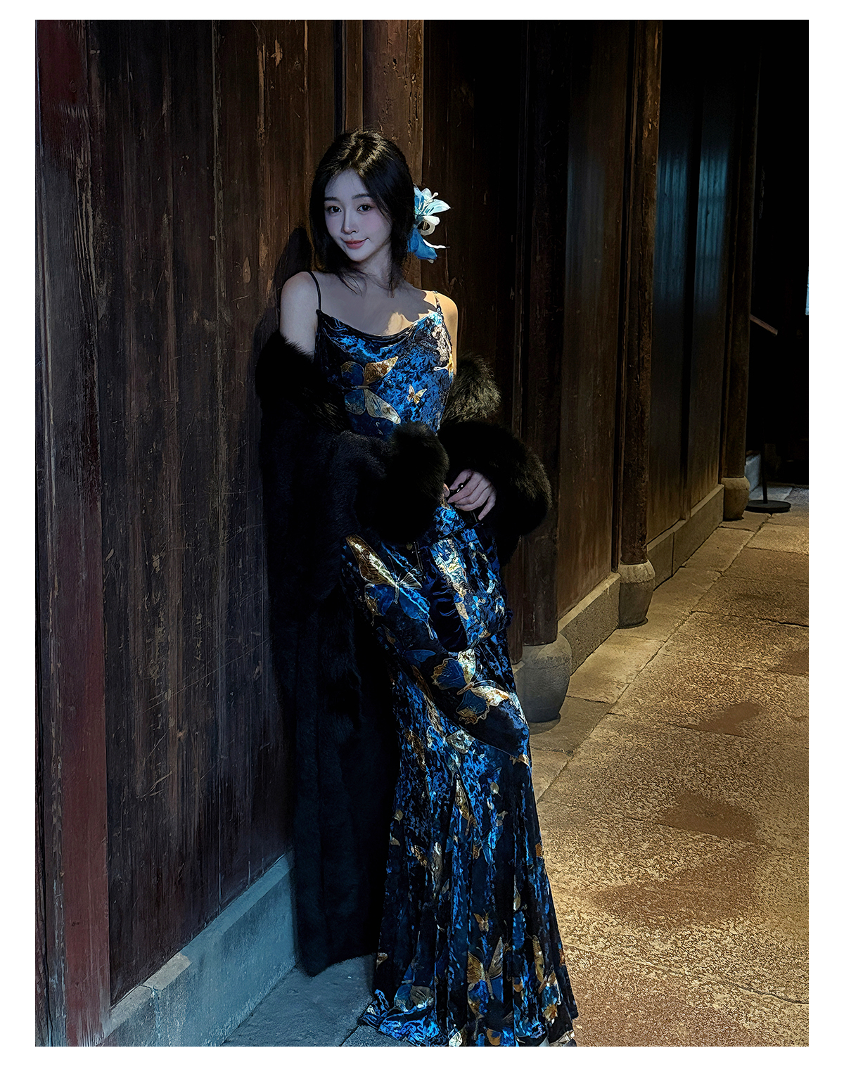 | Color classification | Blue Cheongsam Skirt (backless version) # Blue Cheongsam Skirt (backless version) Blue Swinging Collar Strap |