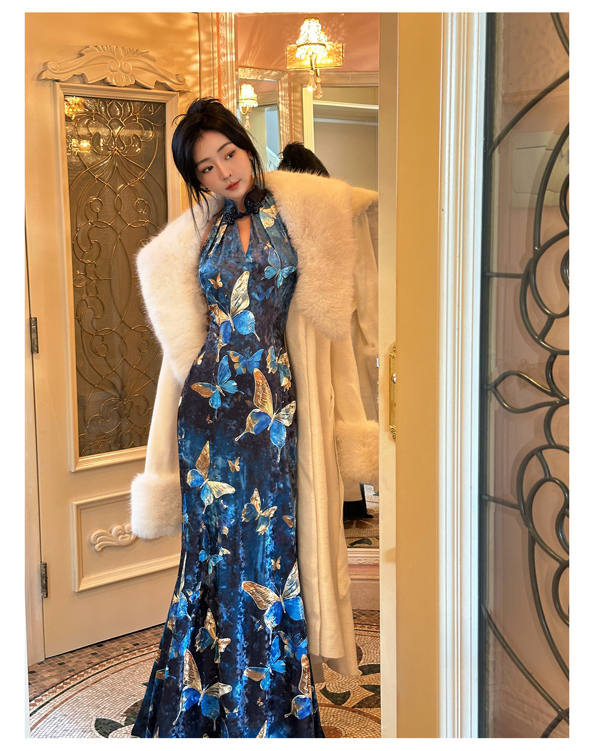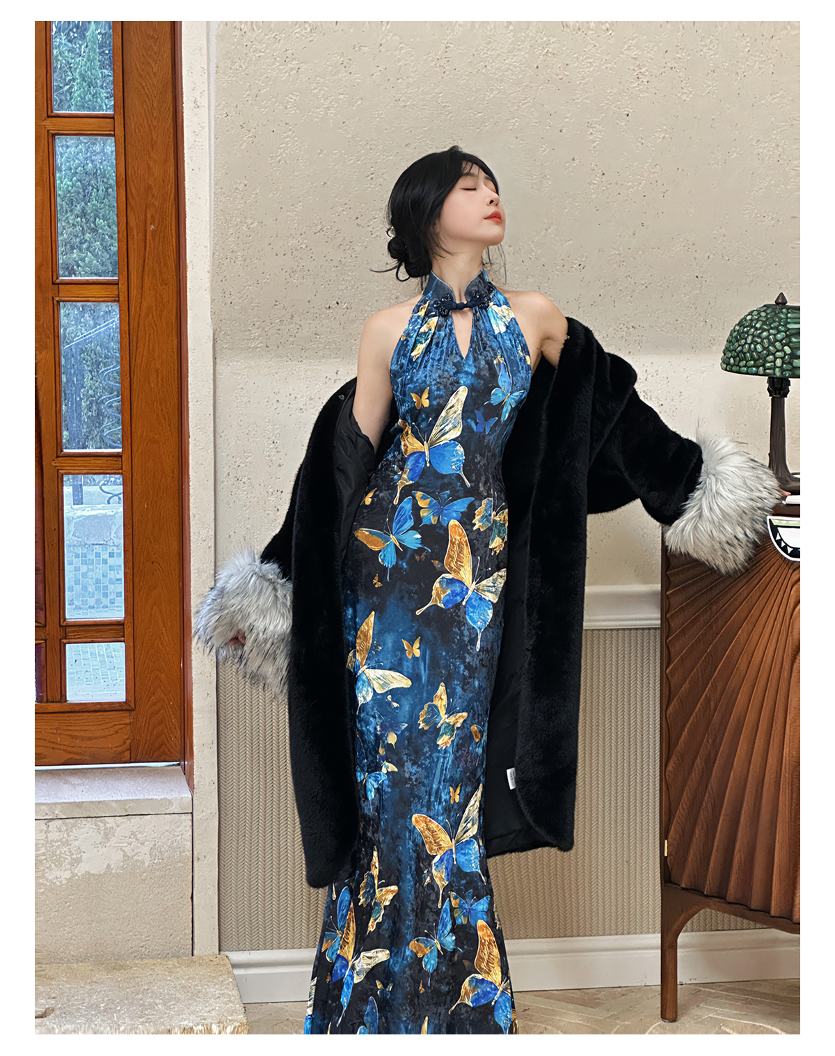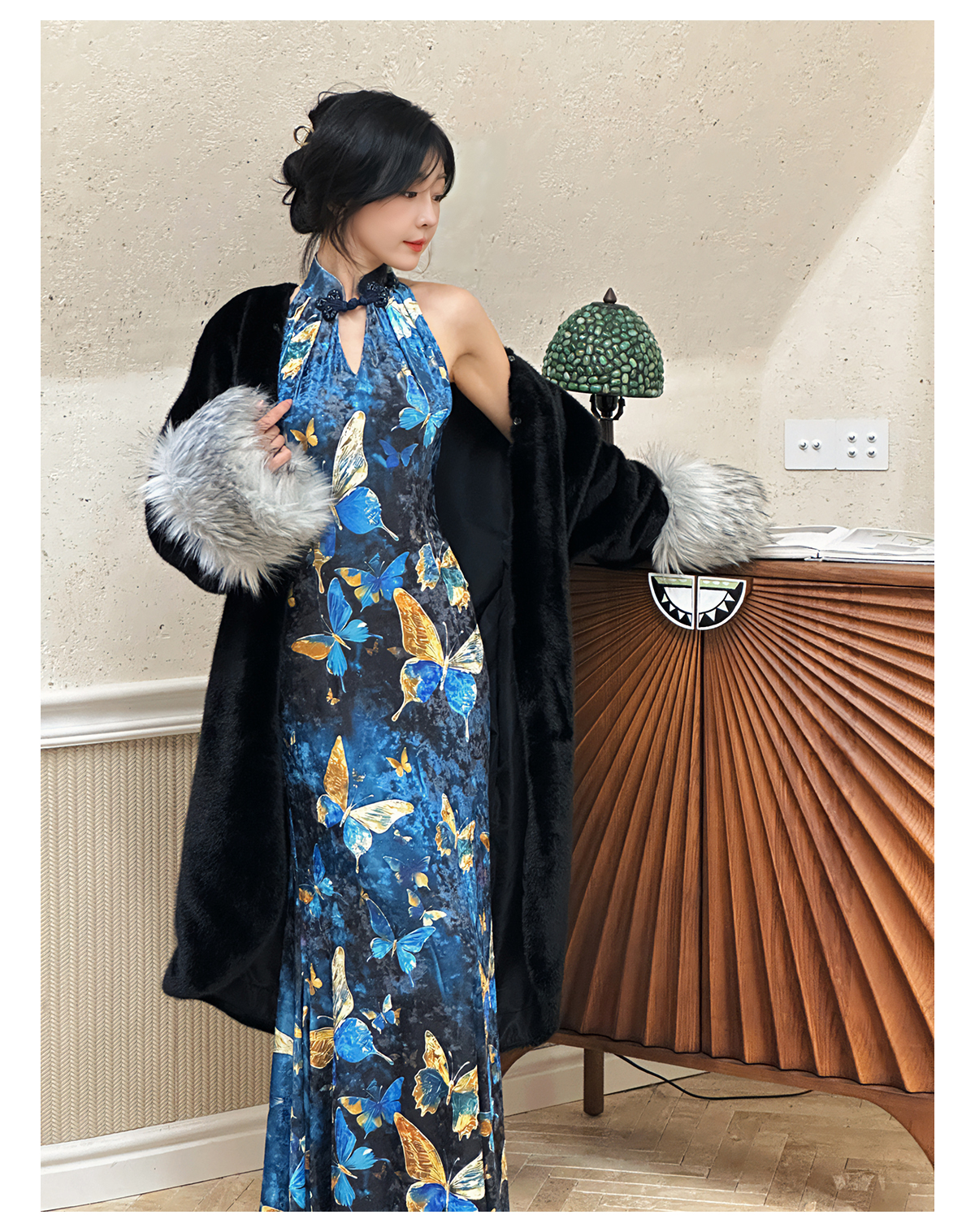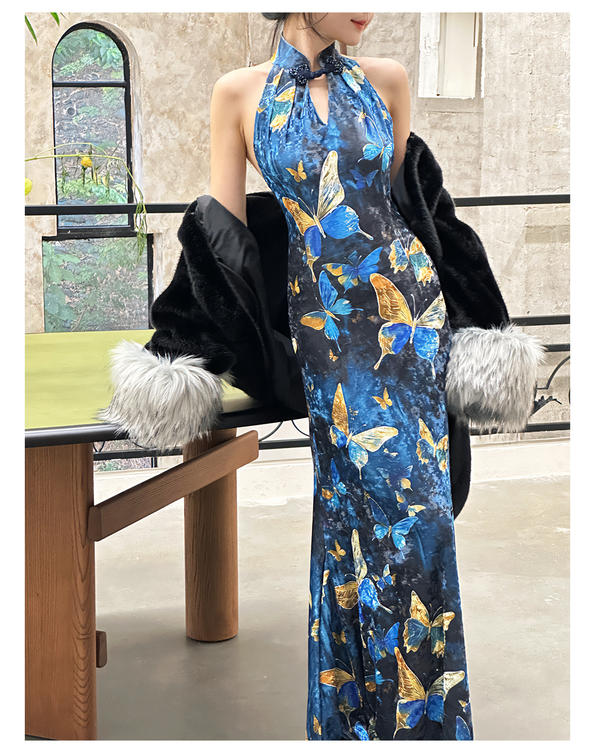ASAYA3133 Gold velvet butterfly new Chinese style improved cheongsam dress