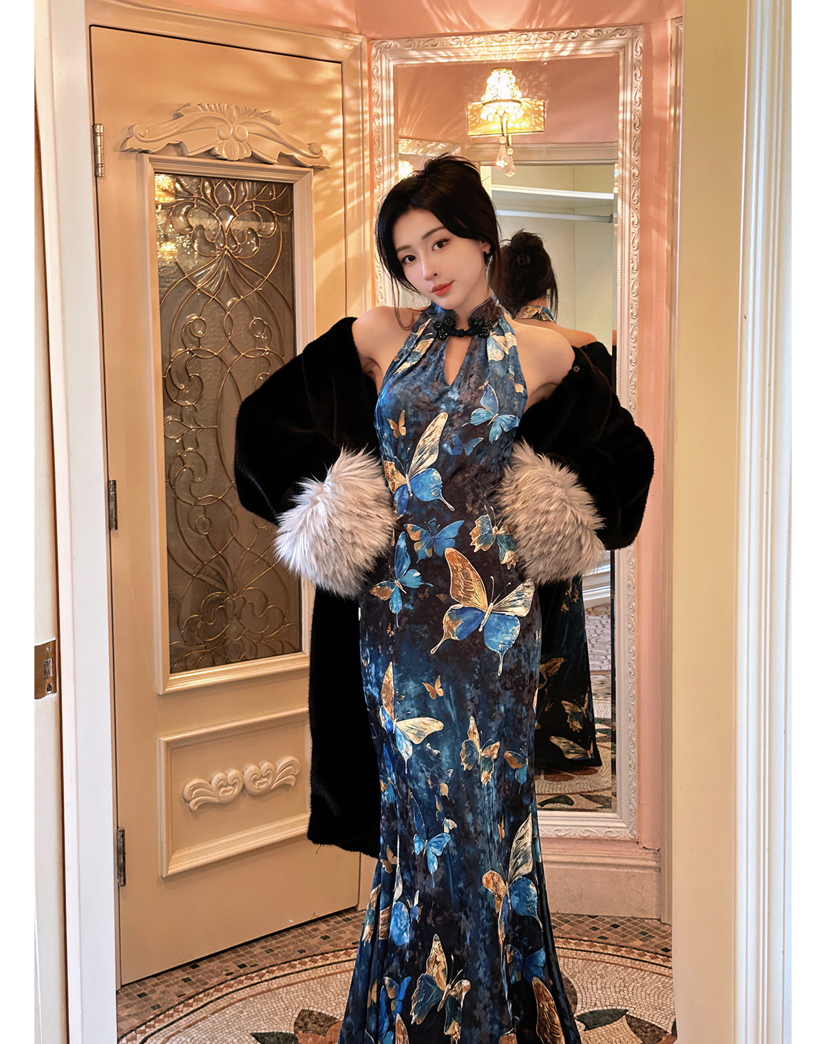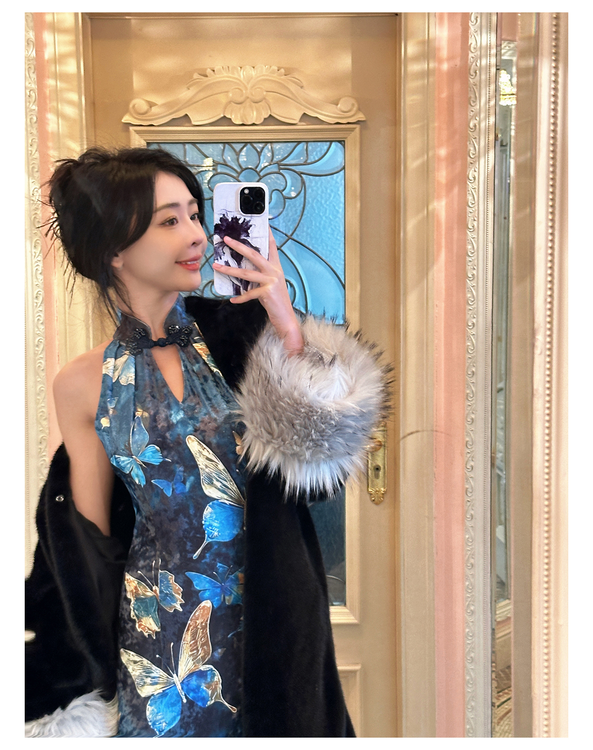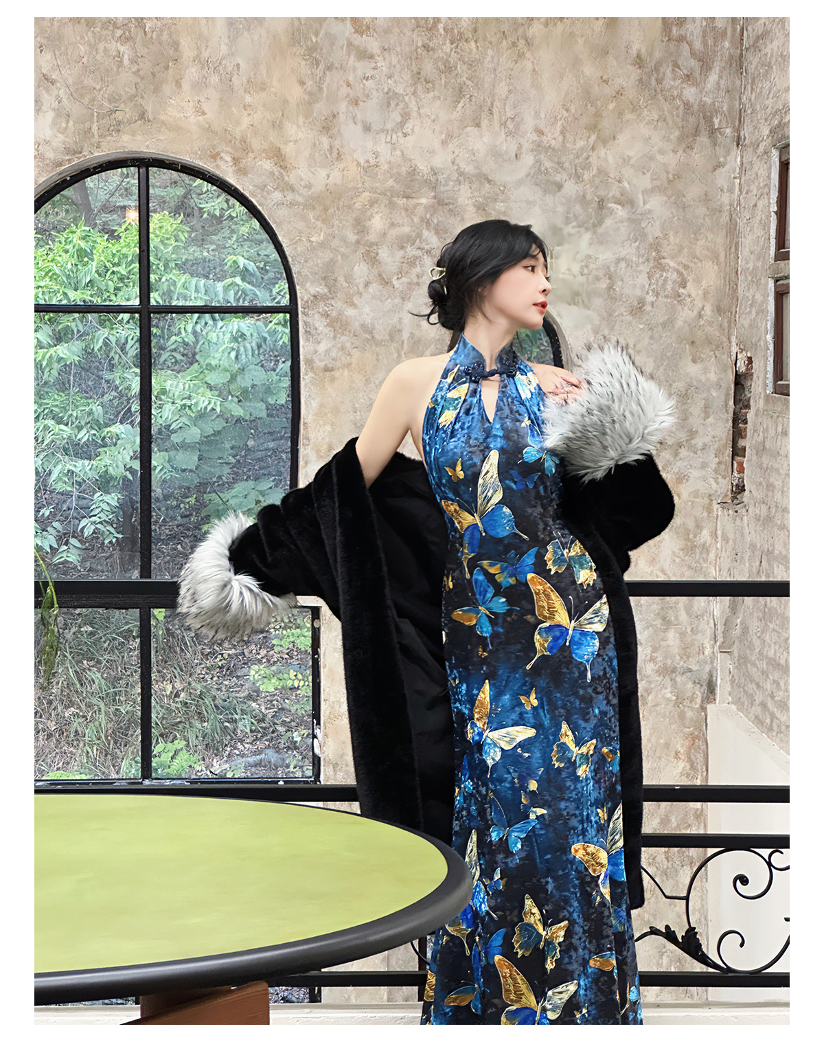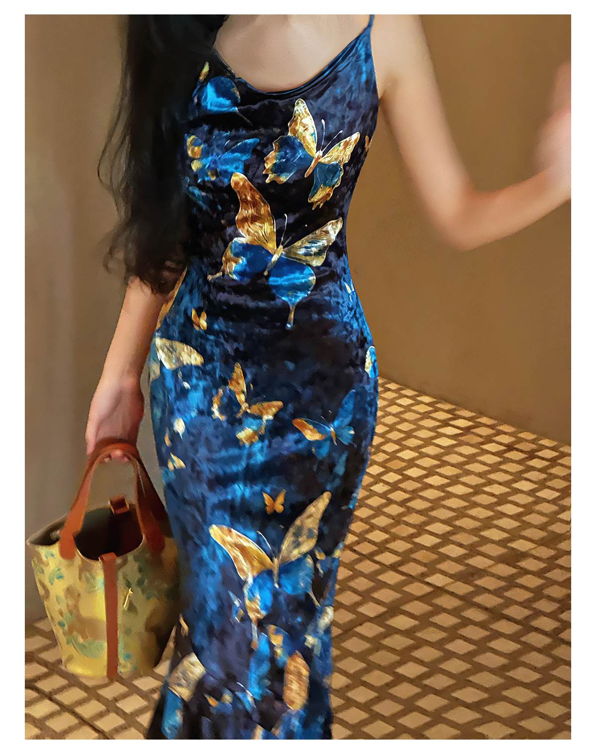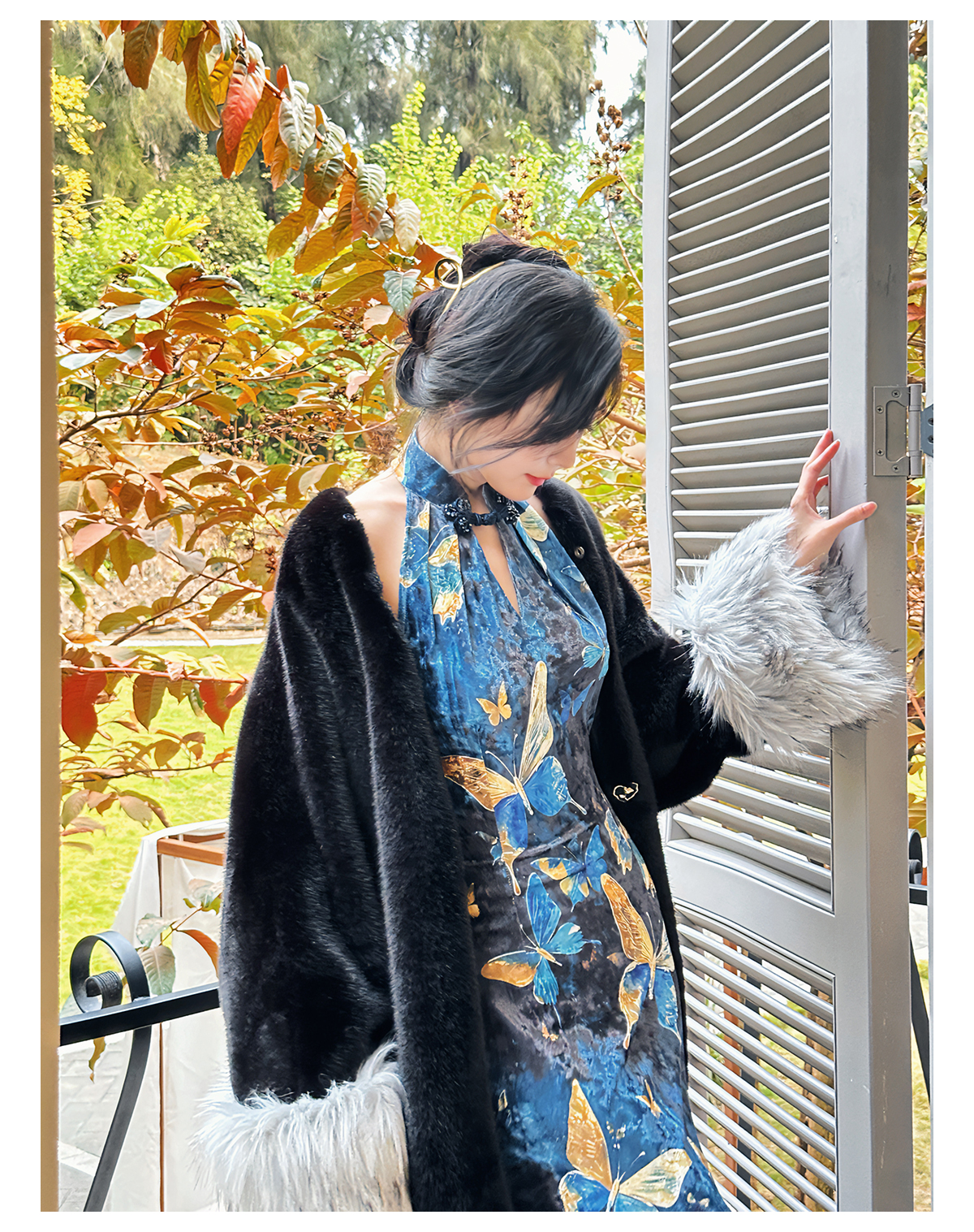 ASAYA3133 Gold velvet butterfly new Chinese style improved cheongsam dress