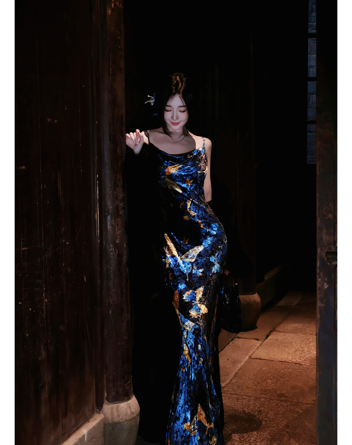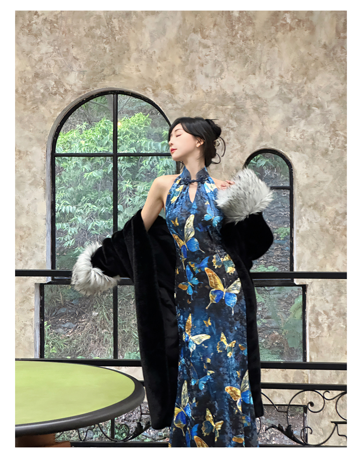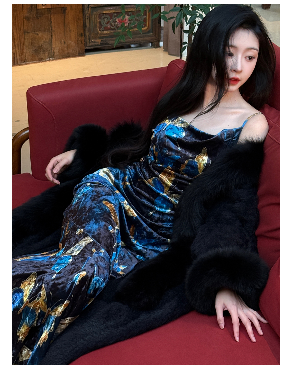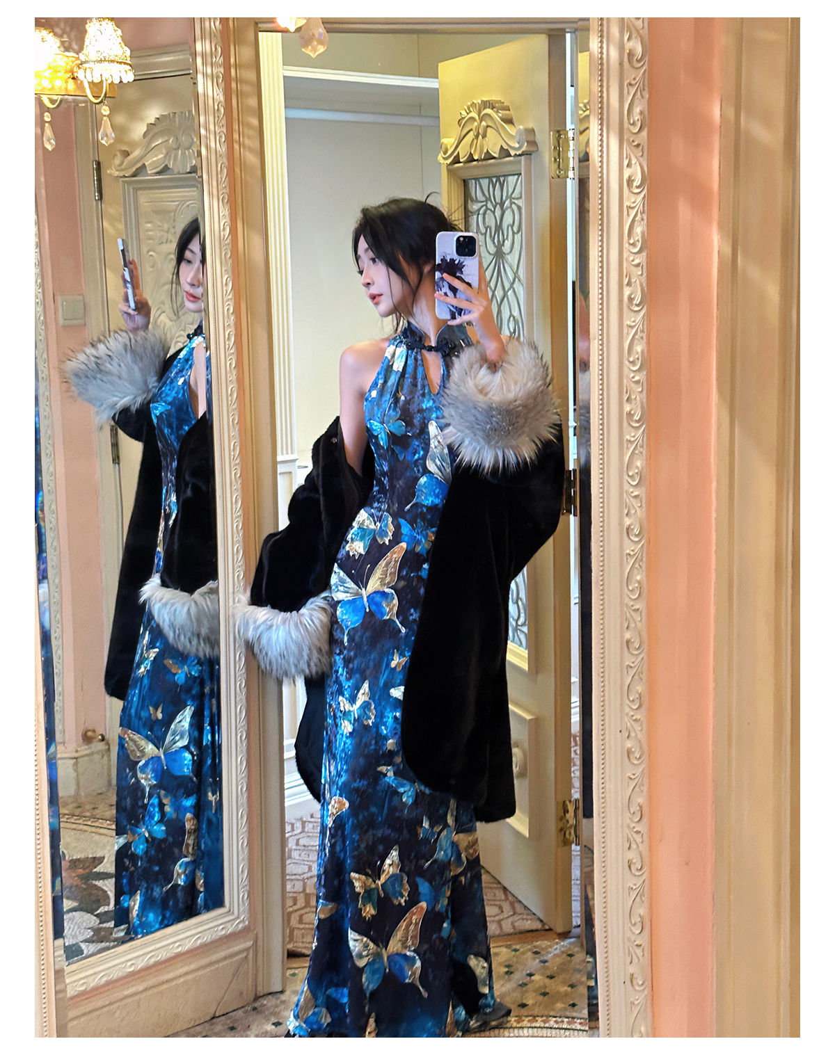 ASAYA3133 Gold velvet butterfly new Chinese style improved cheongsam dress