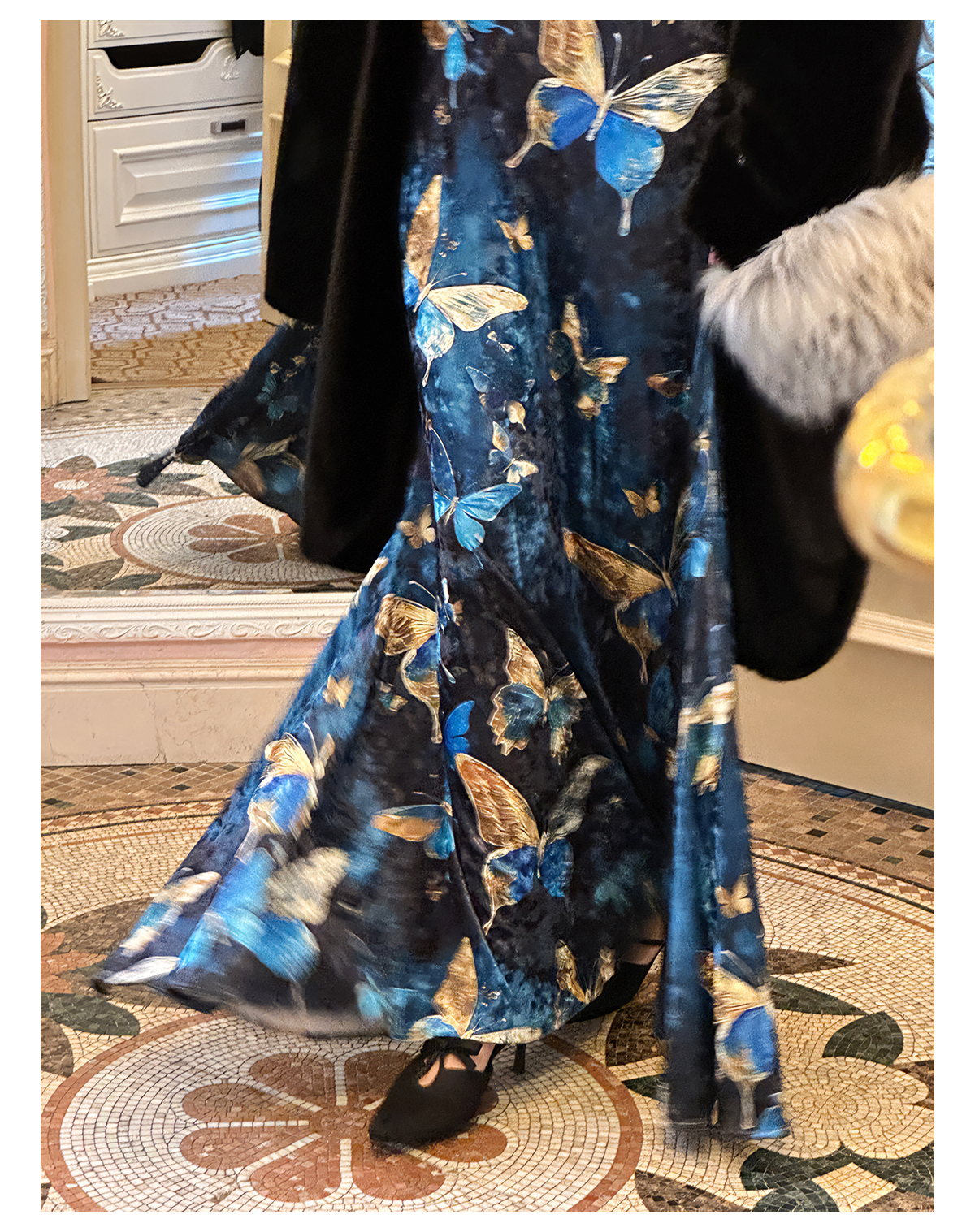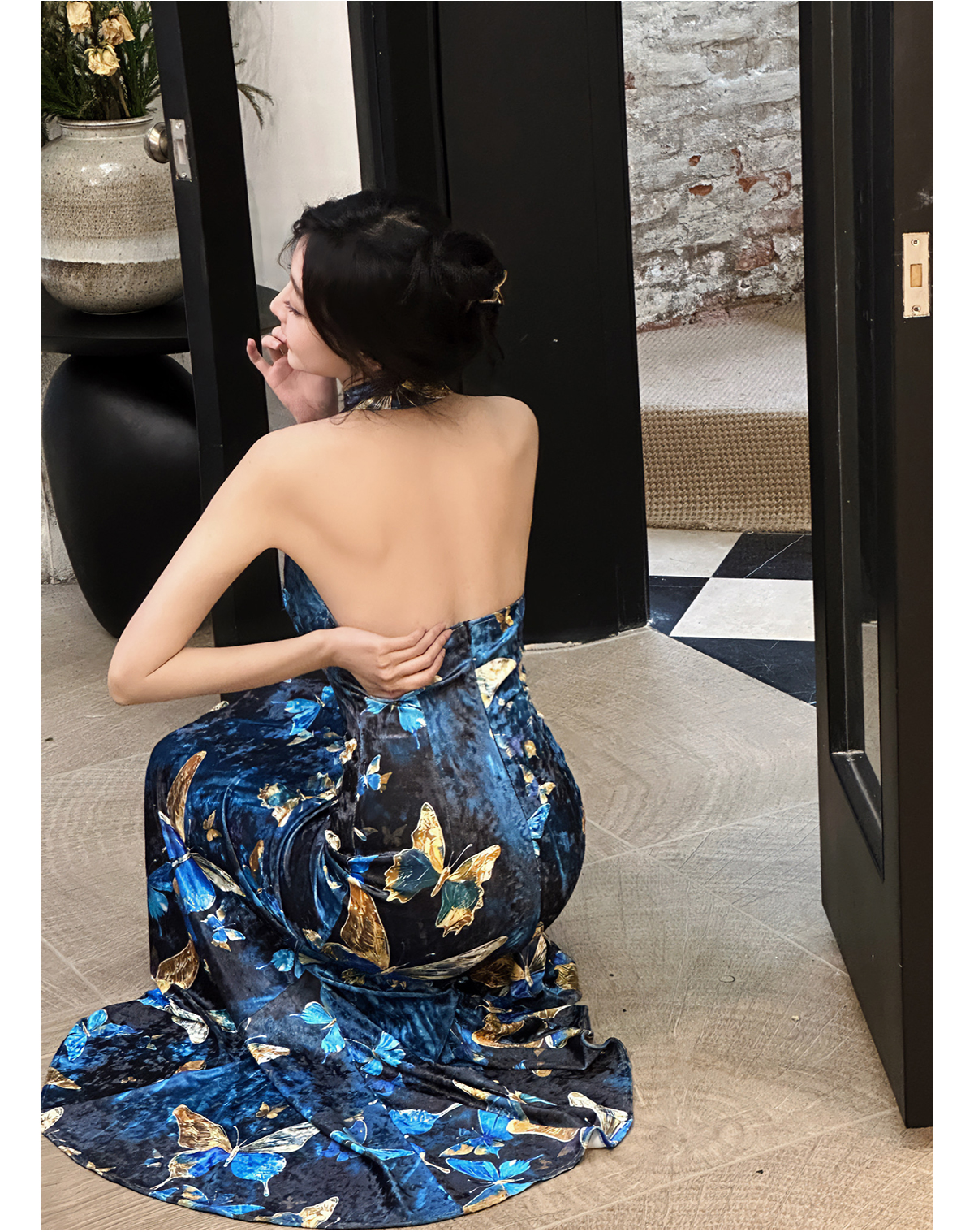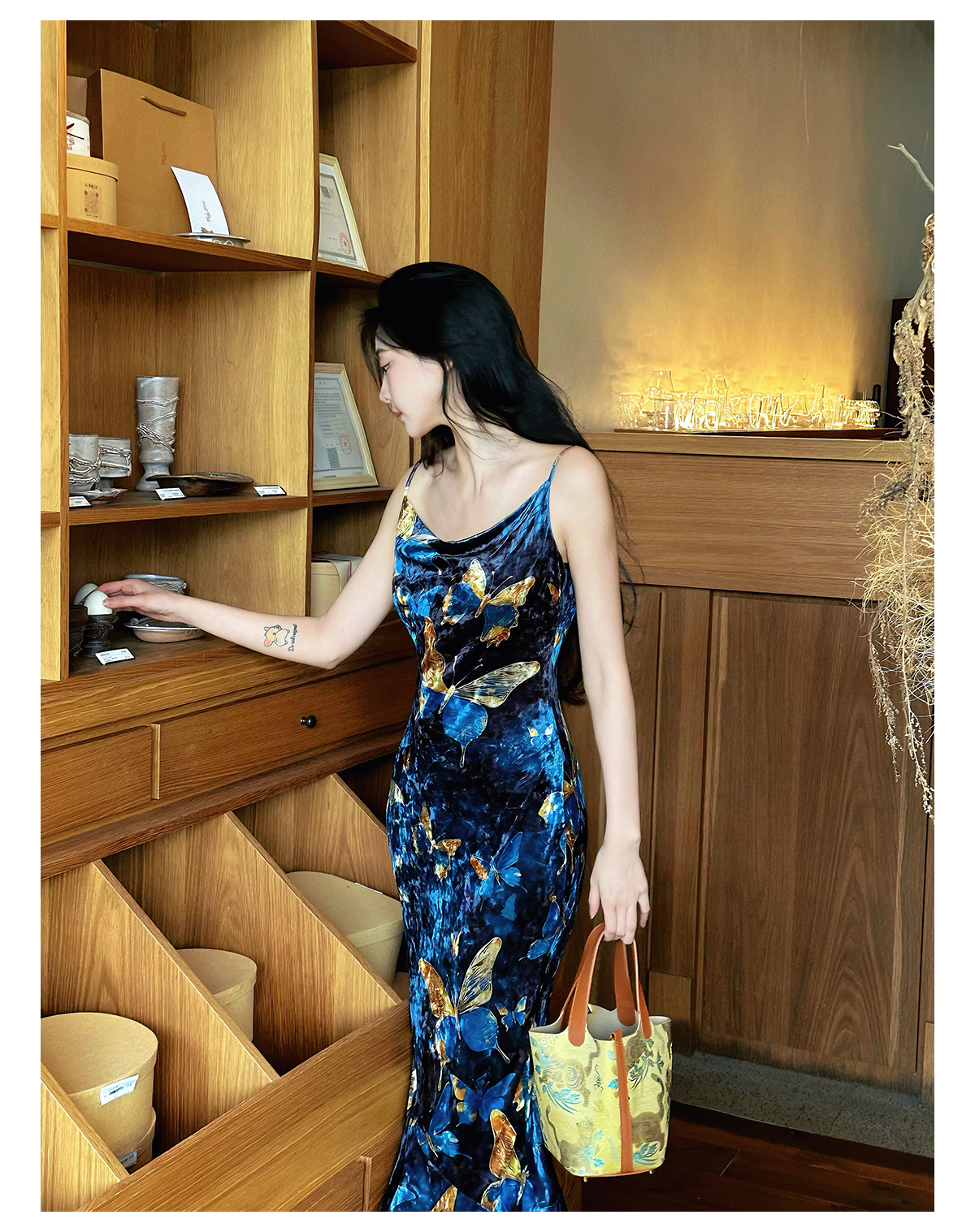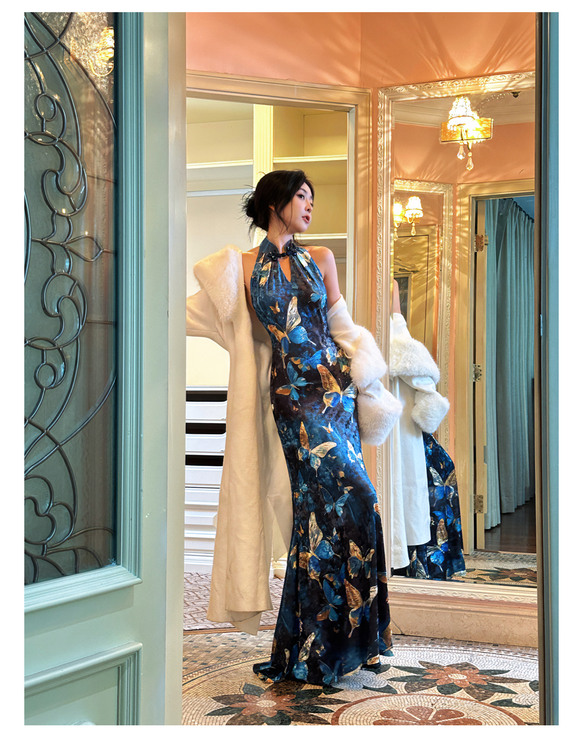 ASAYA3133 Gold velvet butterfly new Chinese style improved cheongsam dress
