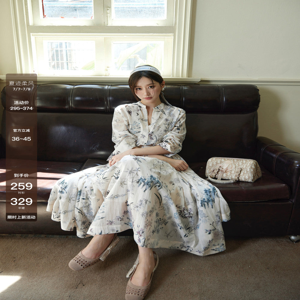 | color classification | Rice bottom printed shirt and rice bottom printed skirt |