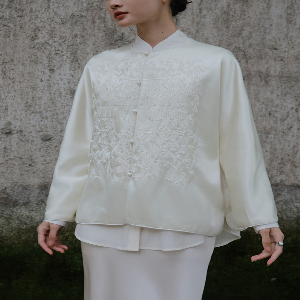ASAYA4456 - Regal Embroidered Satin Jacket 🏮🕊️