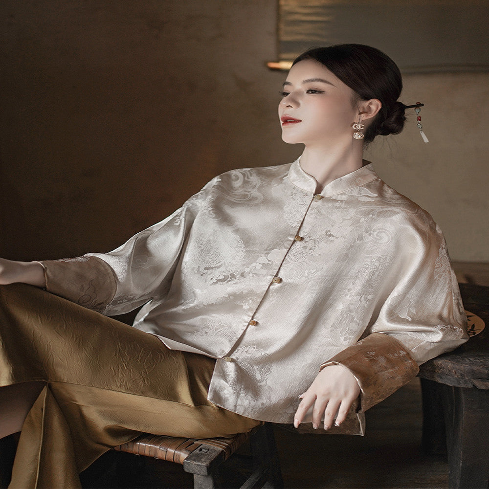 ASAYA4636 – Ivory Elegance Silk Jacket 🌸✨