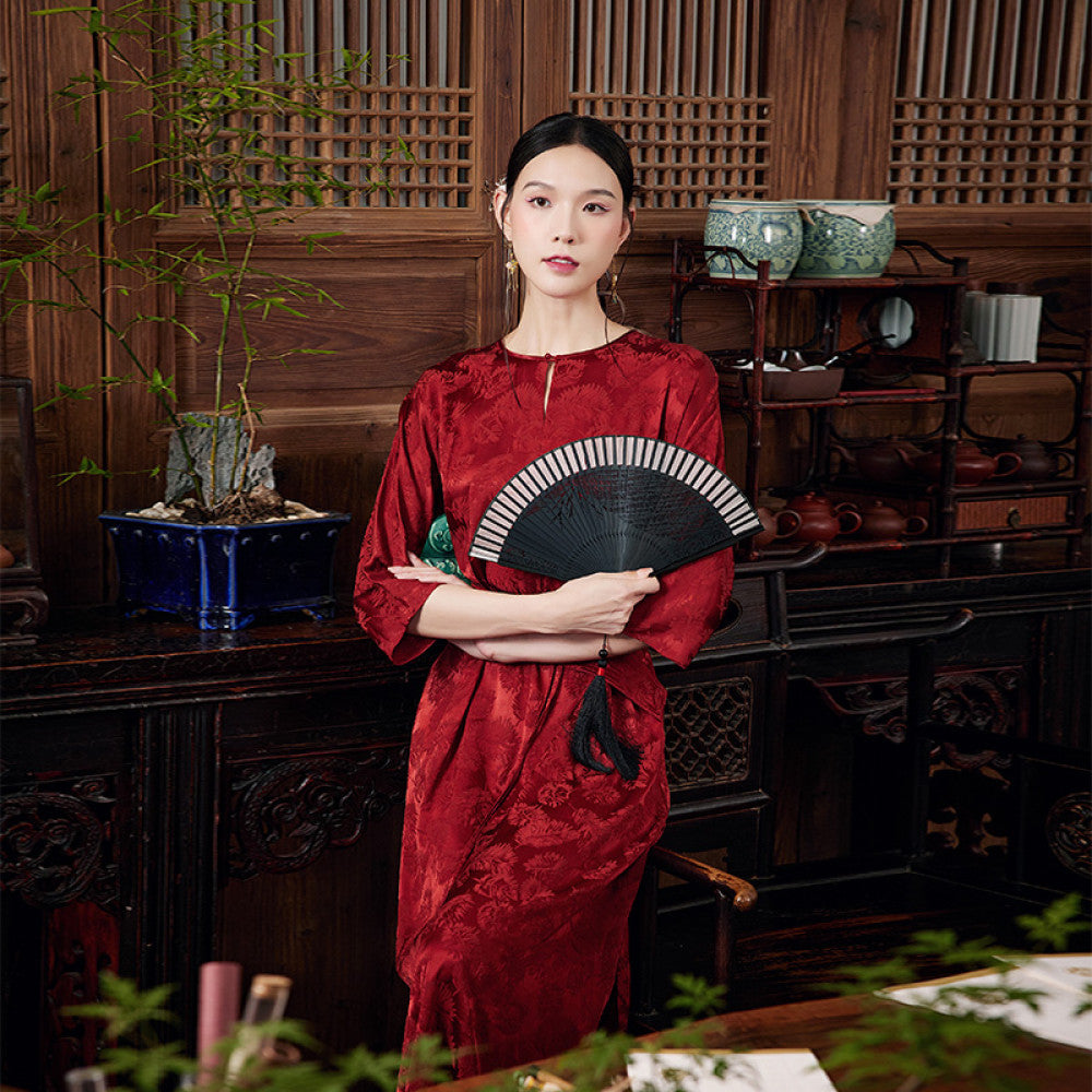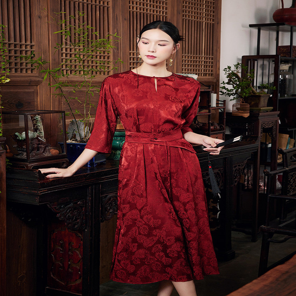 ASAYA4061 - Maple Leaf Jacquard Satin Dress 🌿🍁