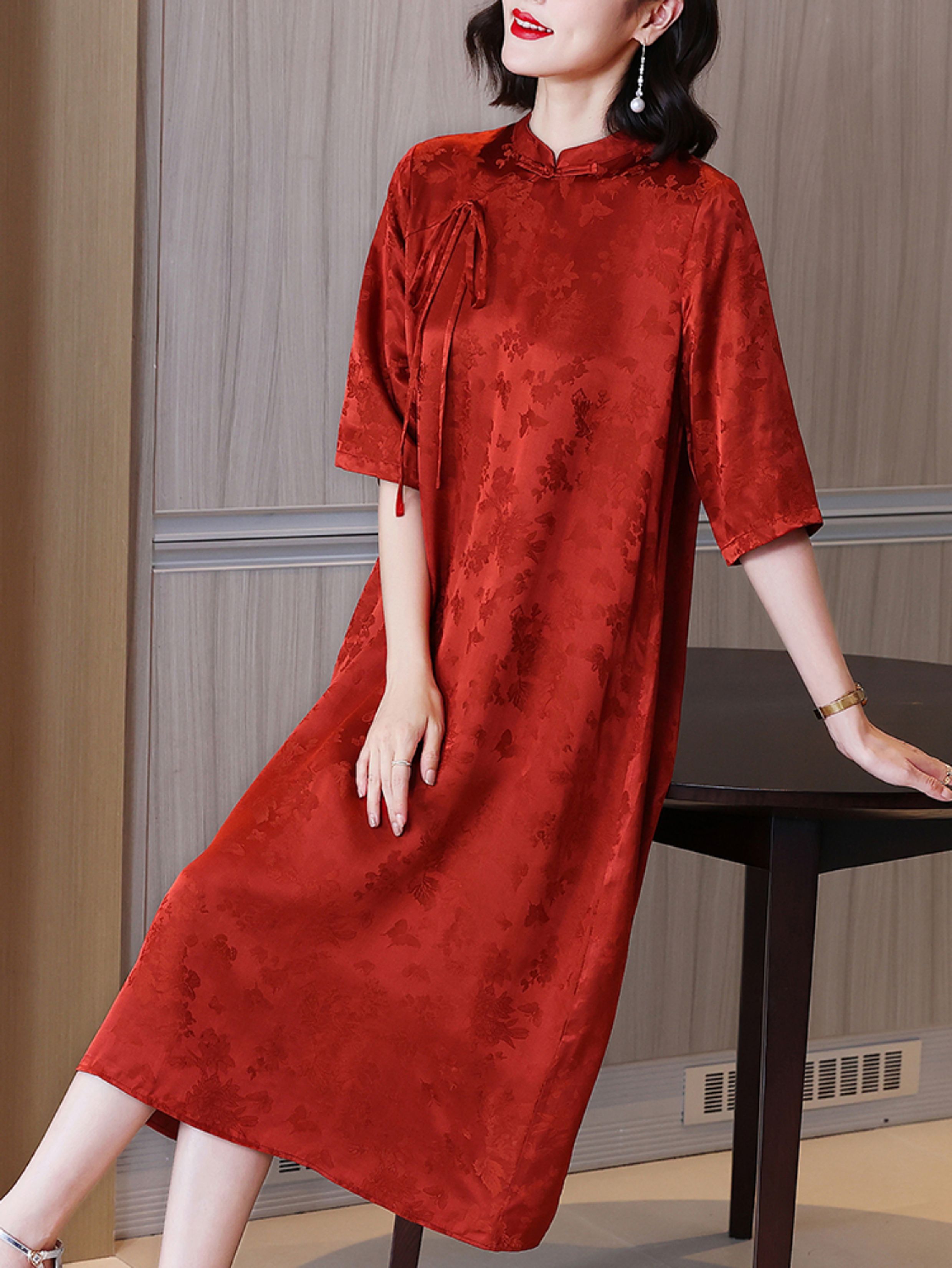 Asaya1180 - jacquard eight-quarter sleeve Chinese robe dress