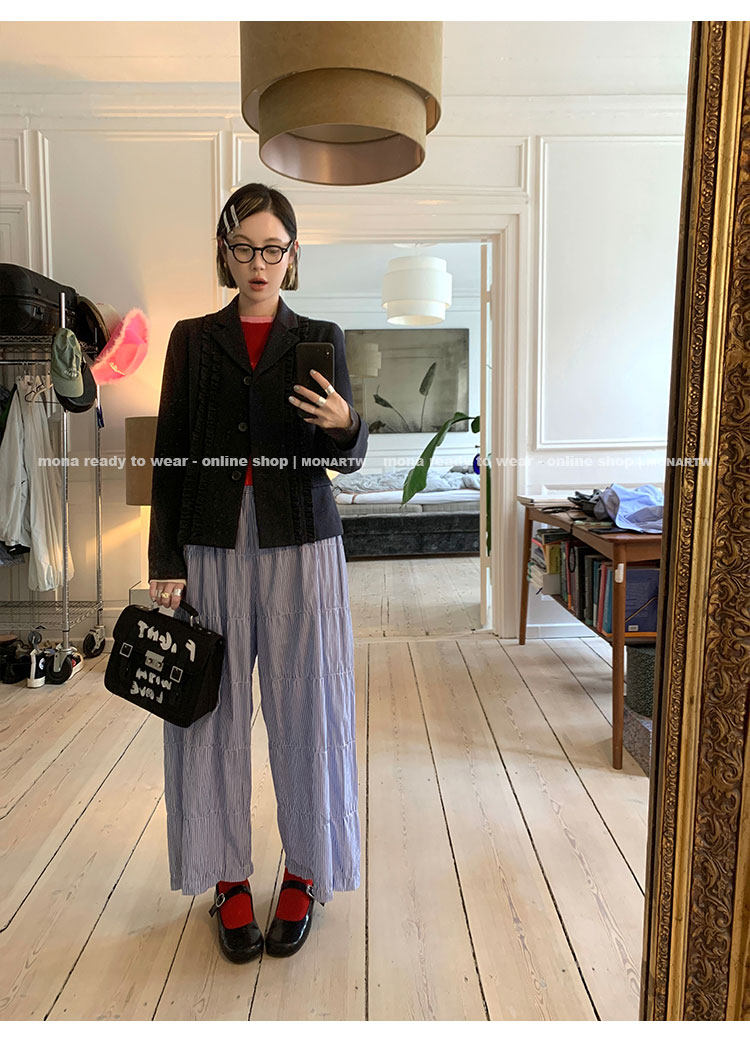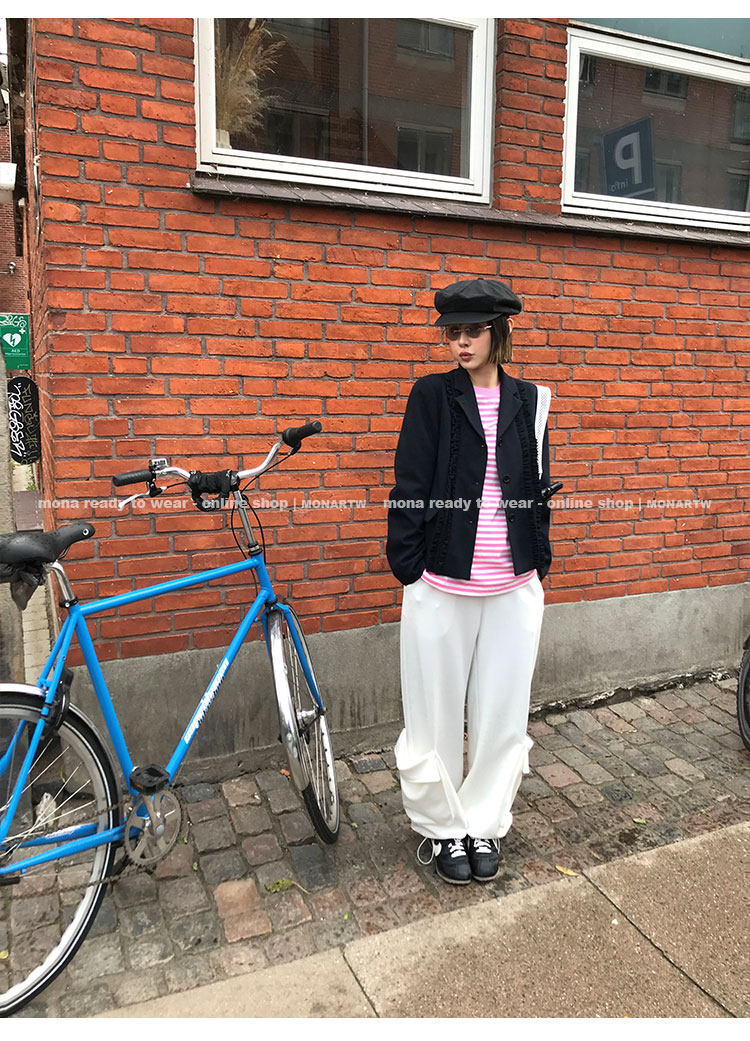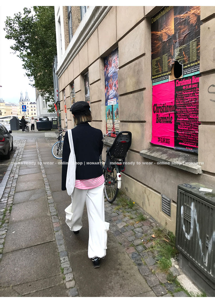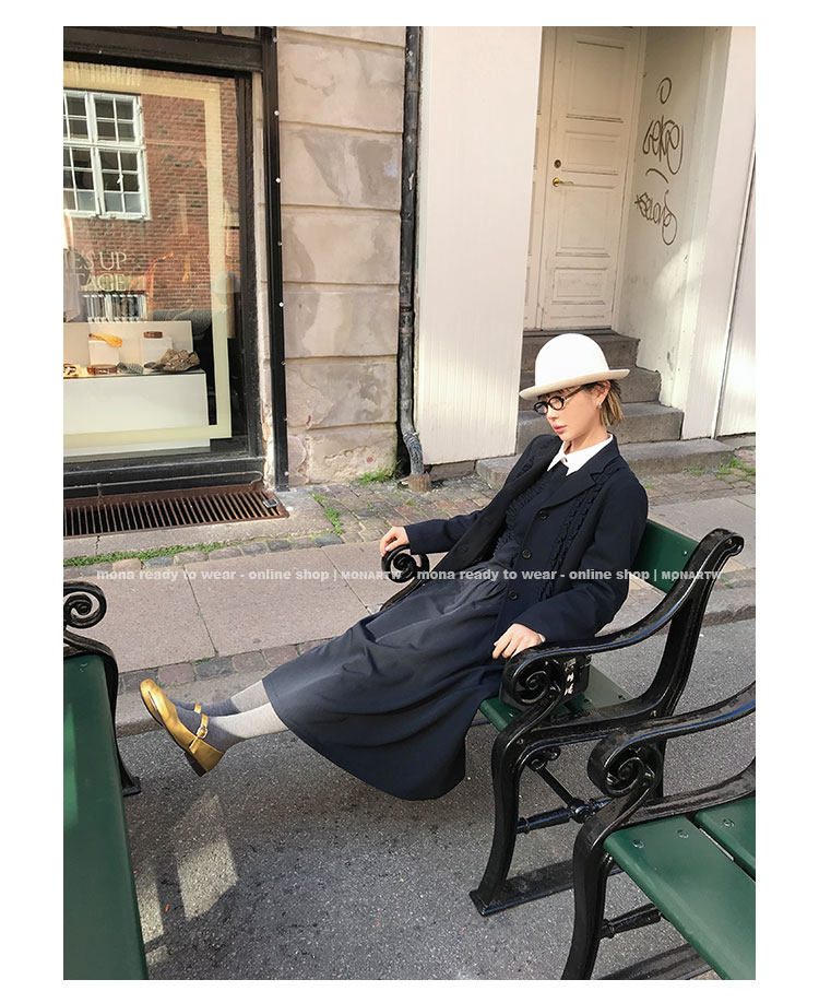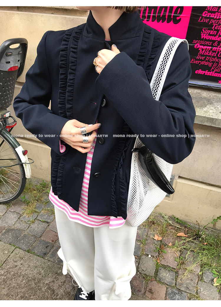 外套围度偏合身有余量,正面为线条利落的偏H版型