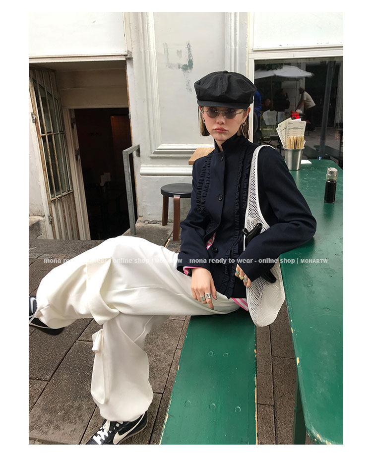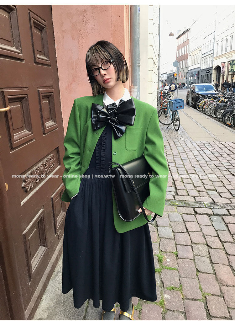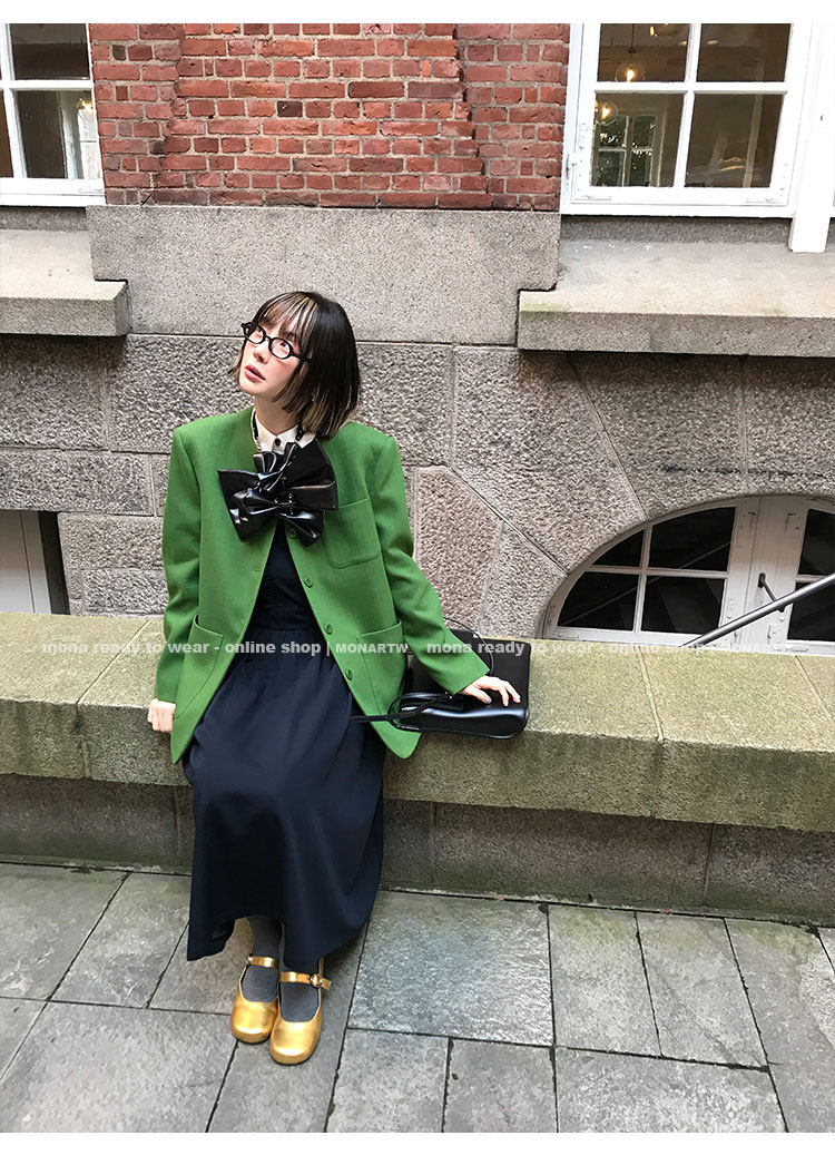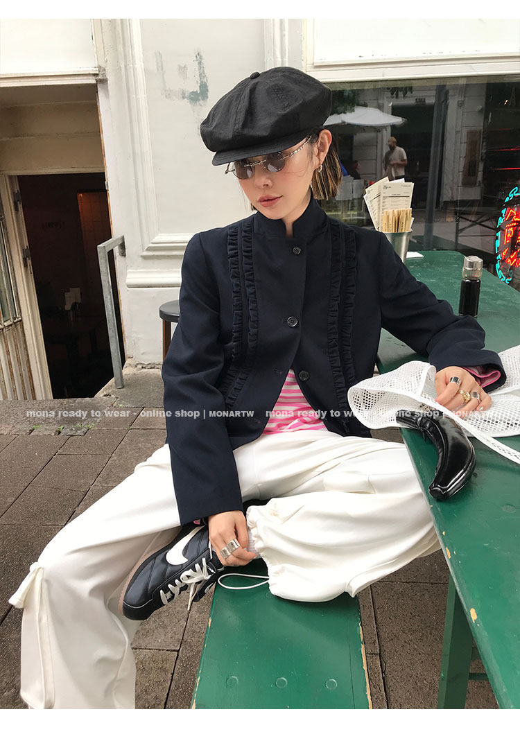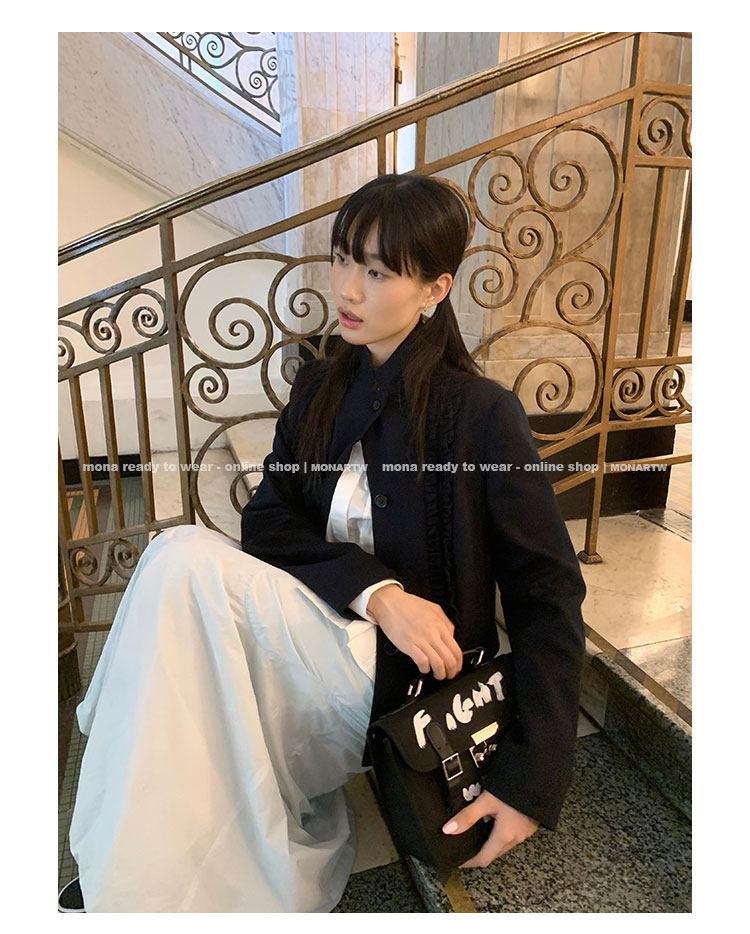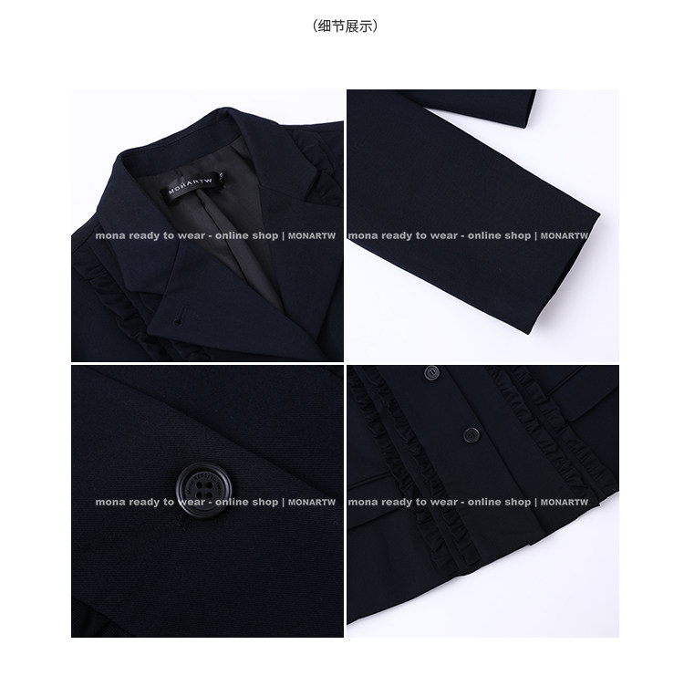 立体微阔袖型,采用两片西装袖做法,上身更加立体有型