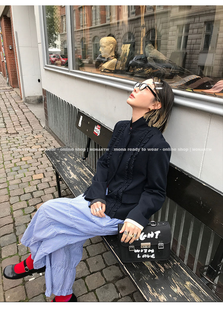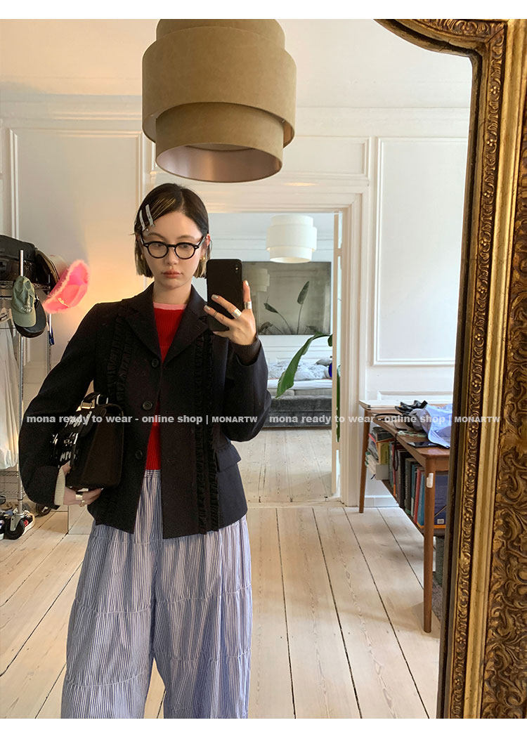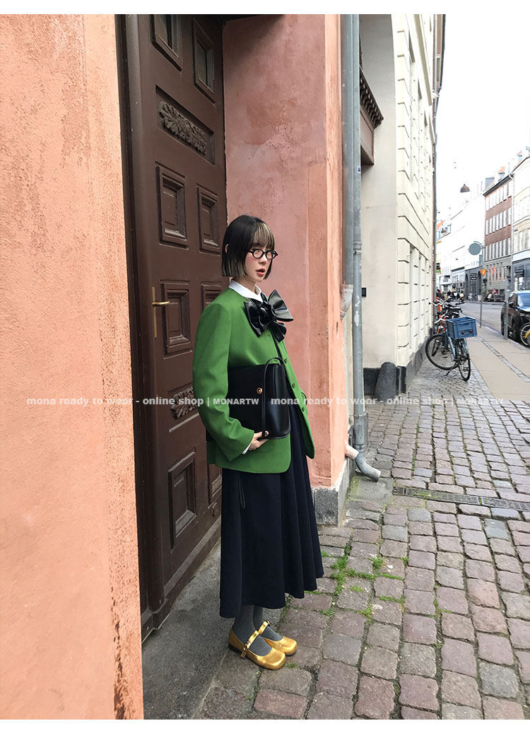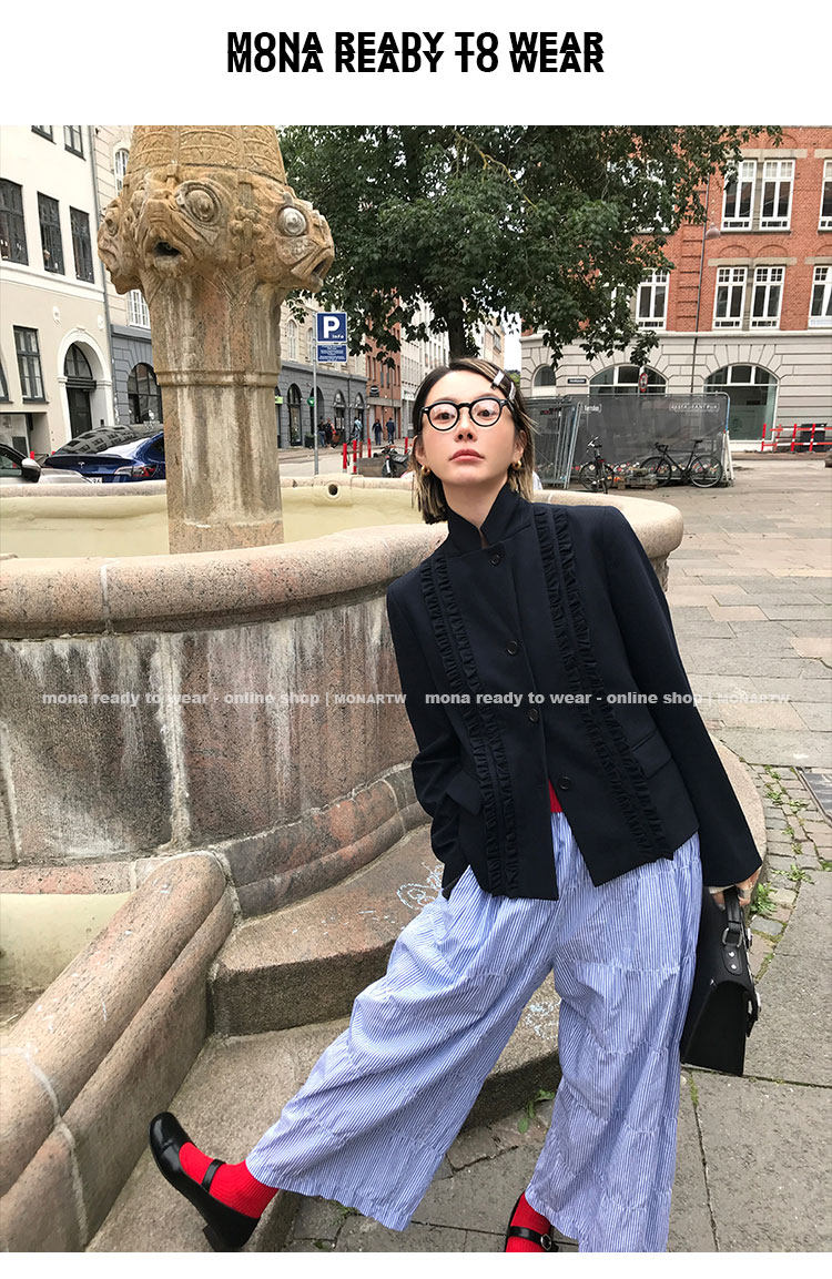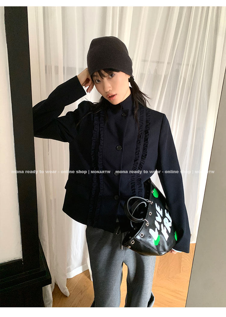 立体微阔袖型,采用两片西装袖做法,上身更加立体有型