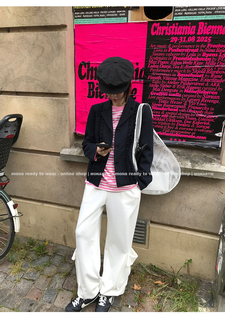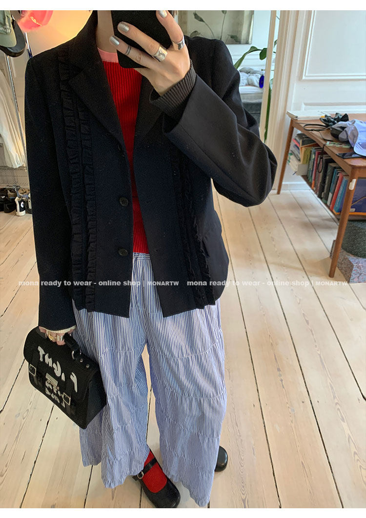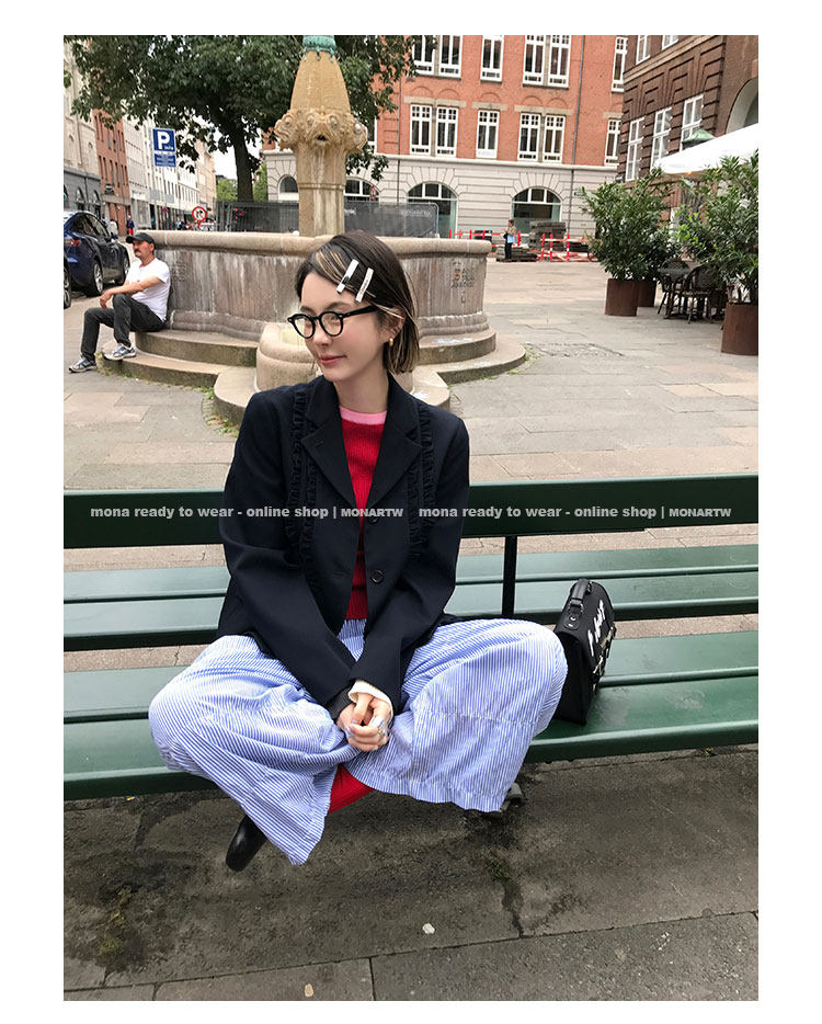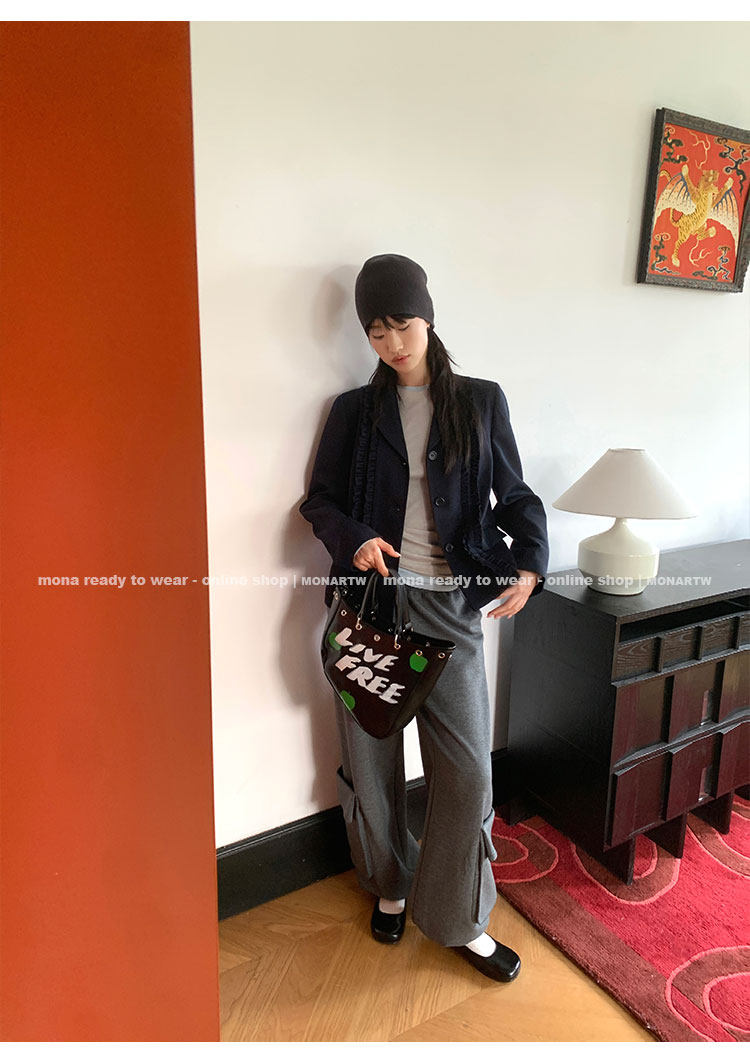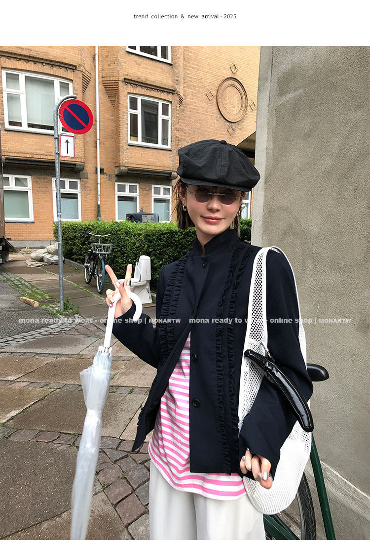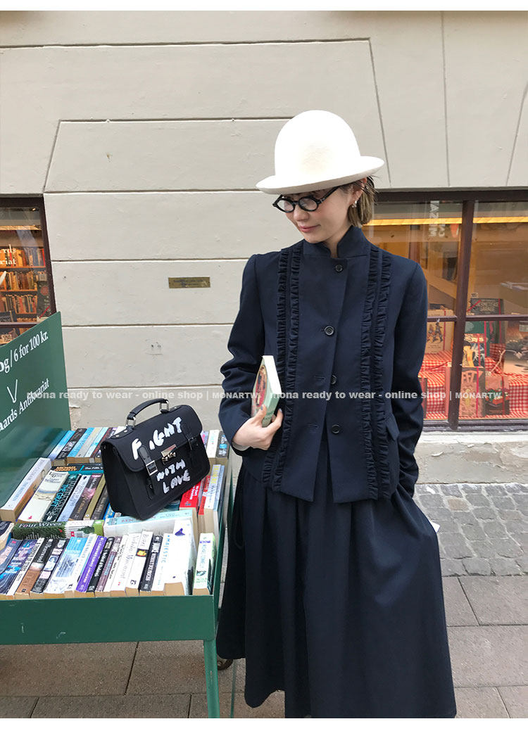 立体微阔袖型,采用两片西装袖做法,上身更加立体有型
