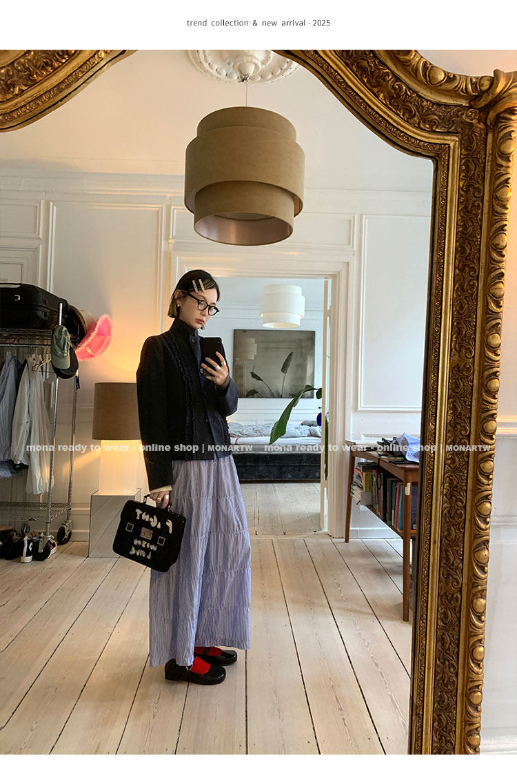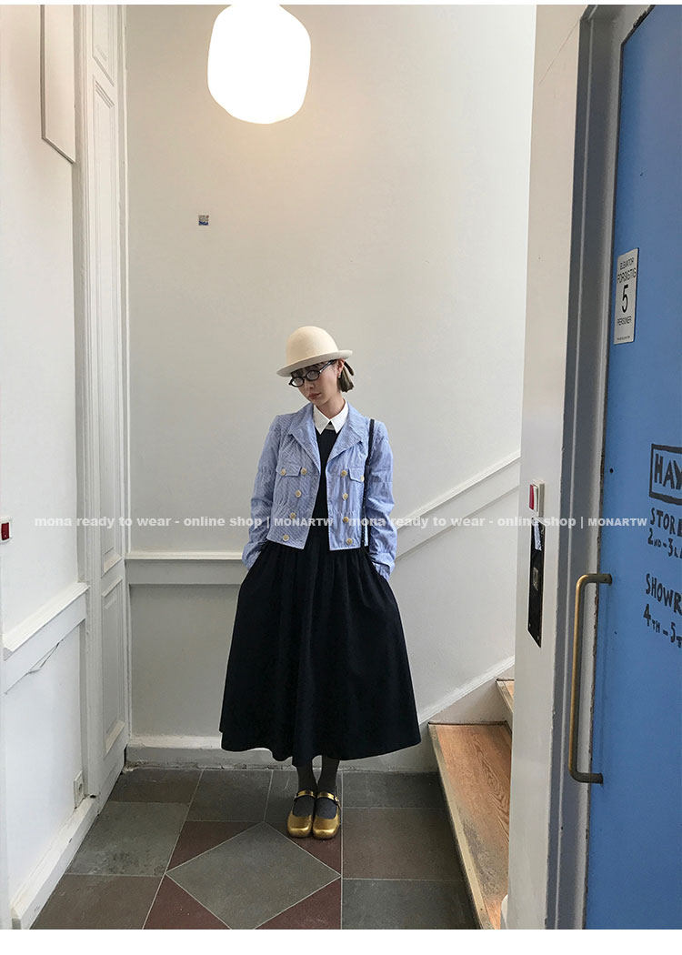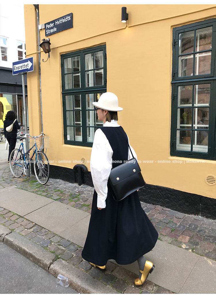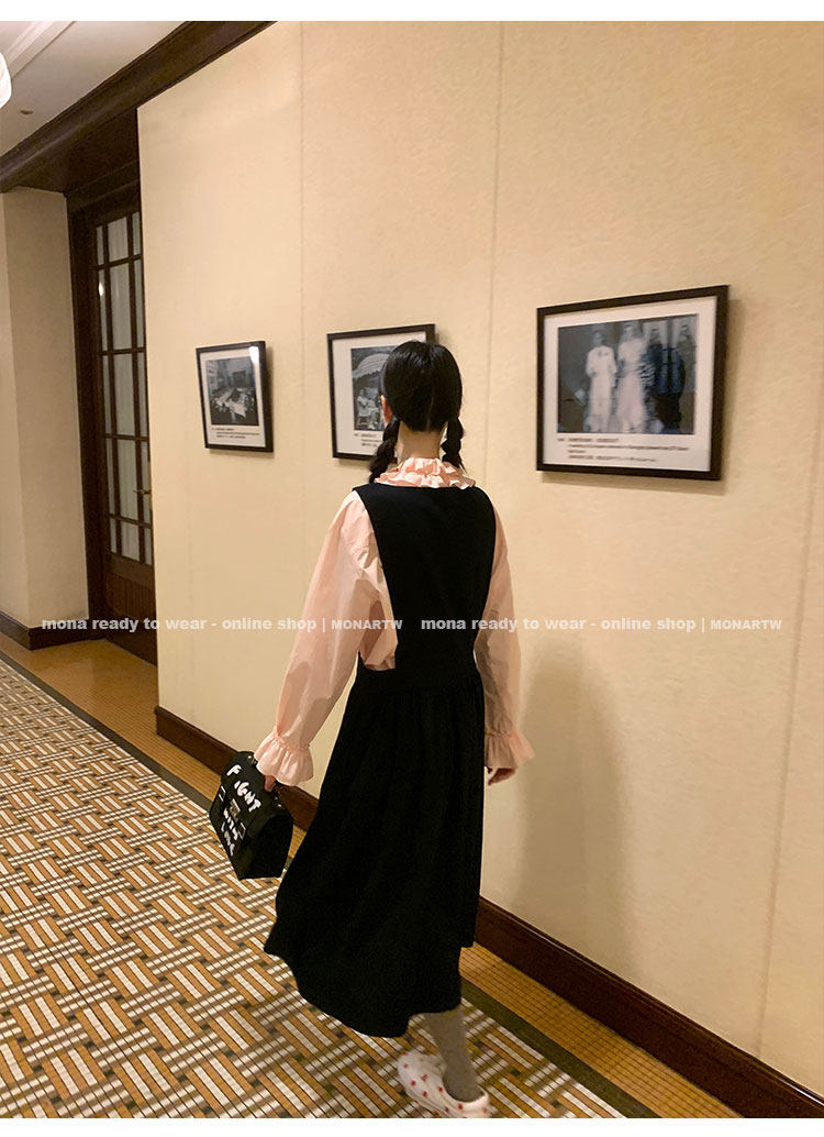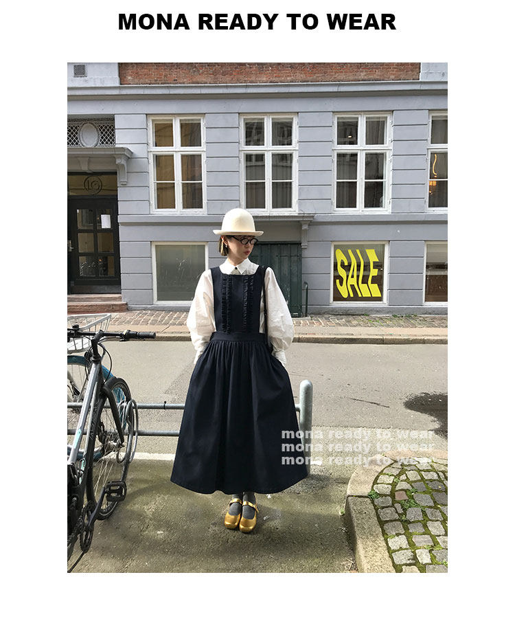 背带裙上半部分结合复合工艺,注入结构感,平顺不臃肿