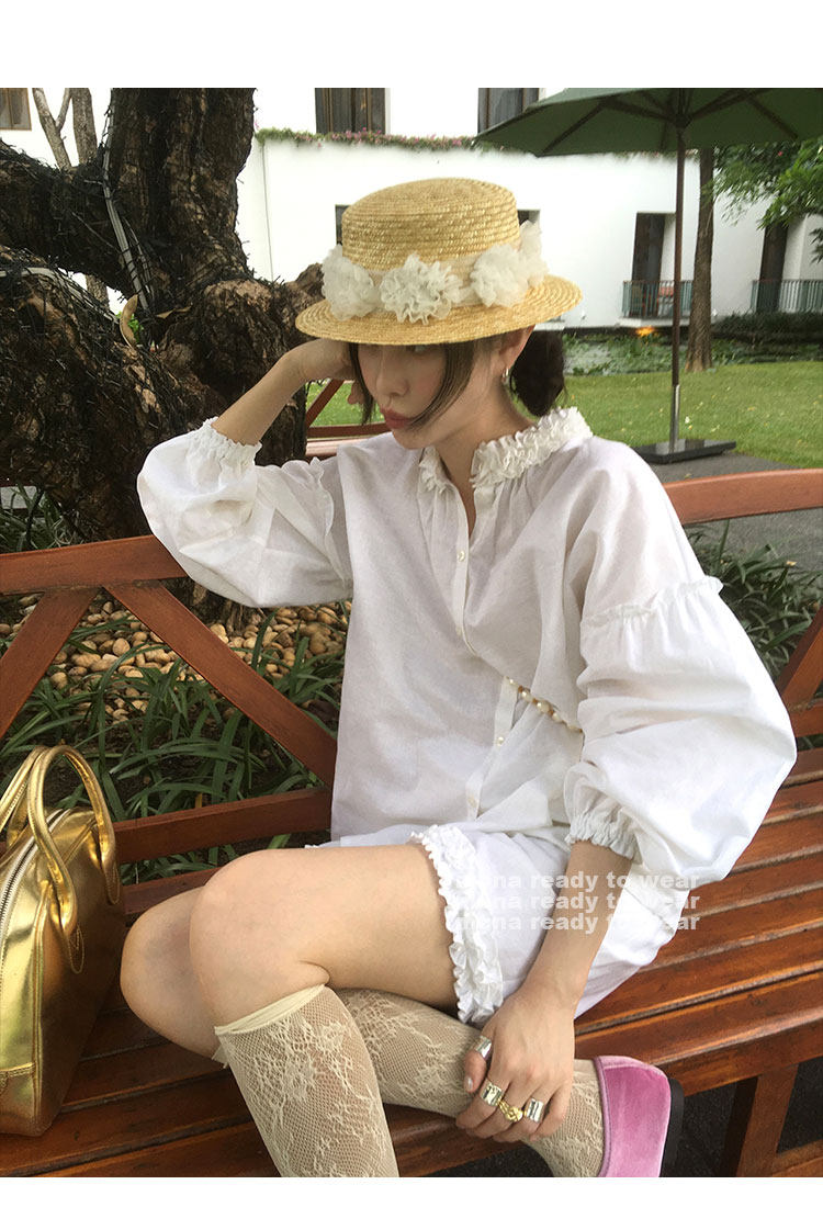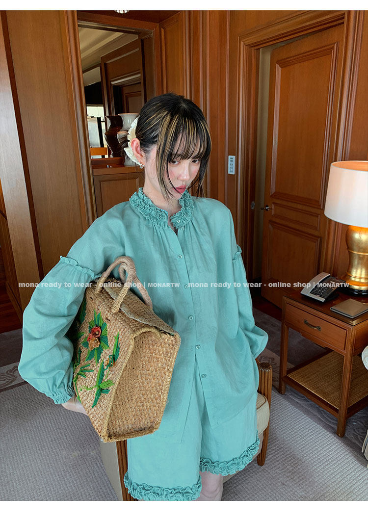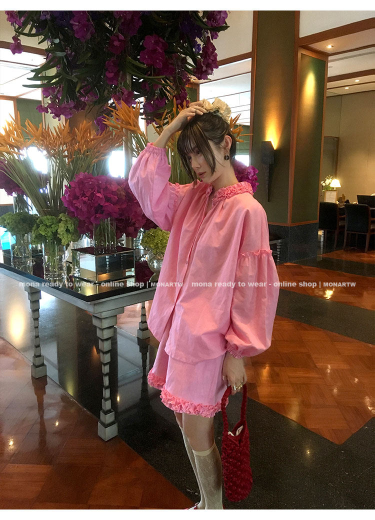 以双层紧密的荷叶边堆叠出柔软而立体的小立领