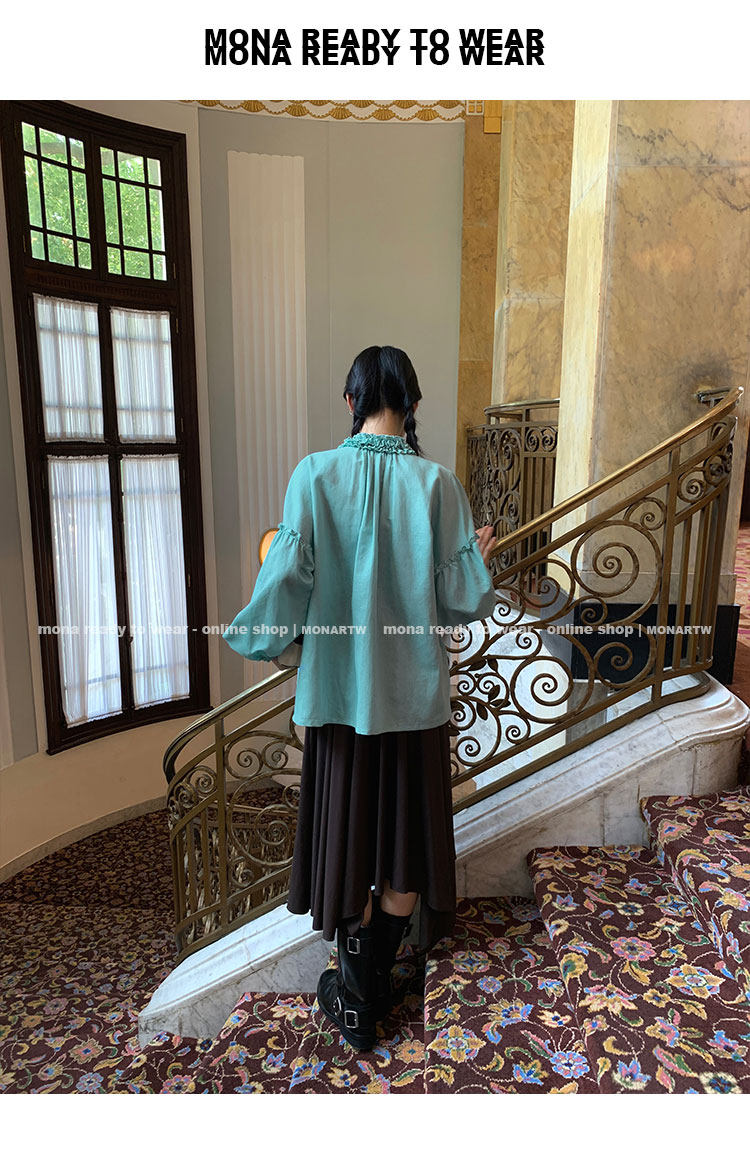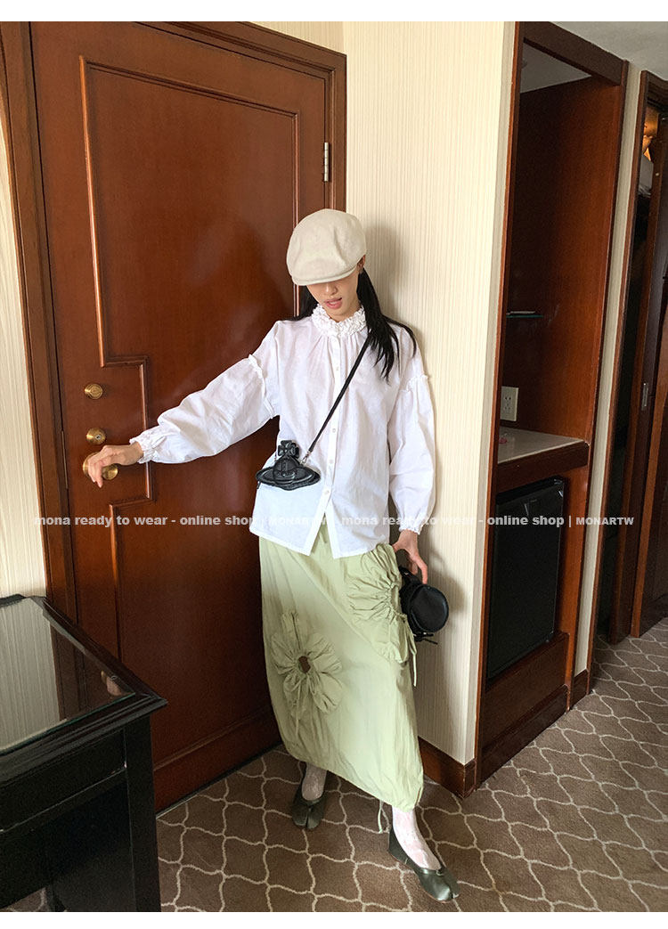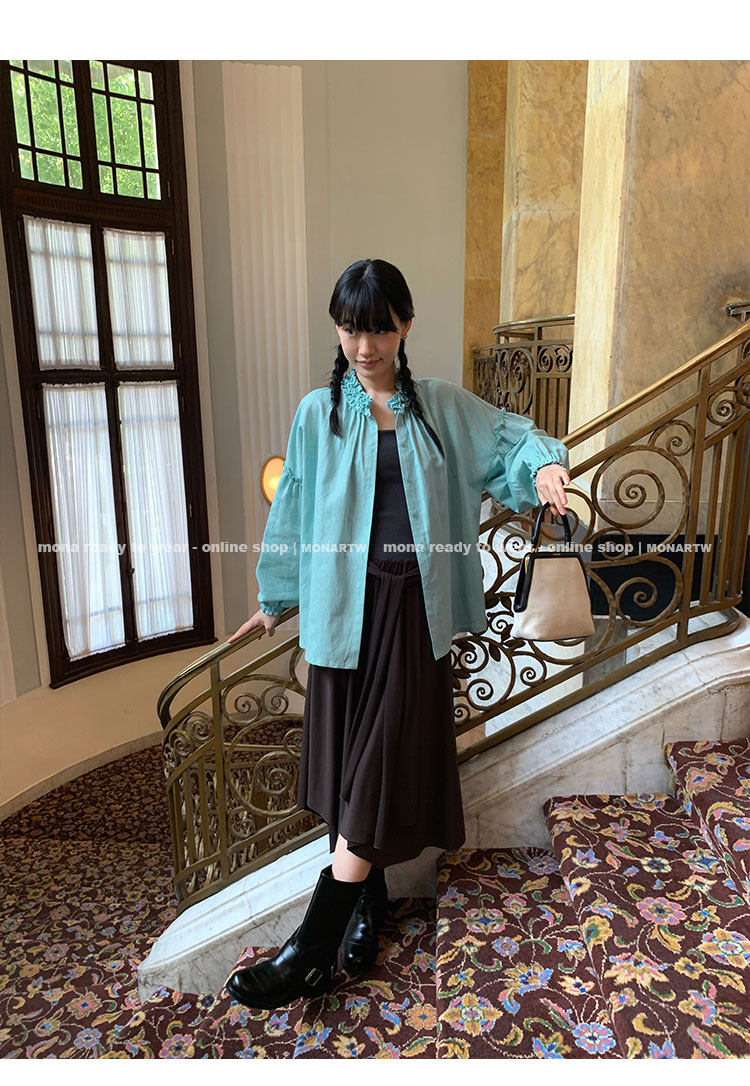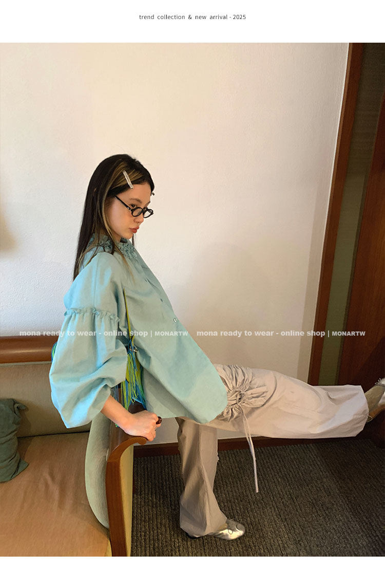 宽松H廓形衬衣,立领设计,汲取了古典拉夫领的设计点
