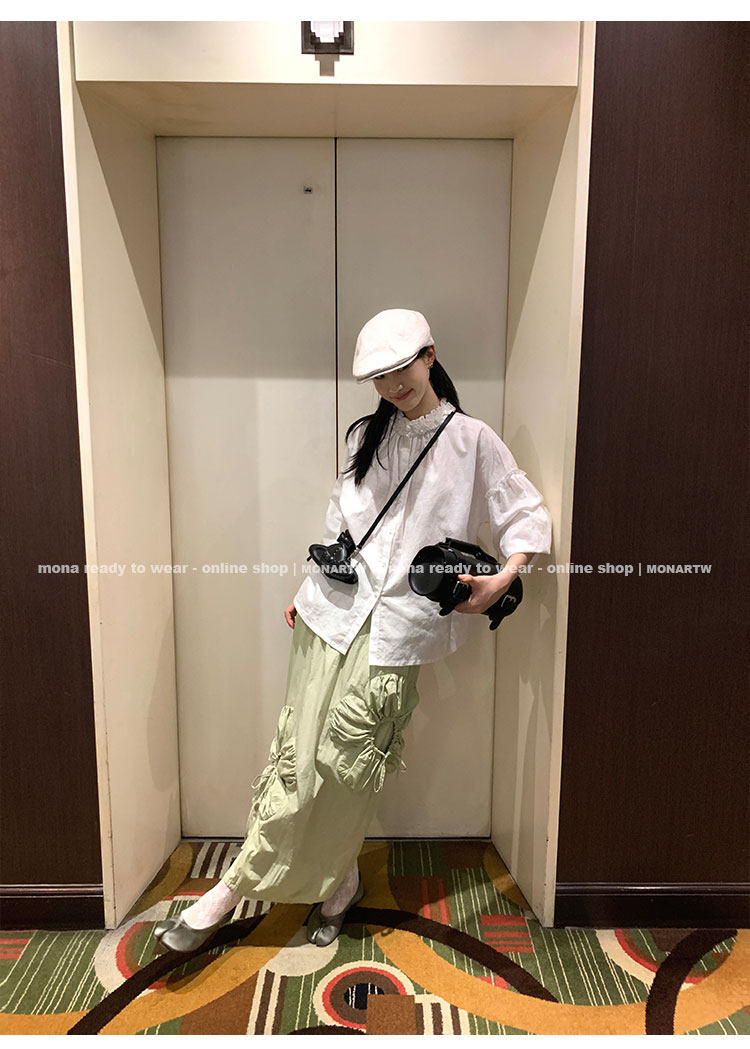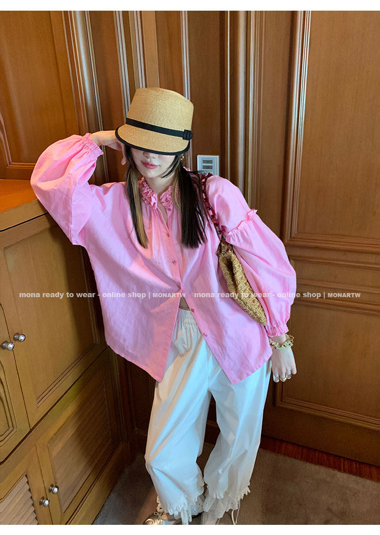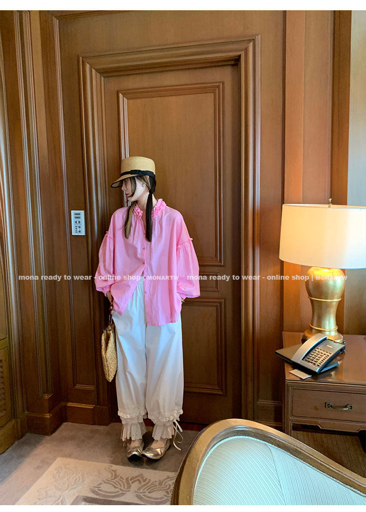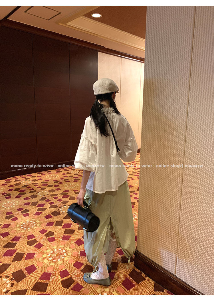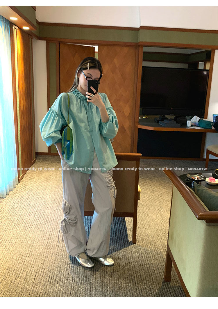 宽松H廓形衬衣,立领设计,汲取了古典拉夫领的设计点