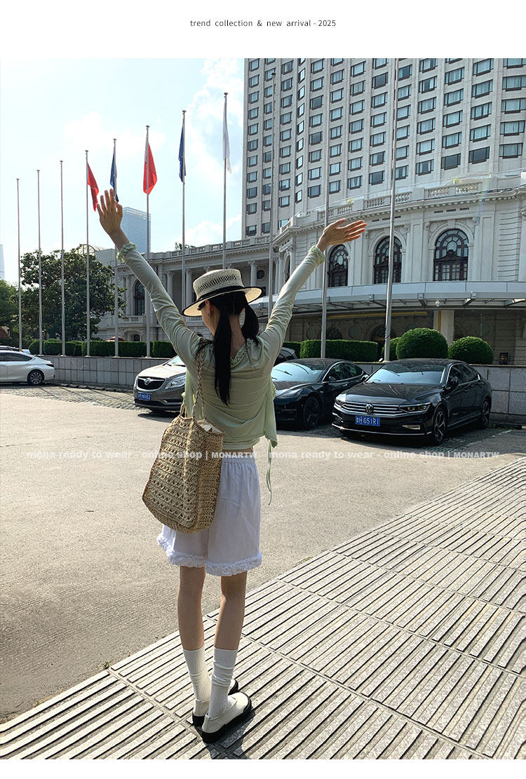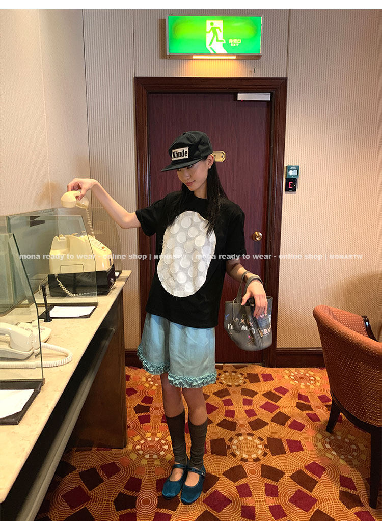 下摆一圈木耳边抽褶设计,与整体大身相呼应,增添造型感