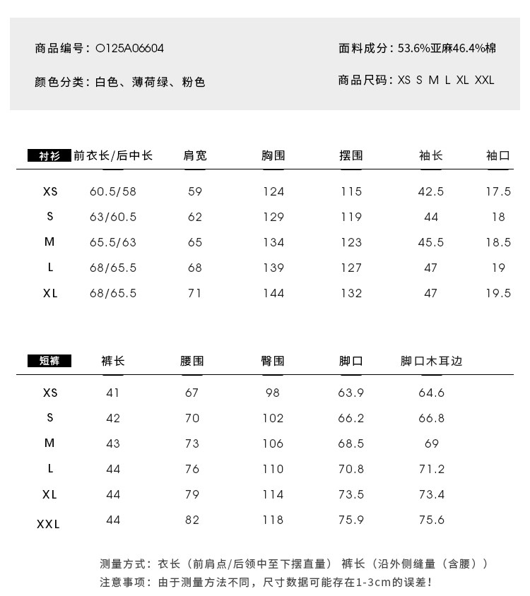| Color classification | Shirt - White Shirt - Mint Green Shirt - Pink Shorts - White Shorts - Mint Green Shorts - Pink |