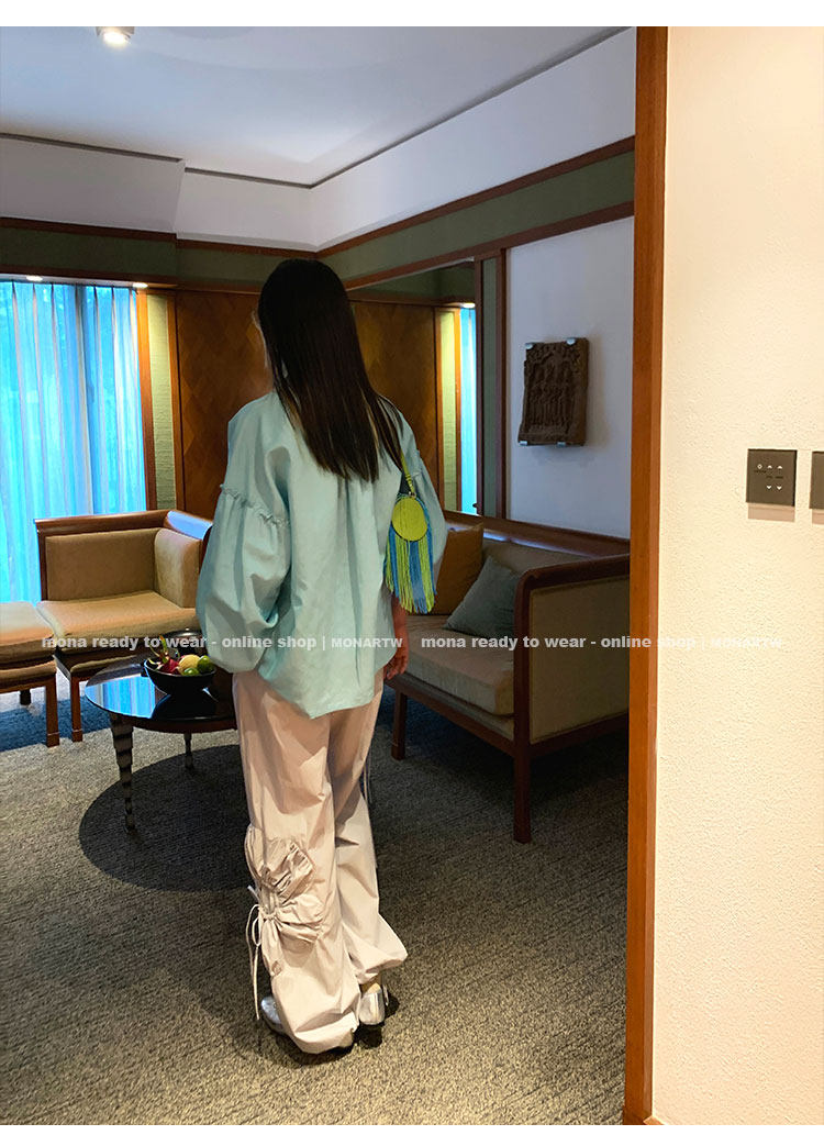 袖口牛筋抽褶使袖身加持从上到下贯通的褶皱