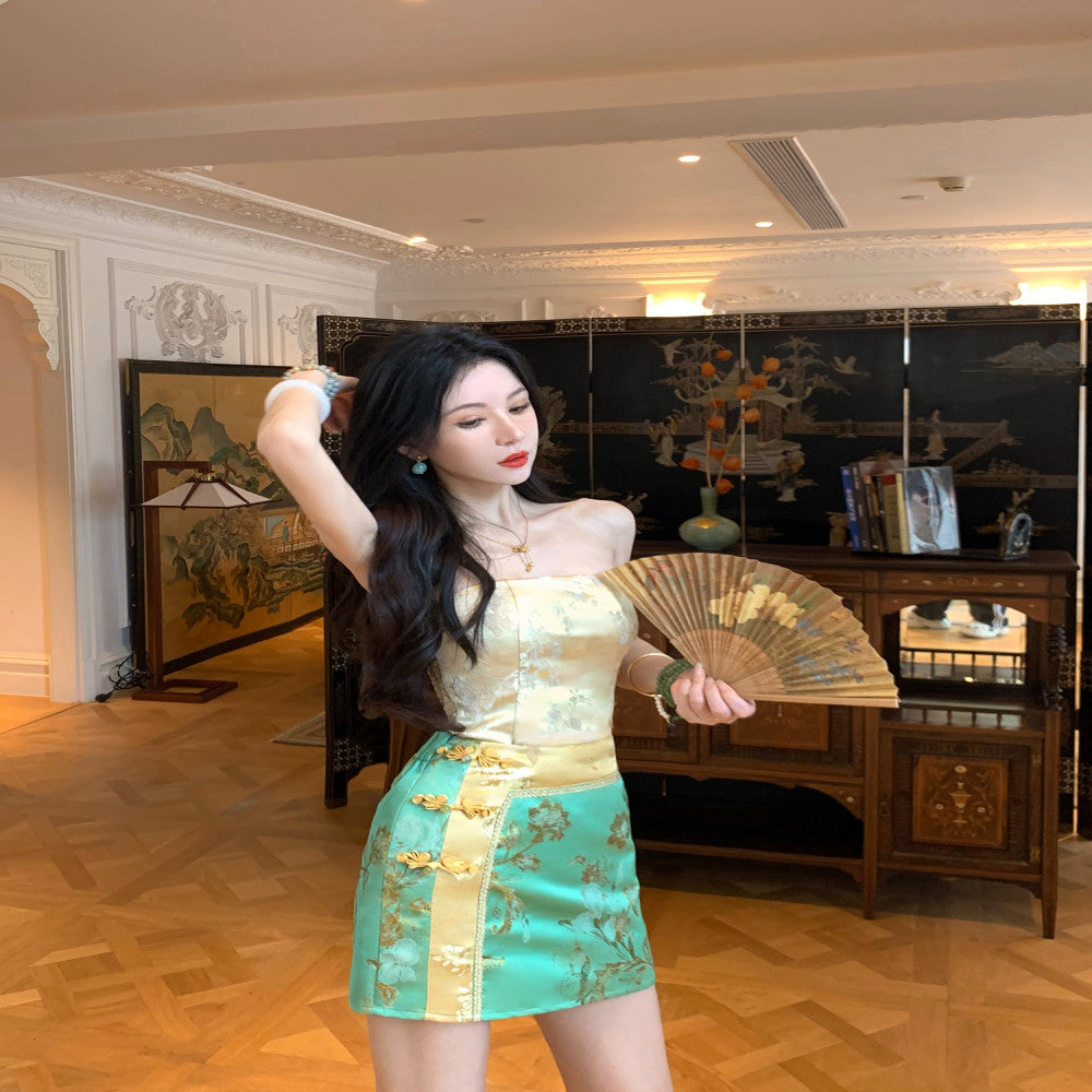 ASAYA-3793: Floating Green Gilded Jacquard Top 🌿