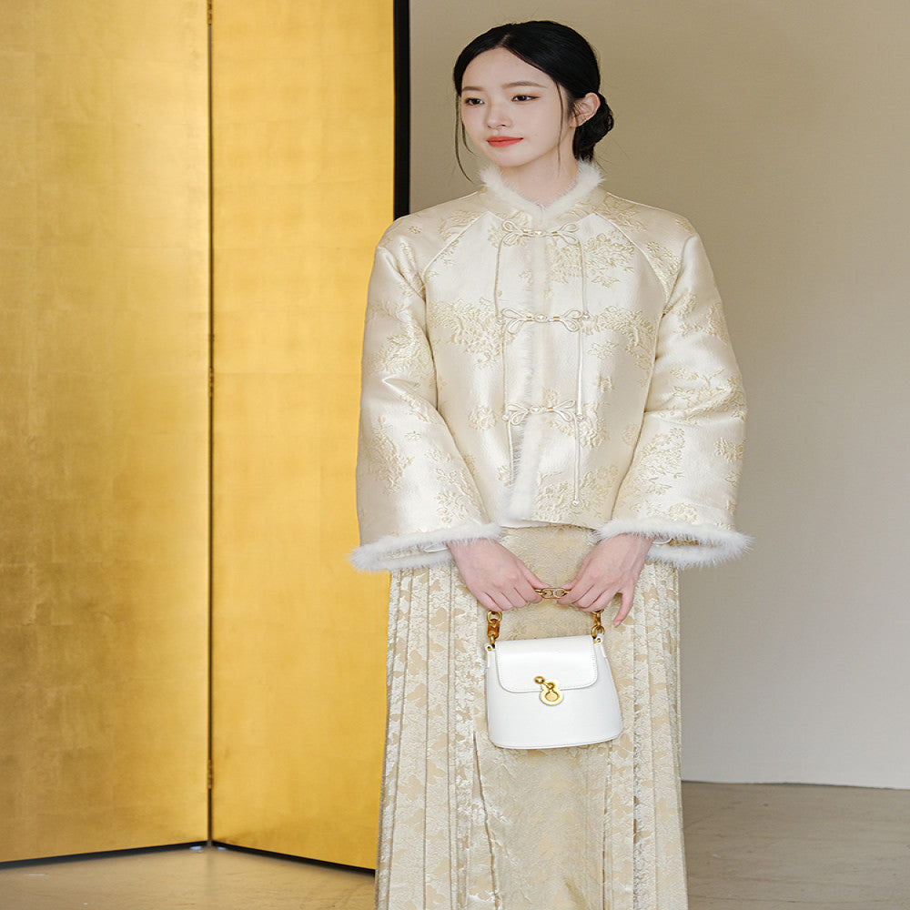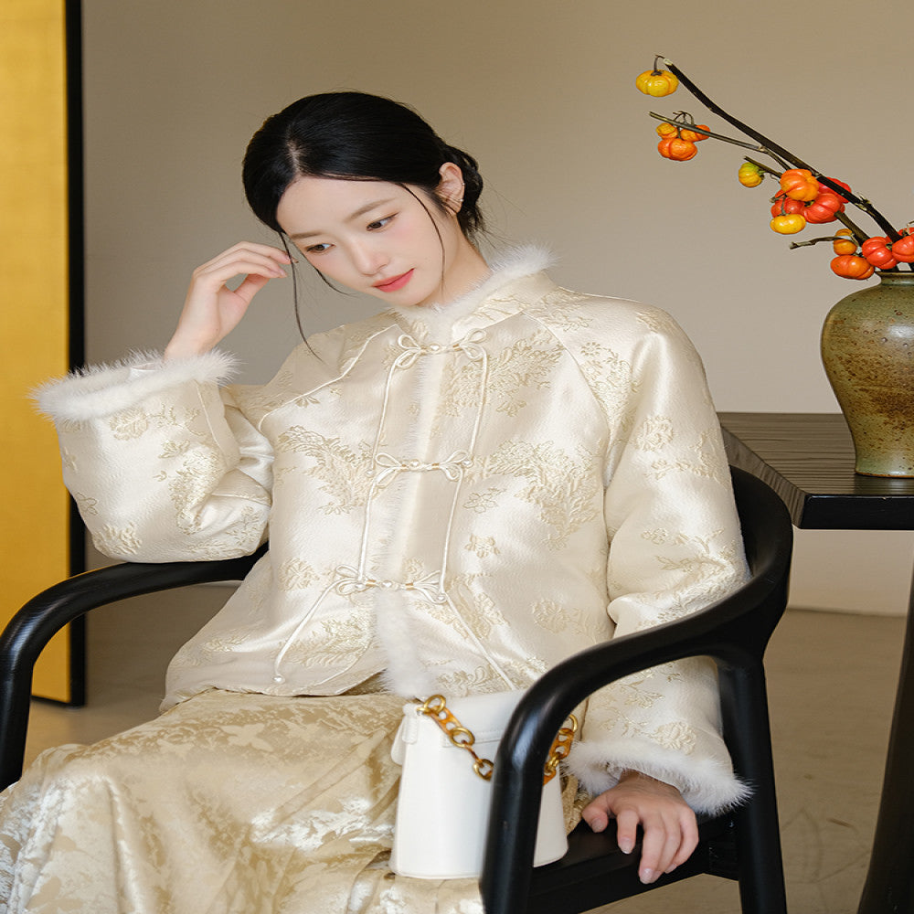 ASAYA2665 Winter Improved Tang Suit Young Style Tea Clothes Disc Button Jacquard Cotton Coat