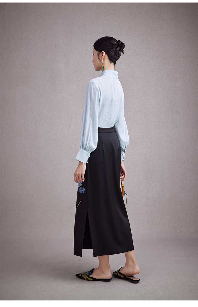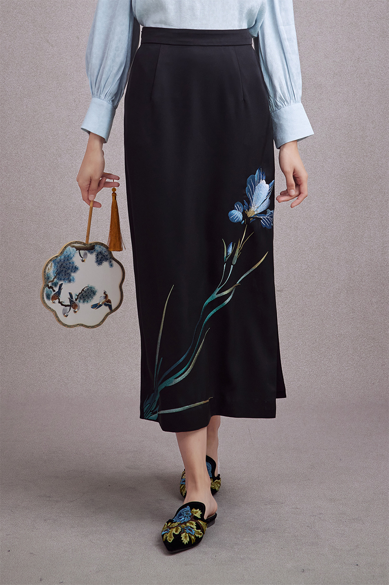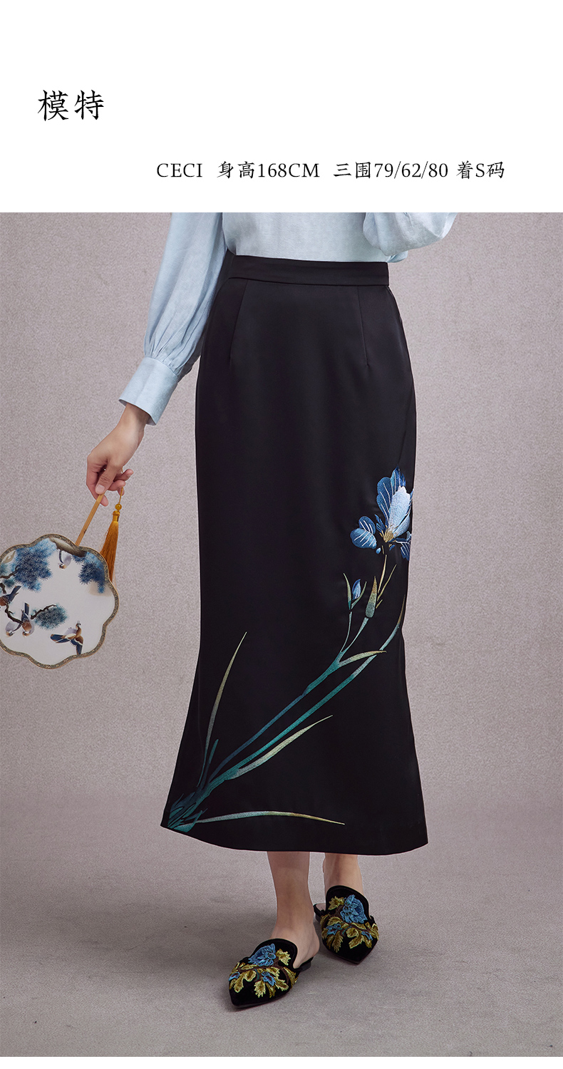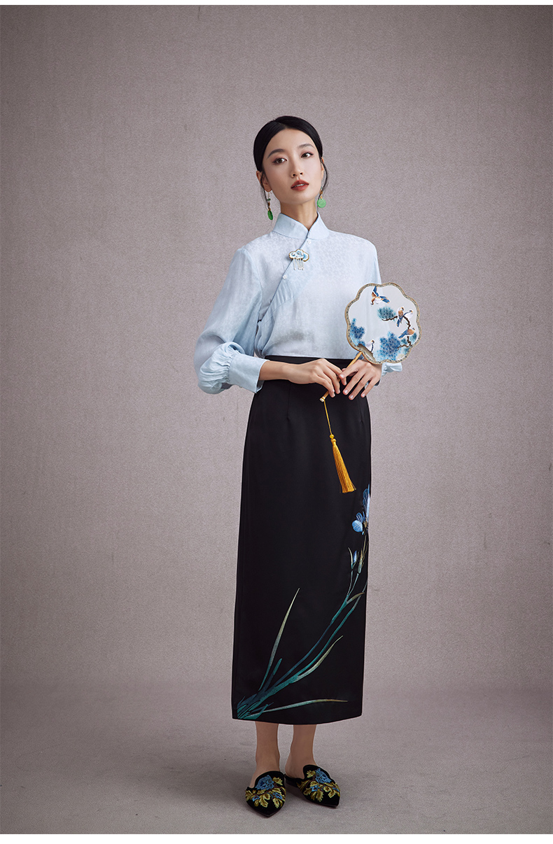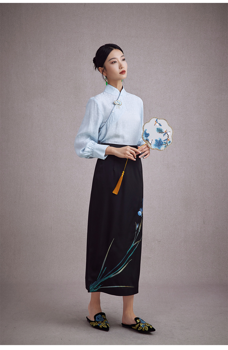ASAYA2724 New Chinese Style Orchid Embroidery Daily Chinese Style Cheongsam Style Side Split Skirt