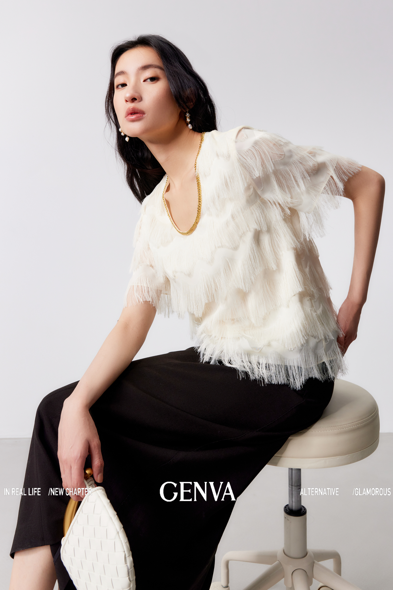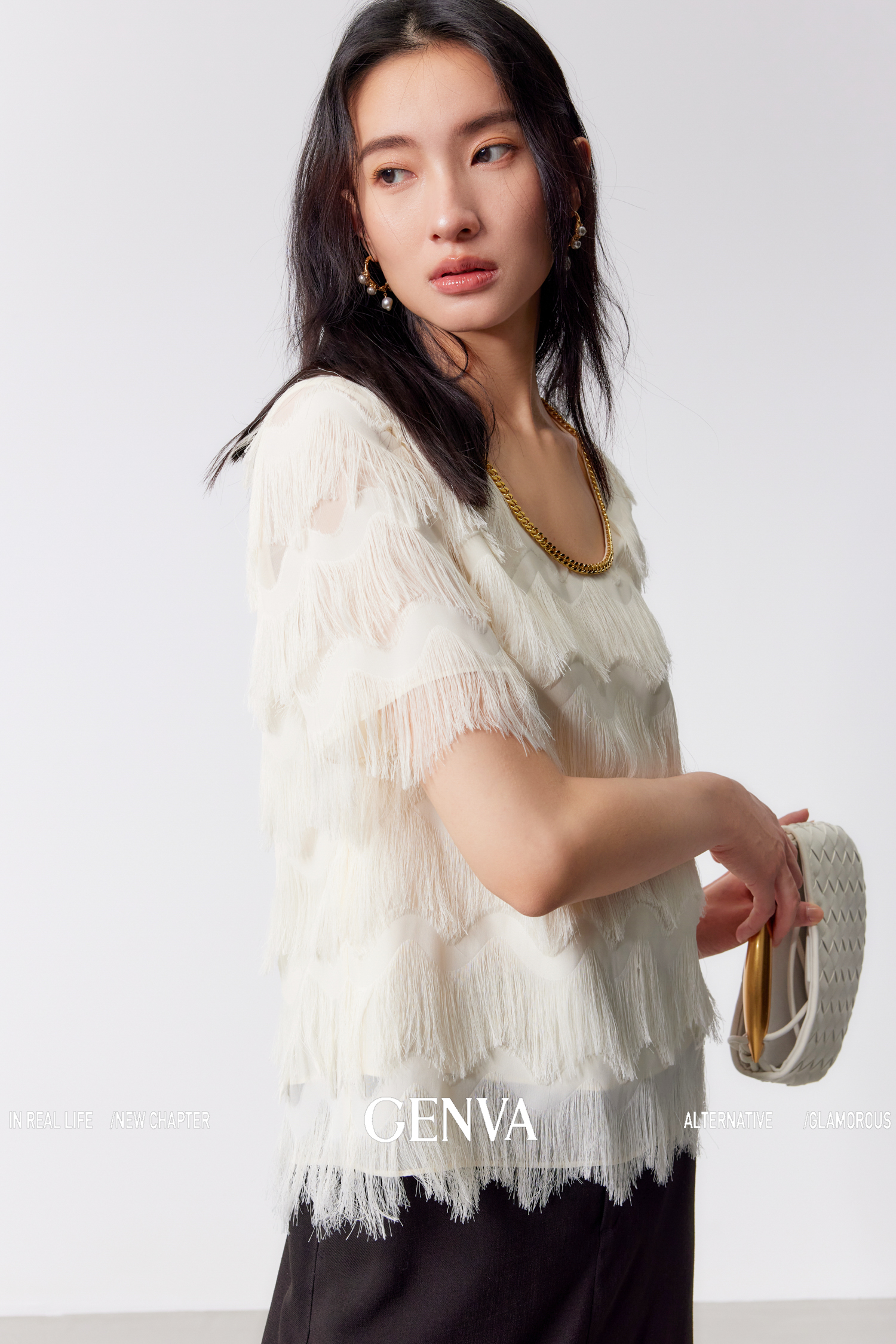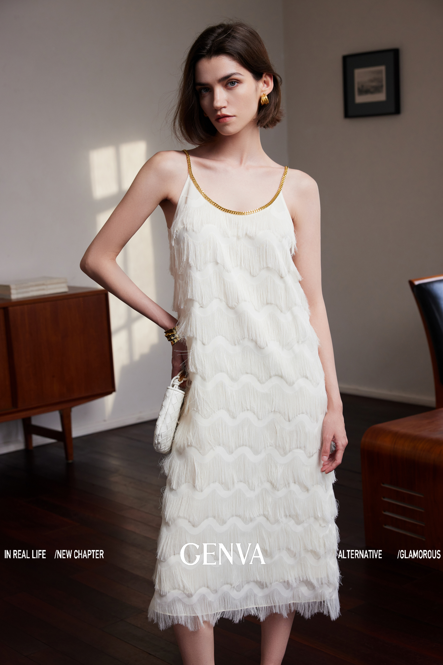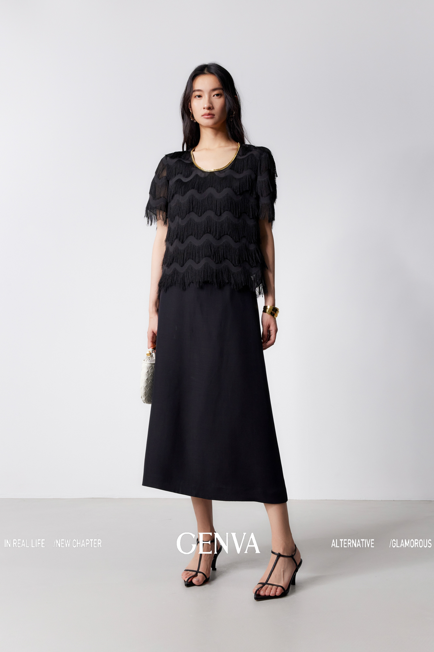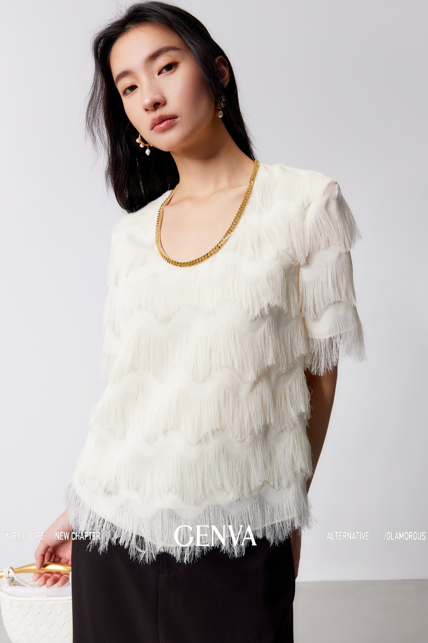 流光溢彩 极致奢美流苏链条连衣裙+T恤