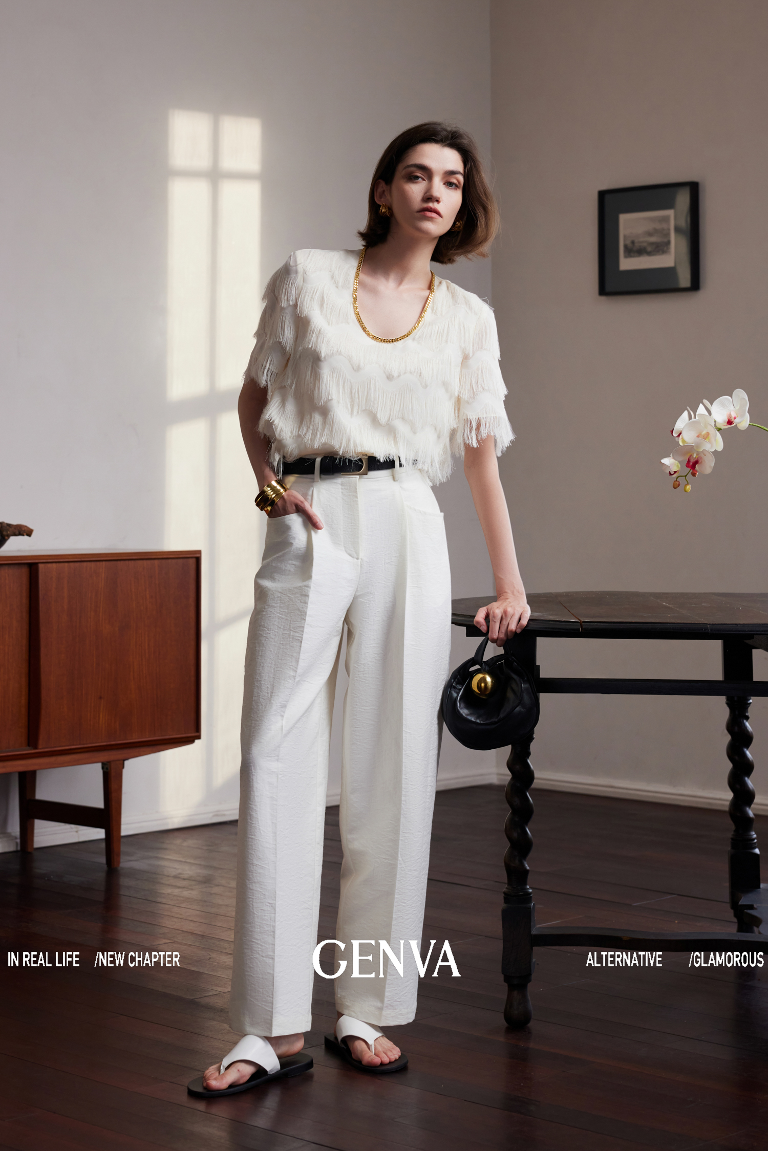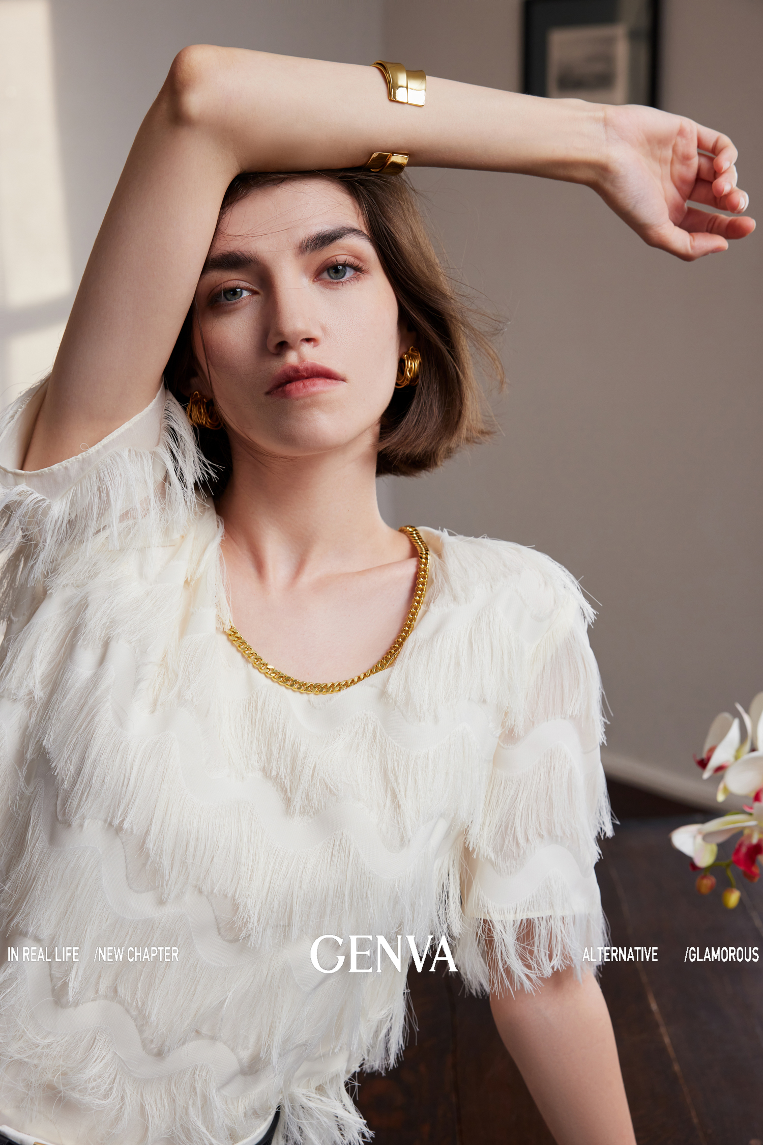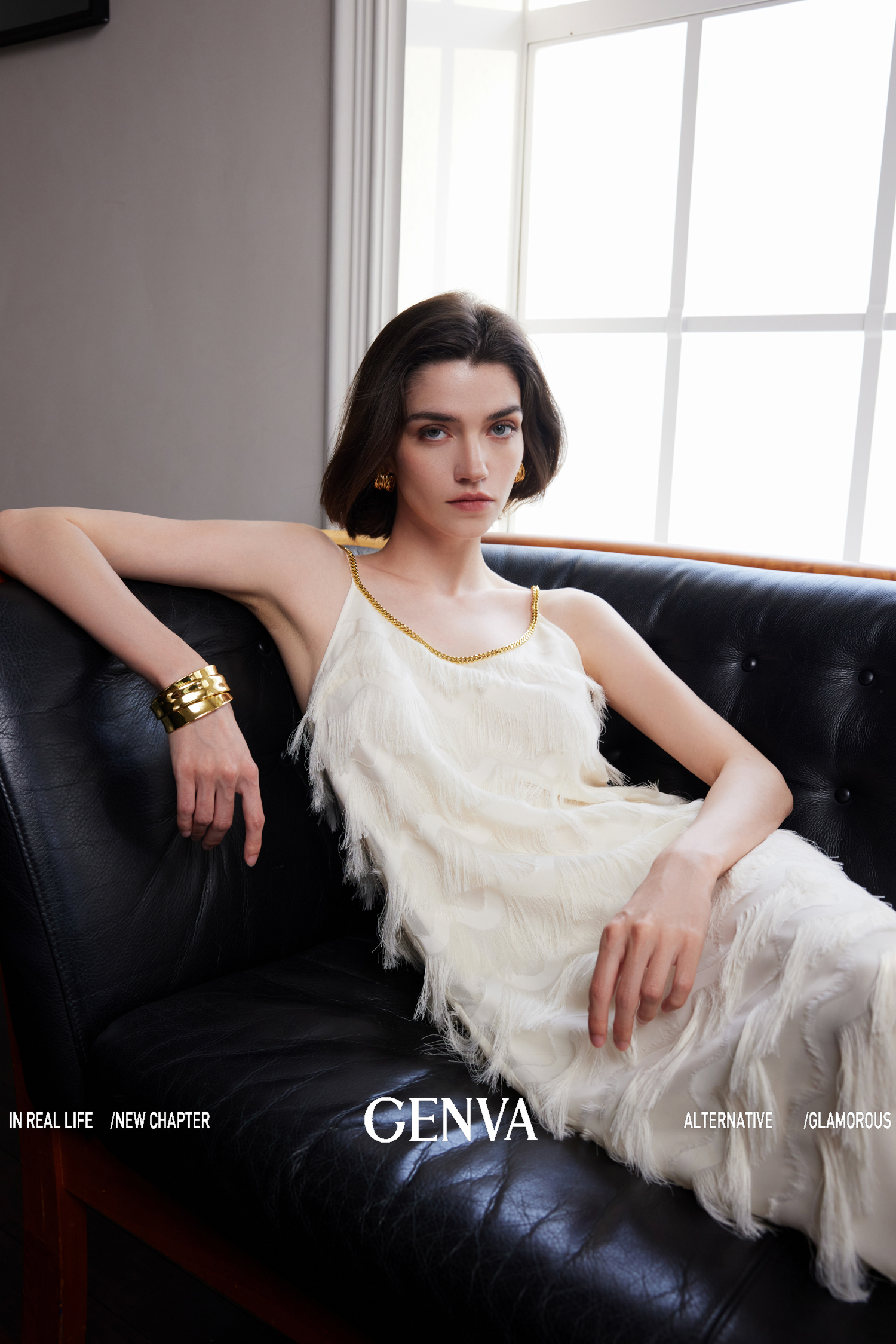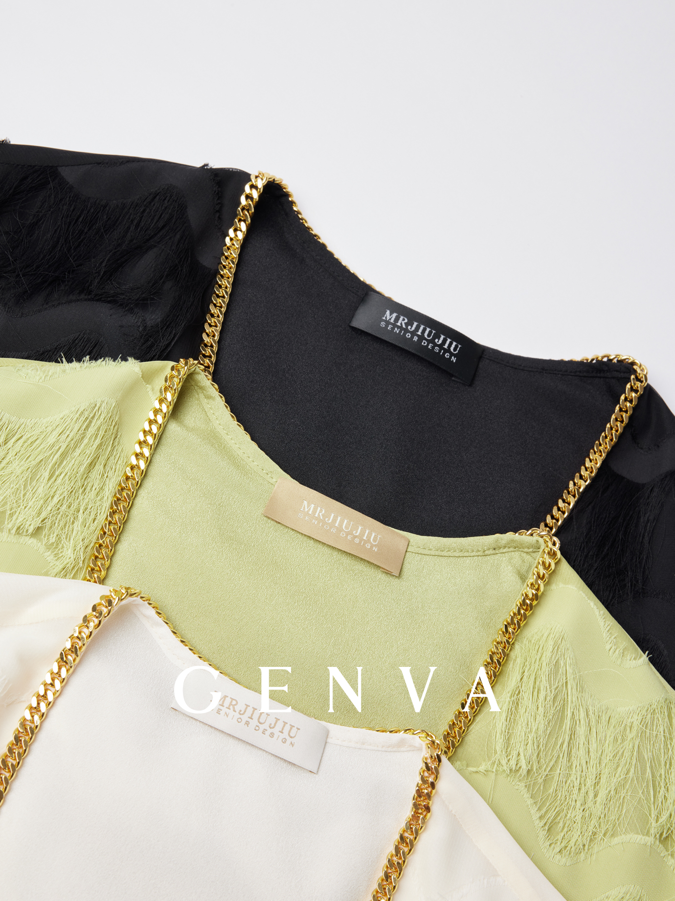 獨家定制真金色金链,提升整体服装质感 |