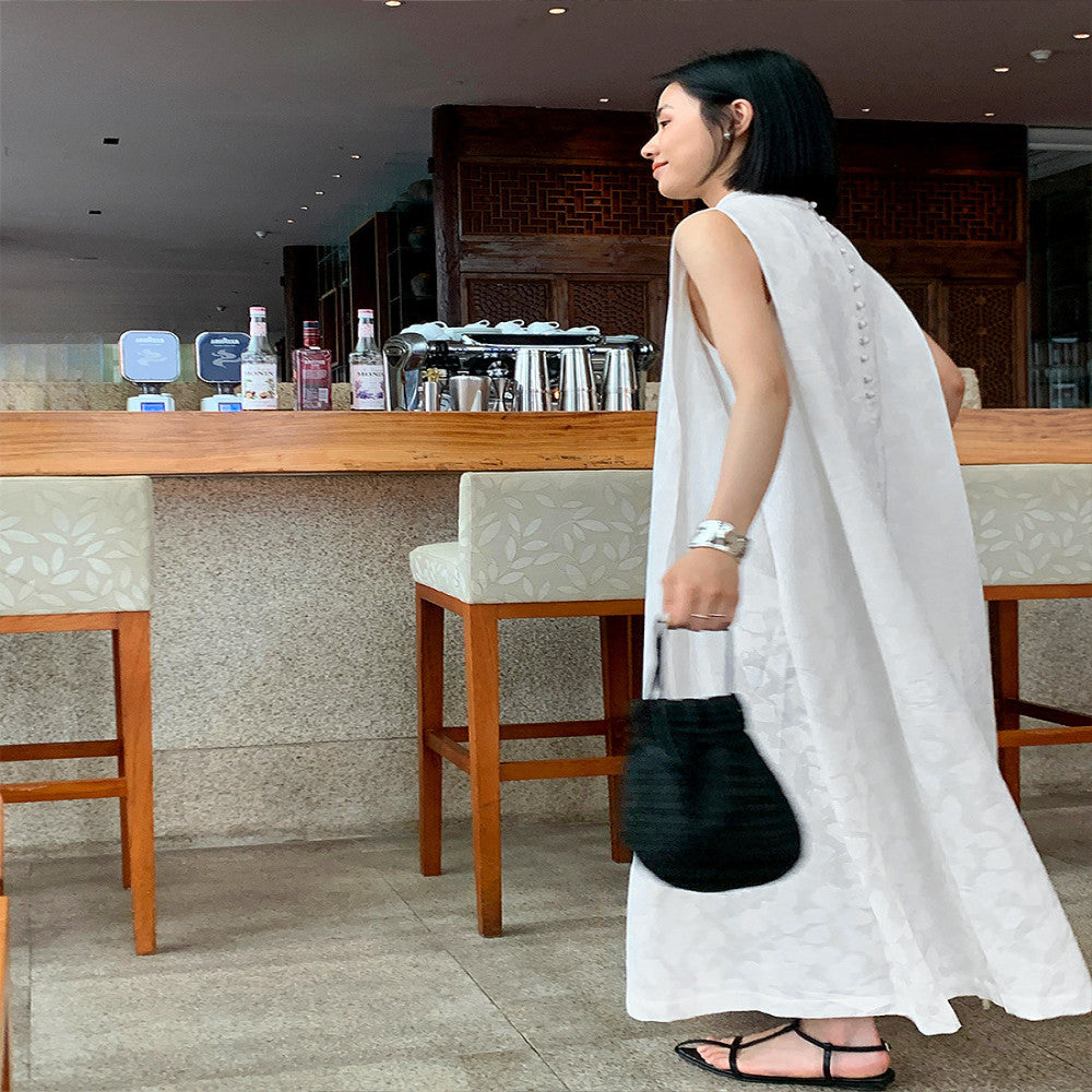 ASAYA4476 - White Jacquard Sleeveless Long Dress 🍃👗