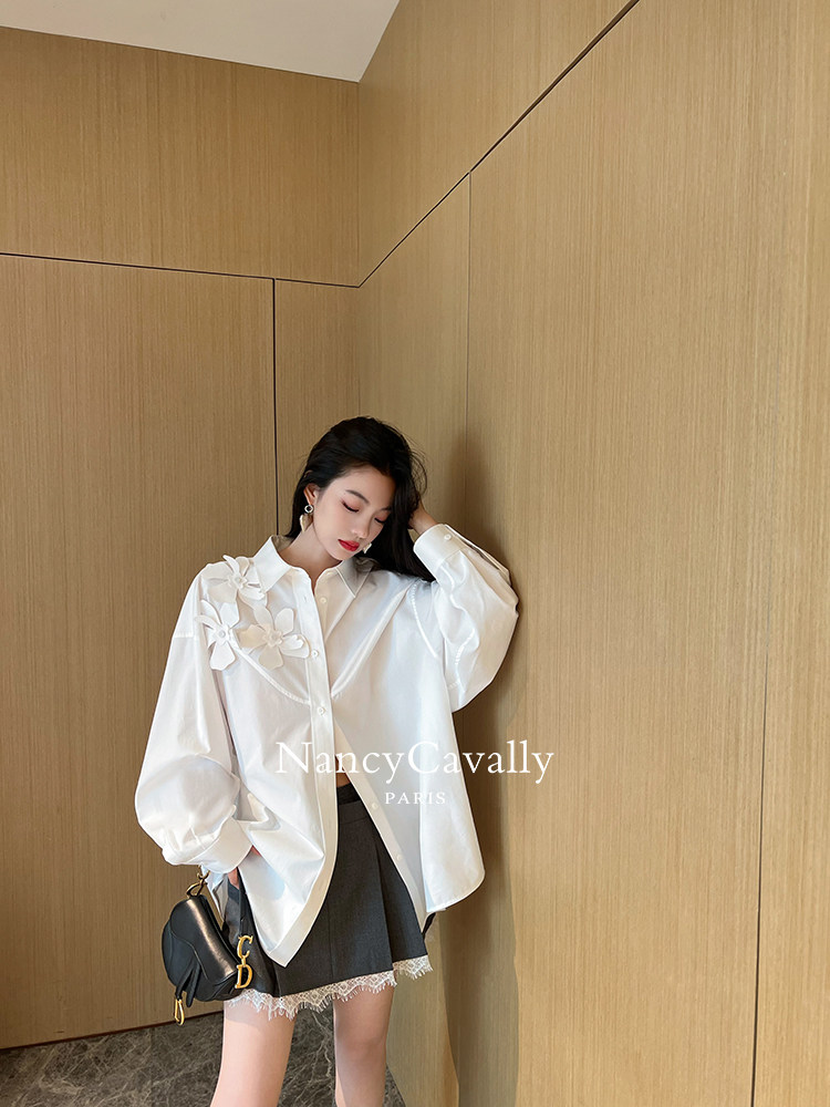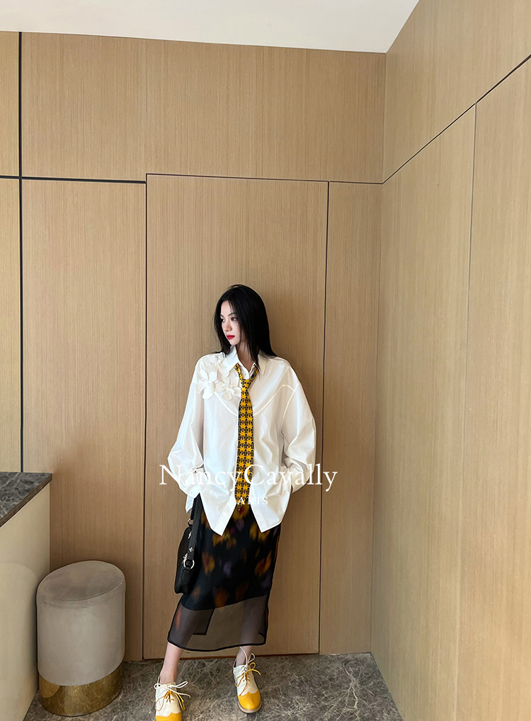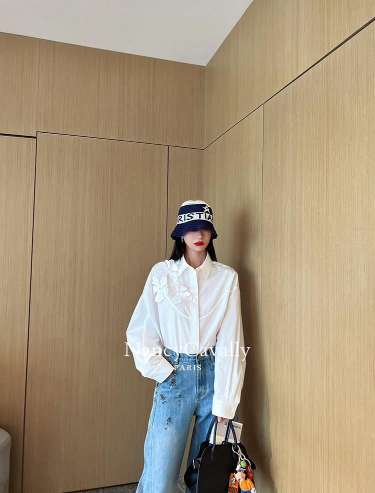 ASAYA5469 – Floral Statement Cotton Shirt 🌼🤍
