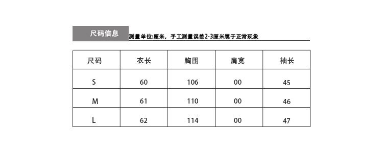 | Color classification | Black shirt (S) Black shirt (M) Black shirt (L) |