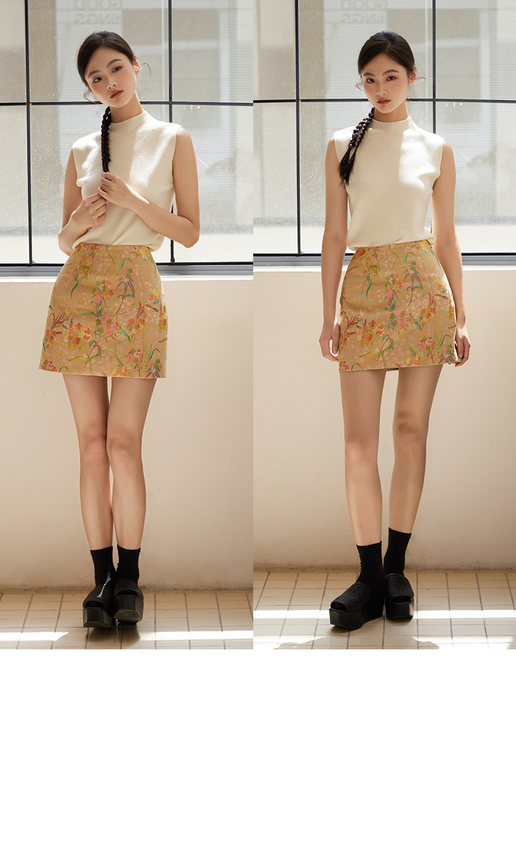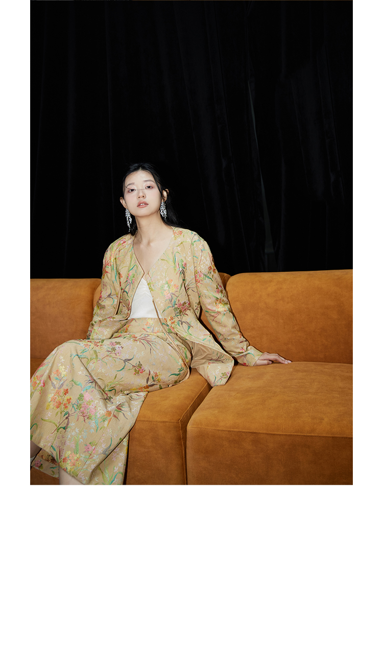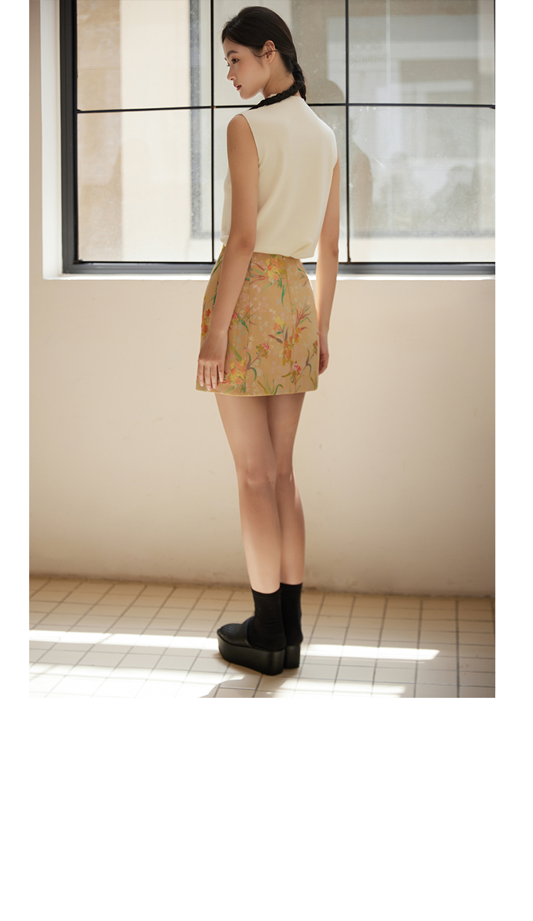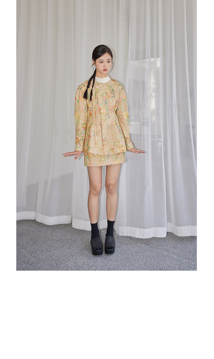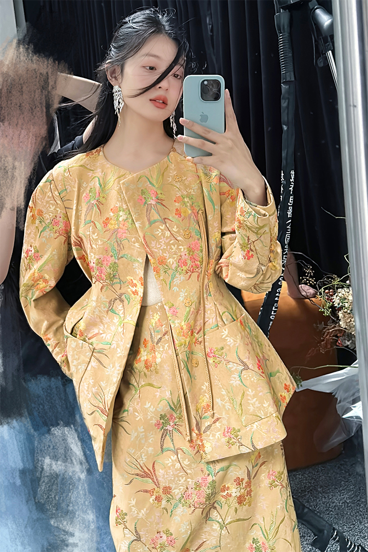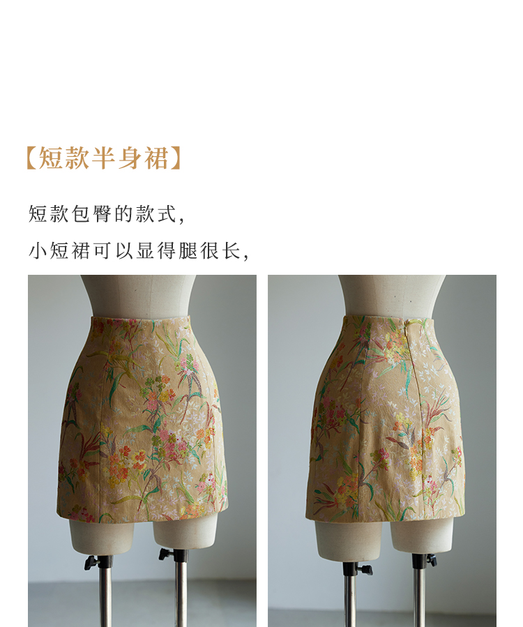 ASAYA2529 New Chinese style flower and bird painting jacquard fabric skirt