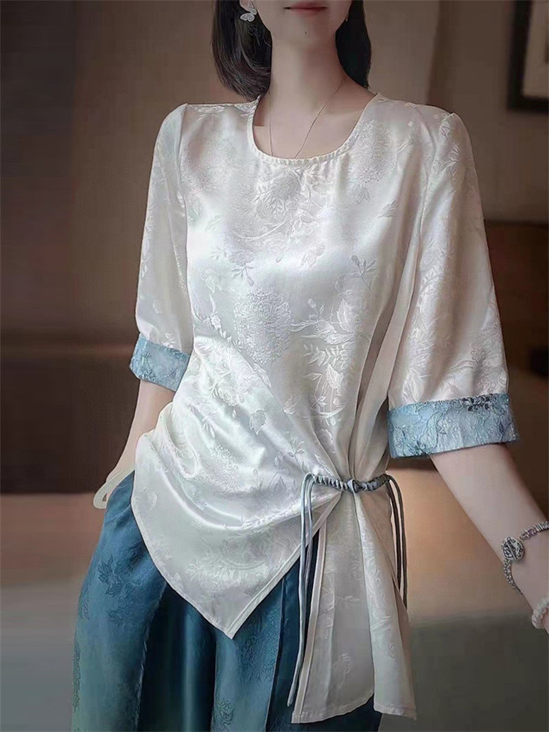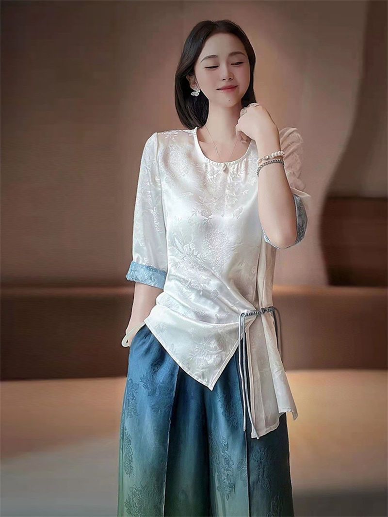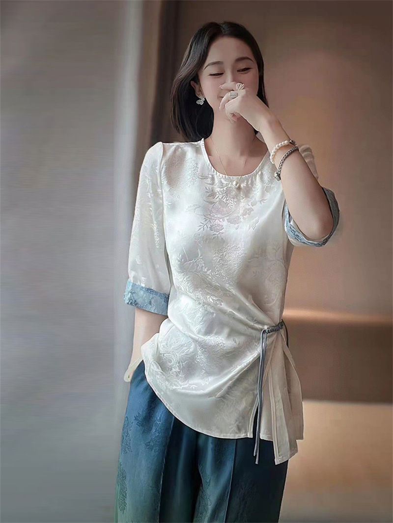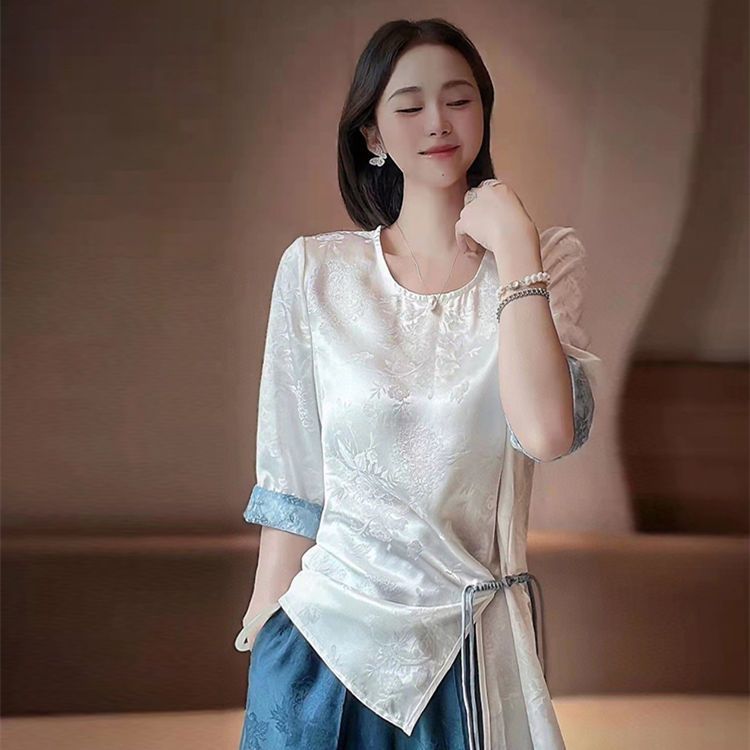 Asaya723 - Trendy Chinese style button-up silk shirt