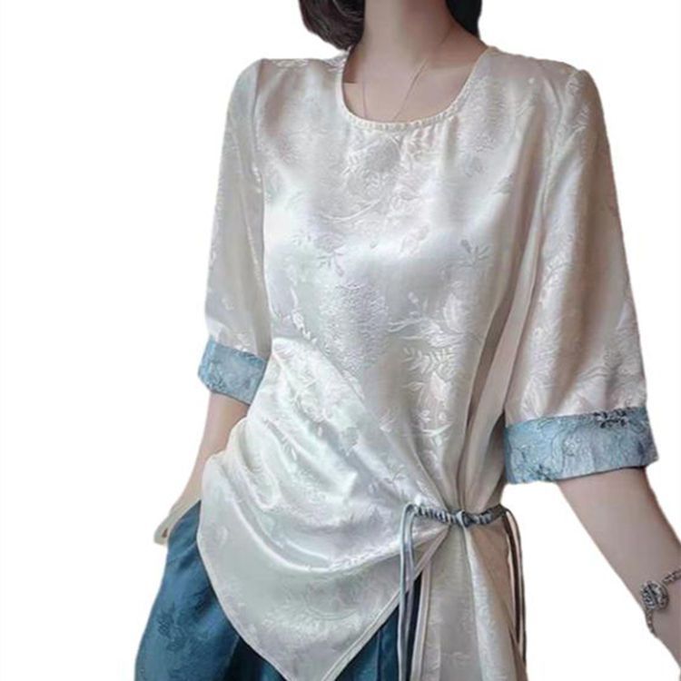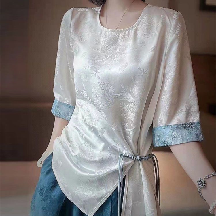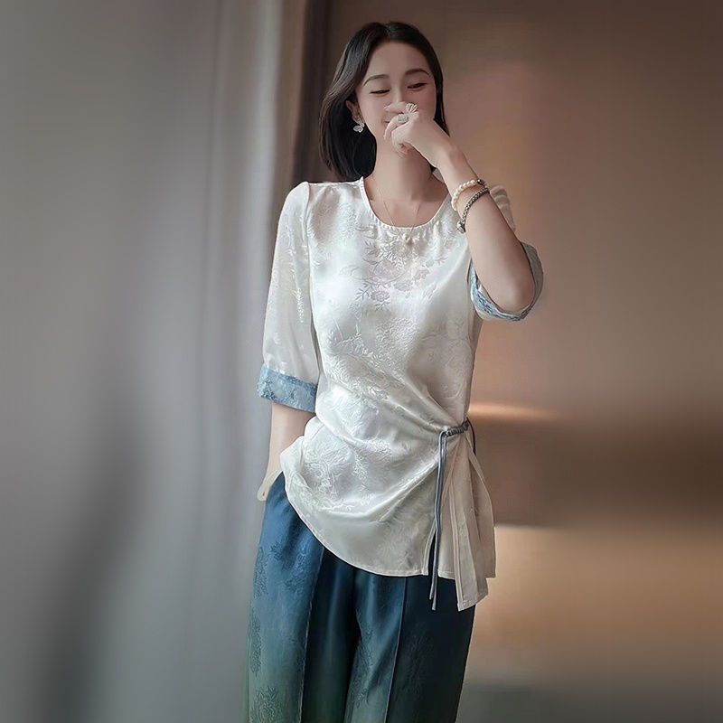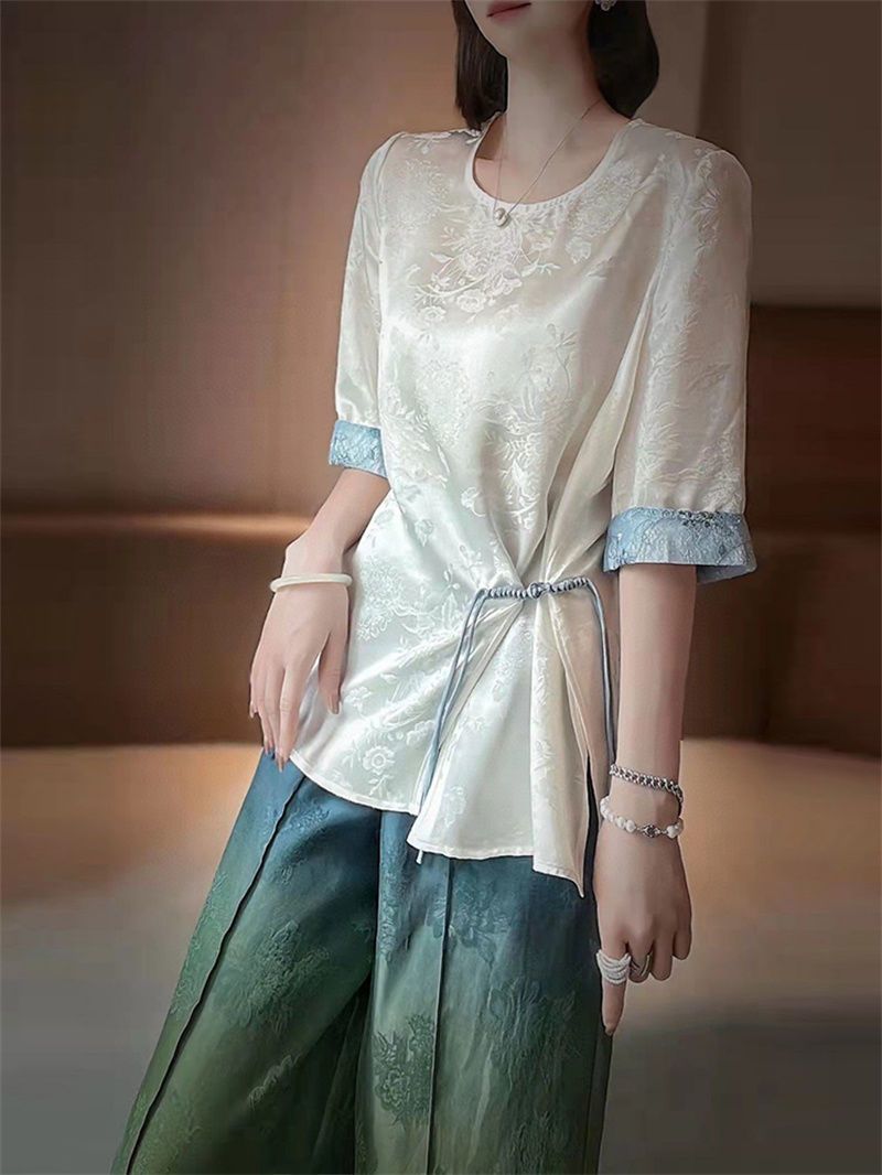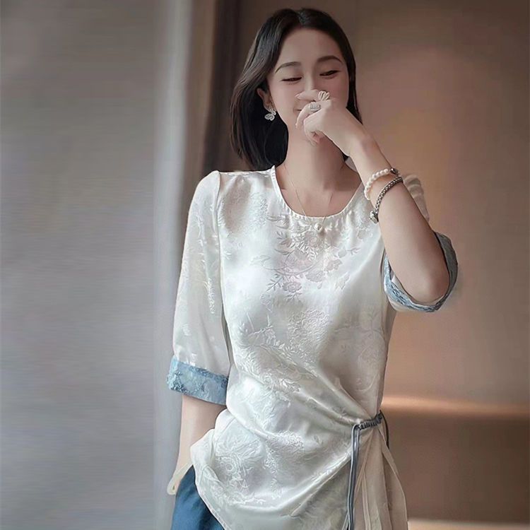 Asaya723 - Trendy Chinese style button-up silk shirt