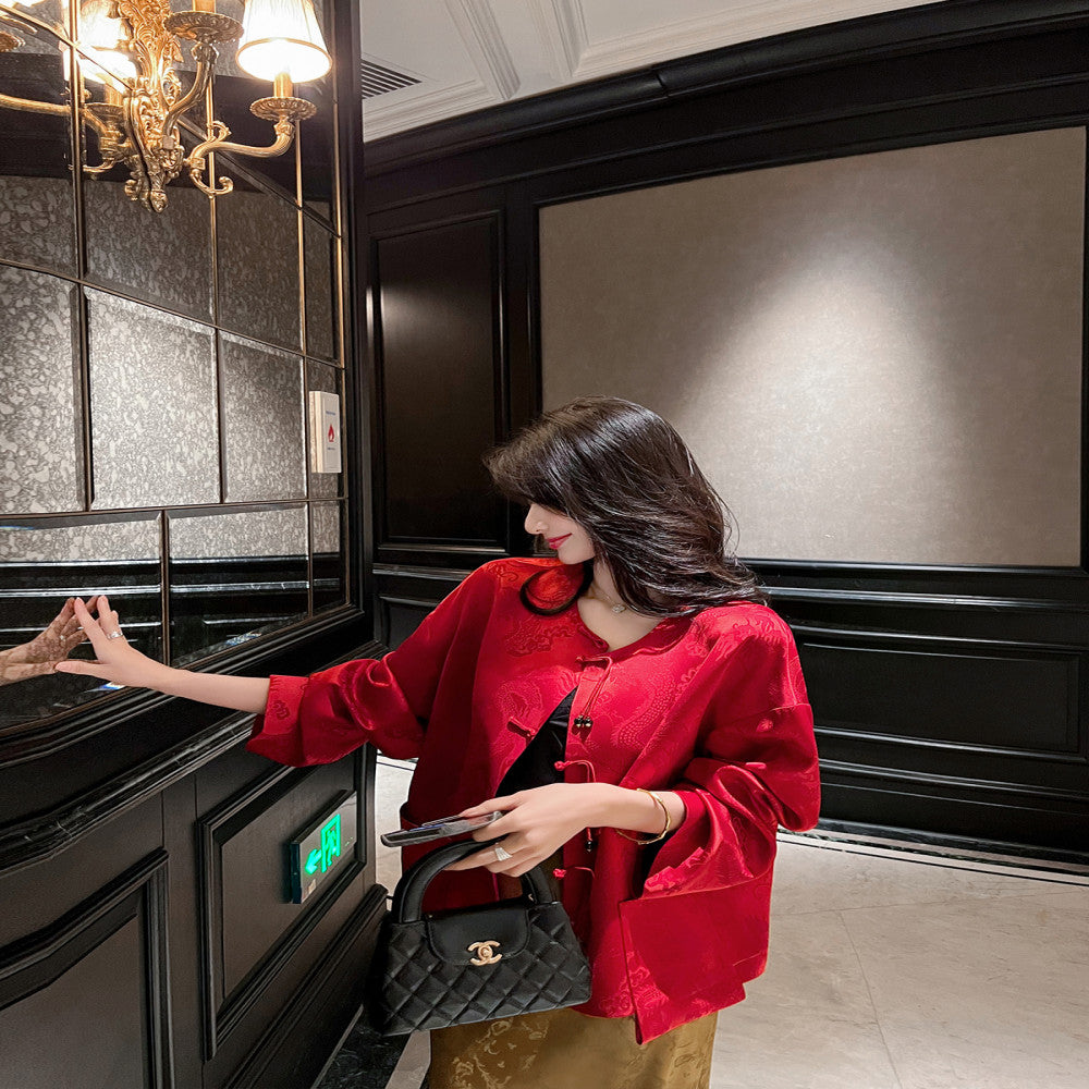 ASAYA3954 - Elegant Red Dragon Tang Jacket ✨