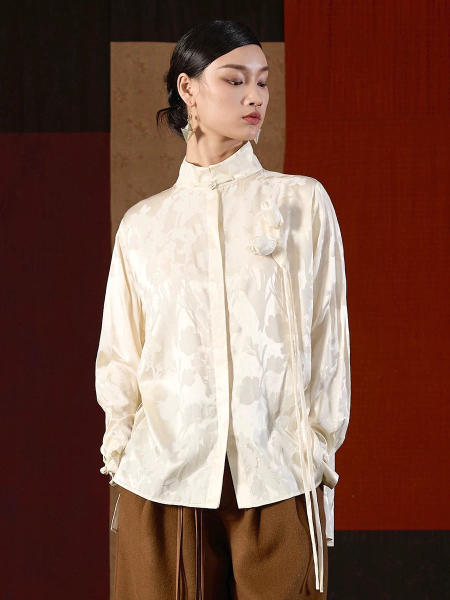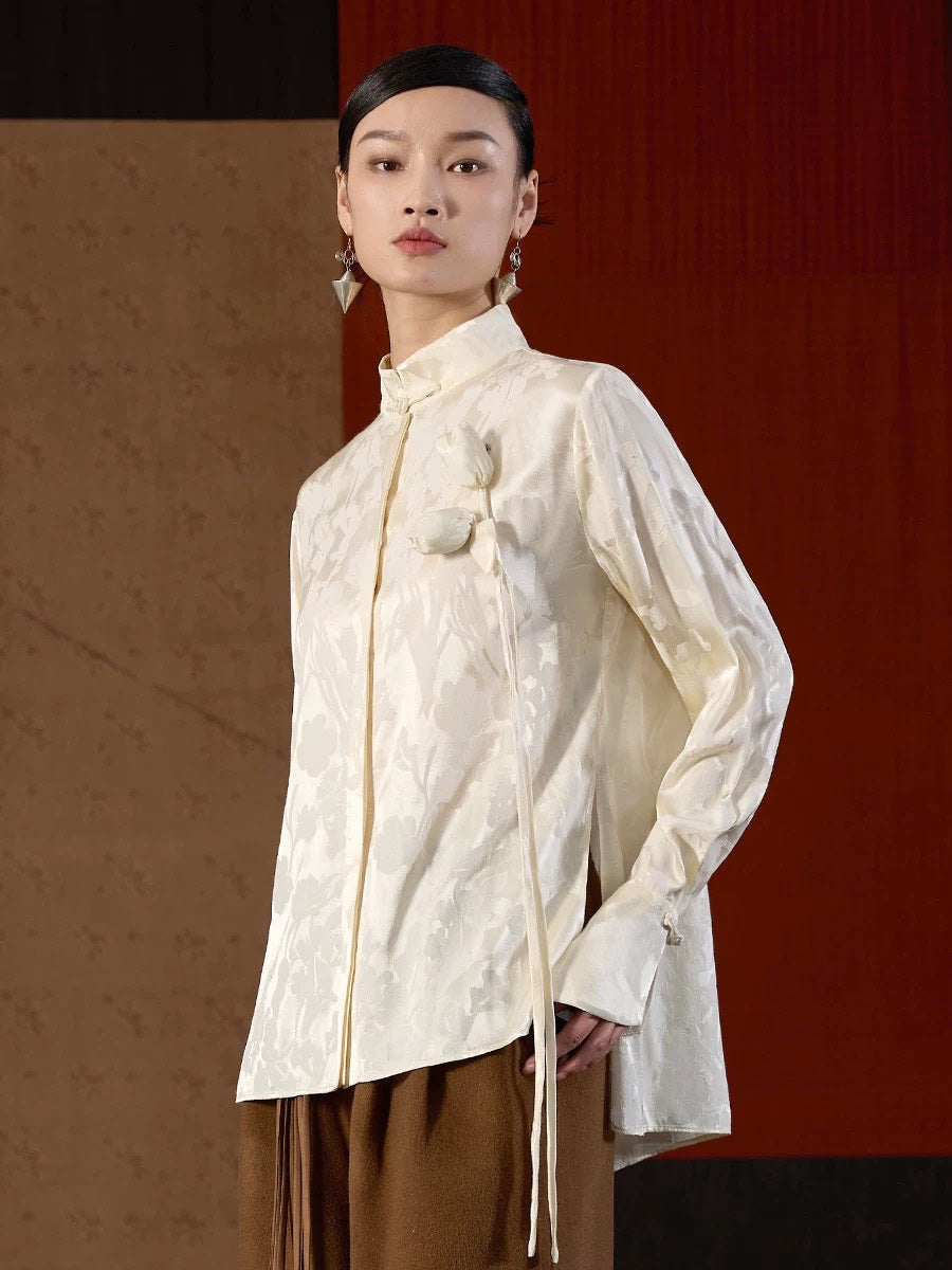 ASAYA4900 – Magnolia Bloom Jacquard Top 🌸✨