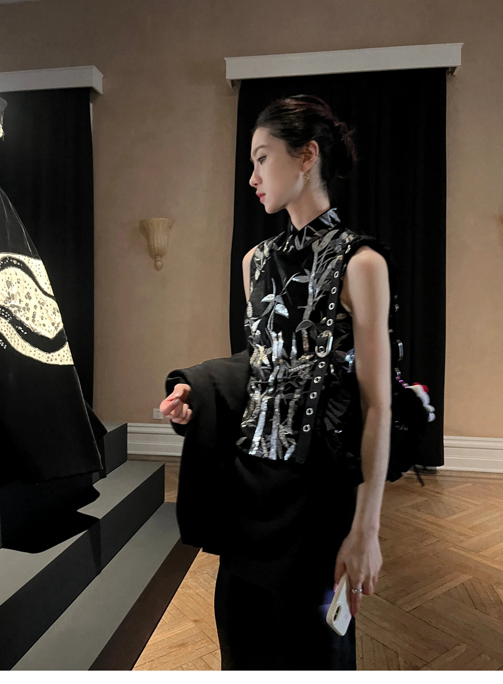 ASAYA5936 – Noir Blossom Cheongsam Vest 🖤✨