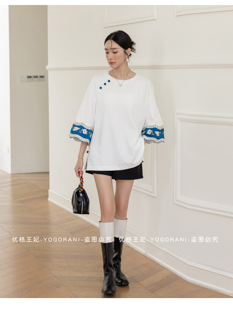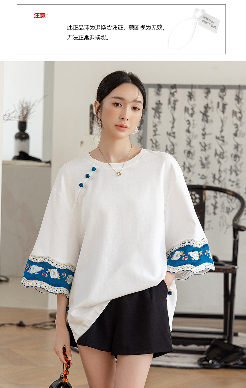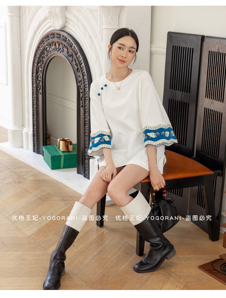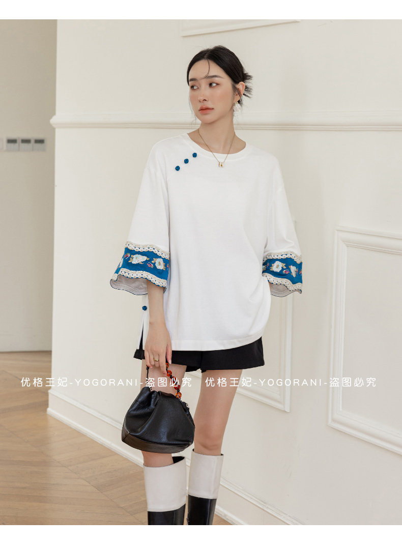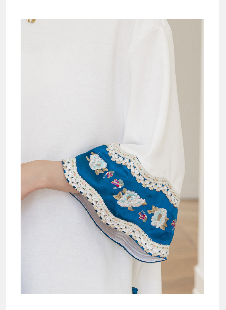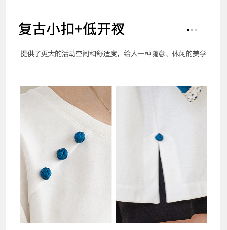 | Style details | Button, embroidery, splicing, asymmetrical |