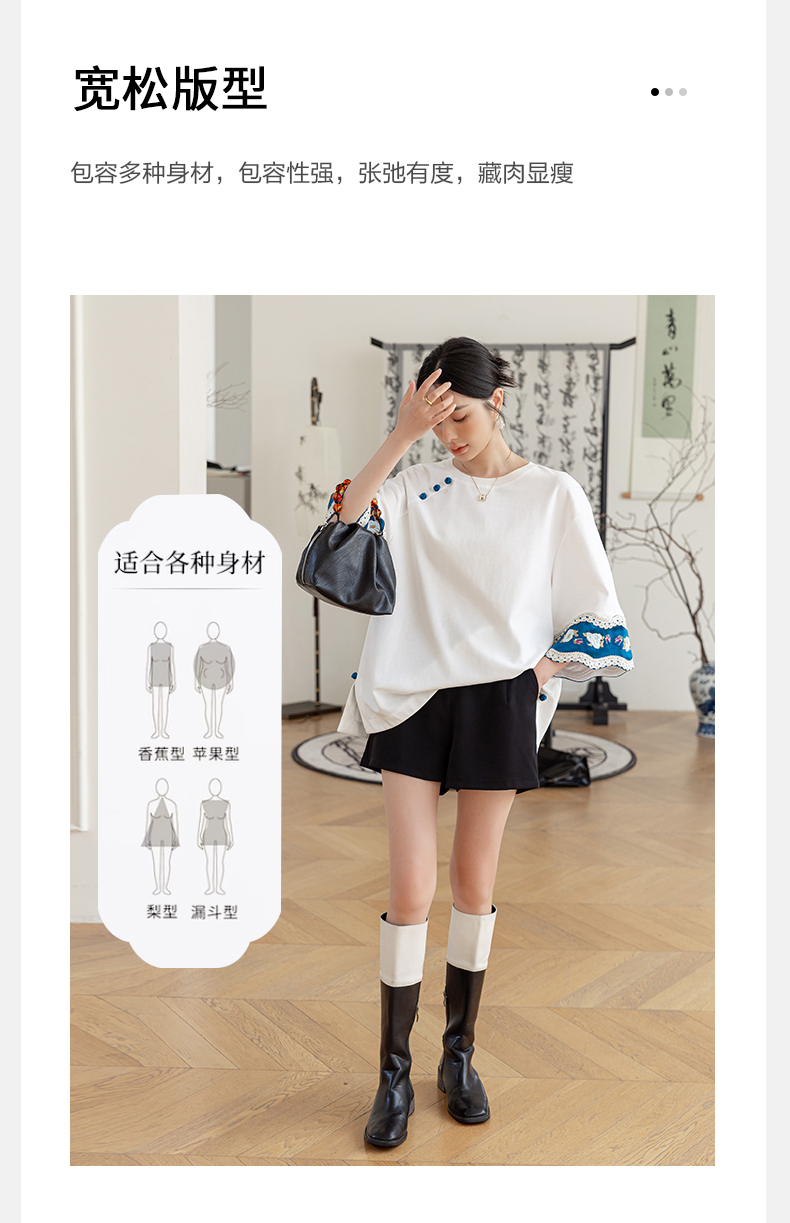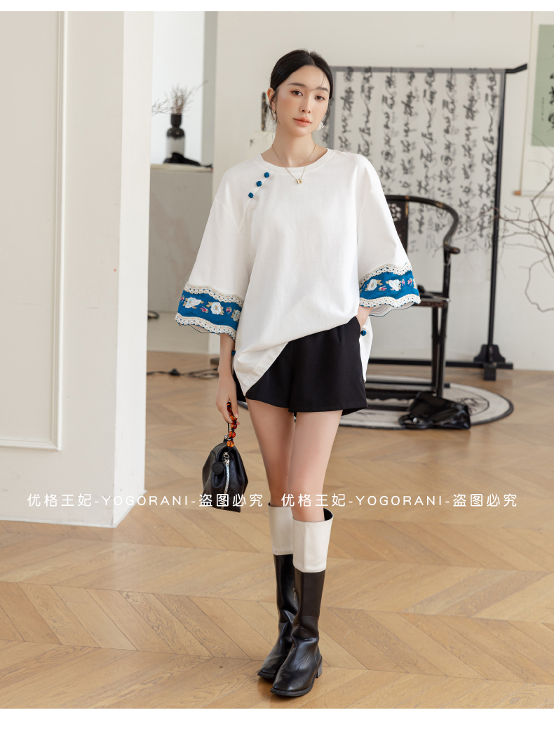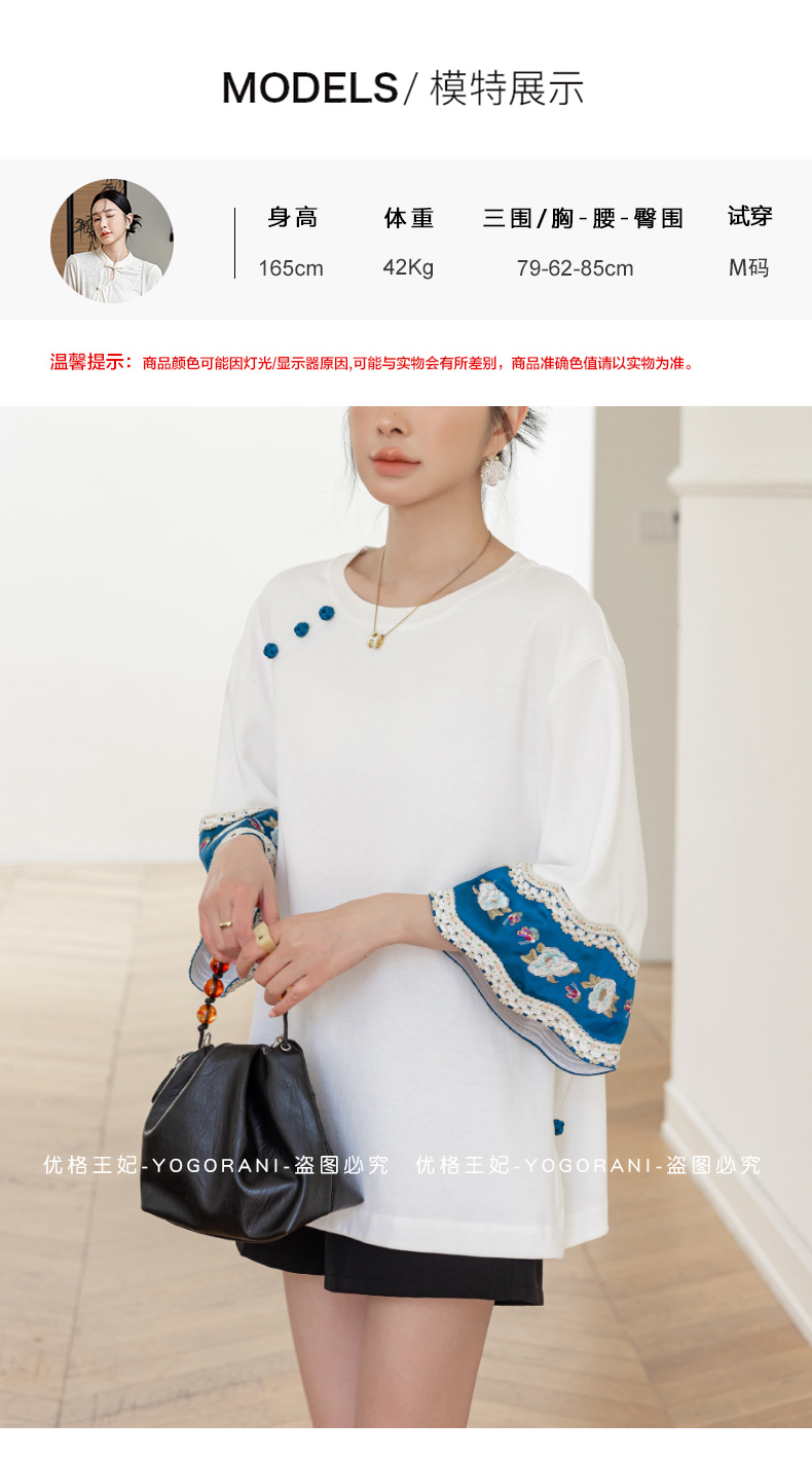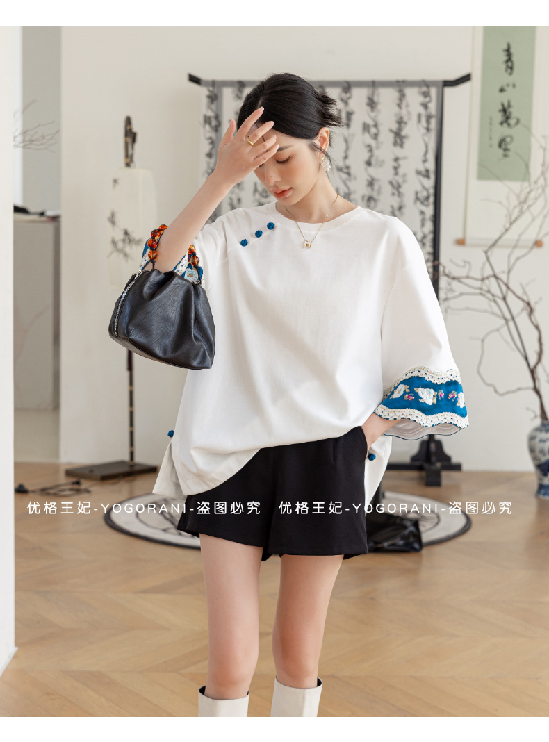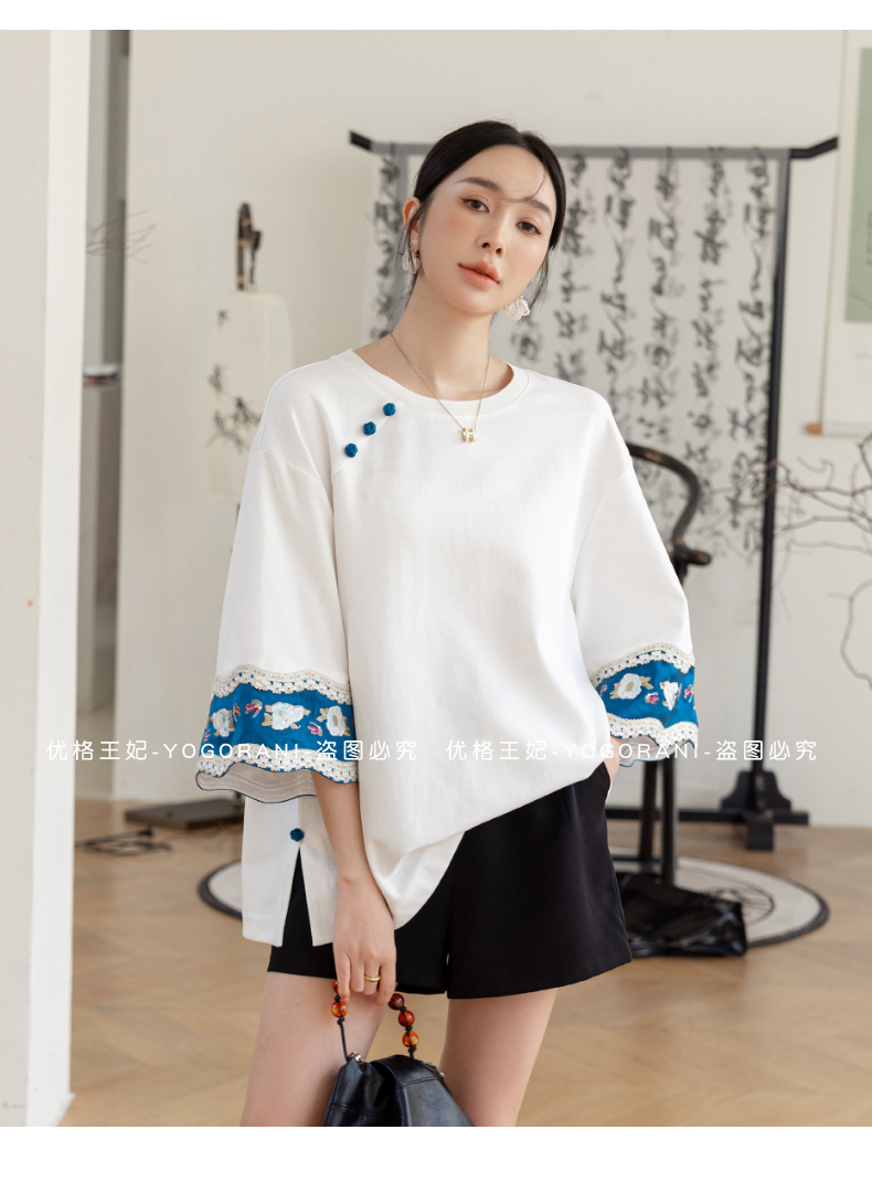 | Style details | Button, embroidery, splicing, asymmetrical |